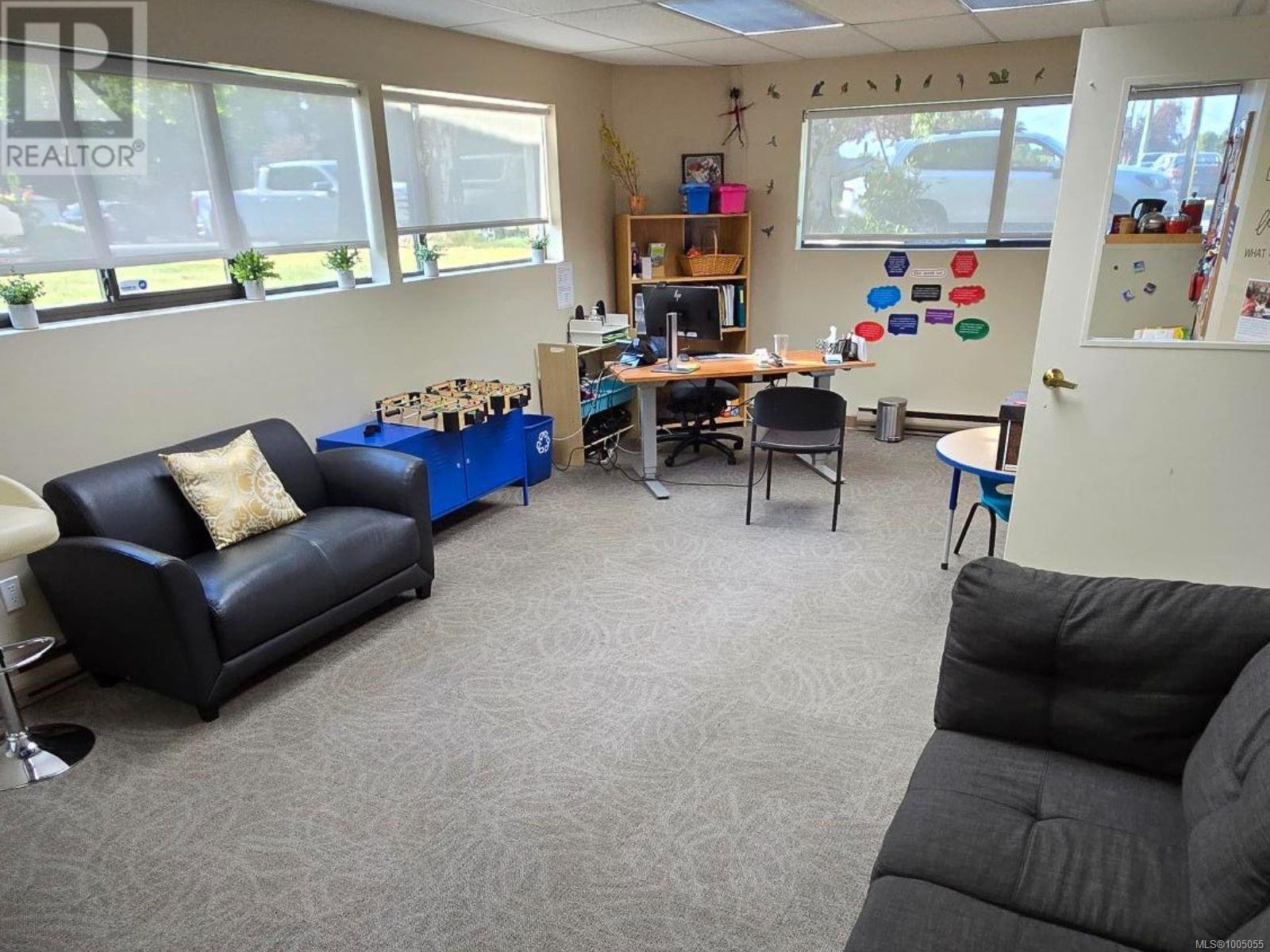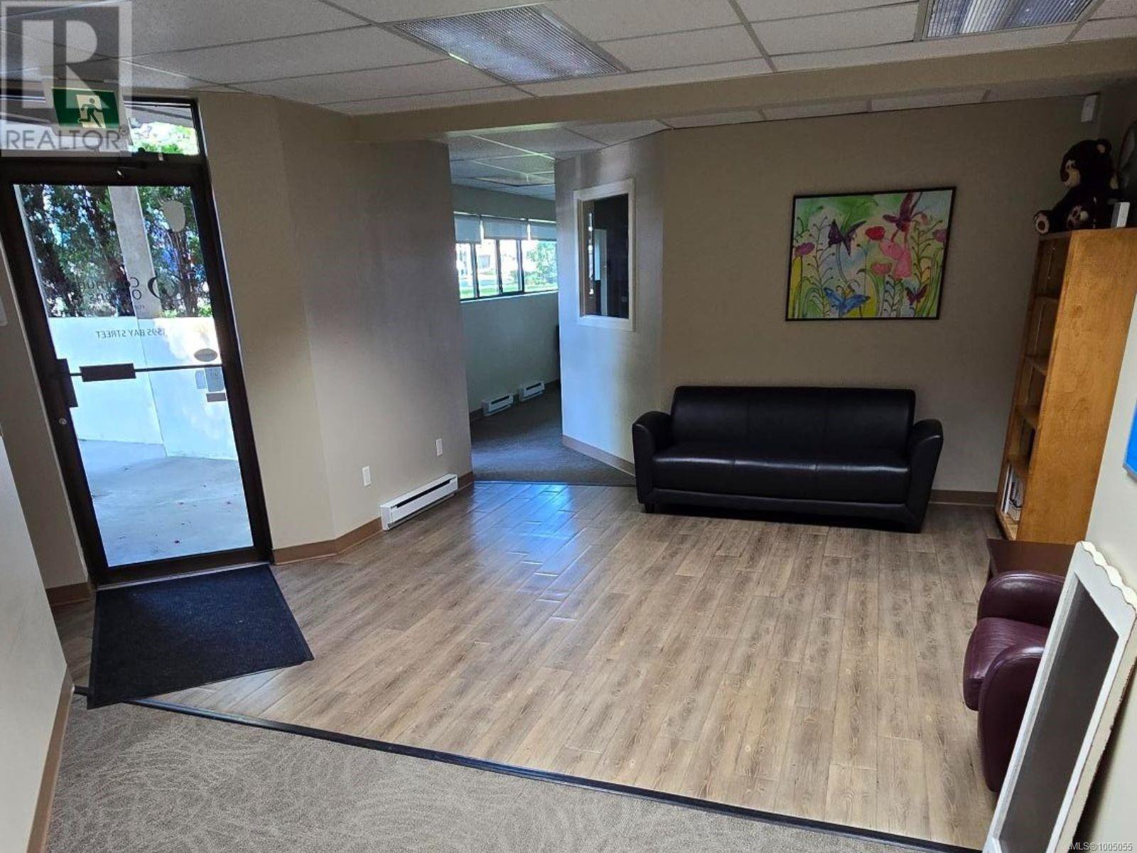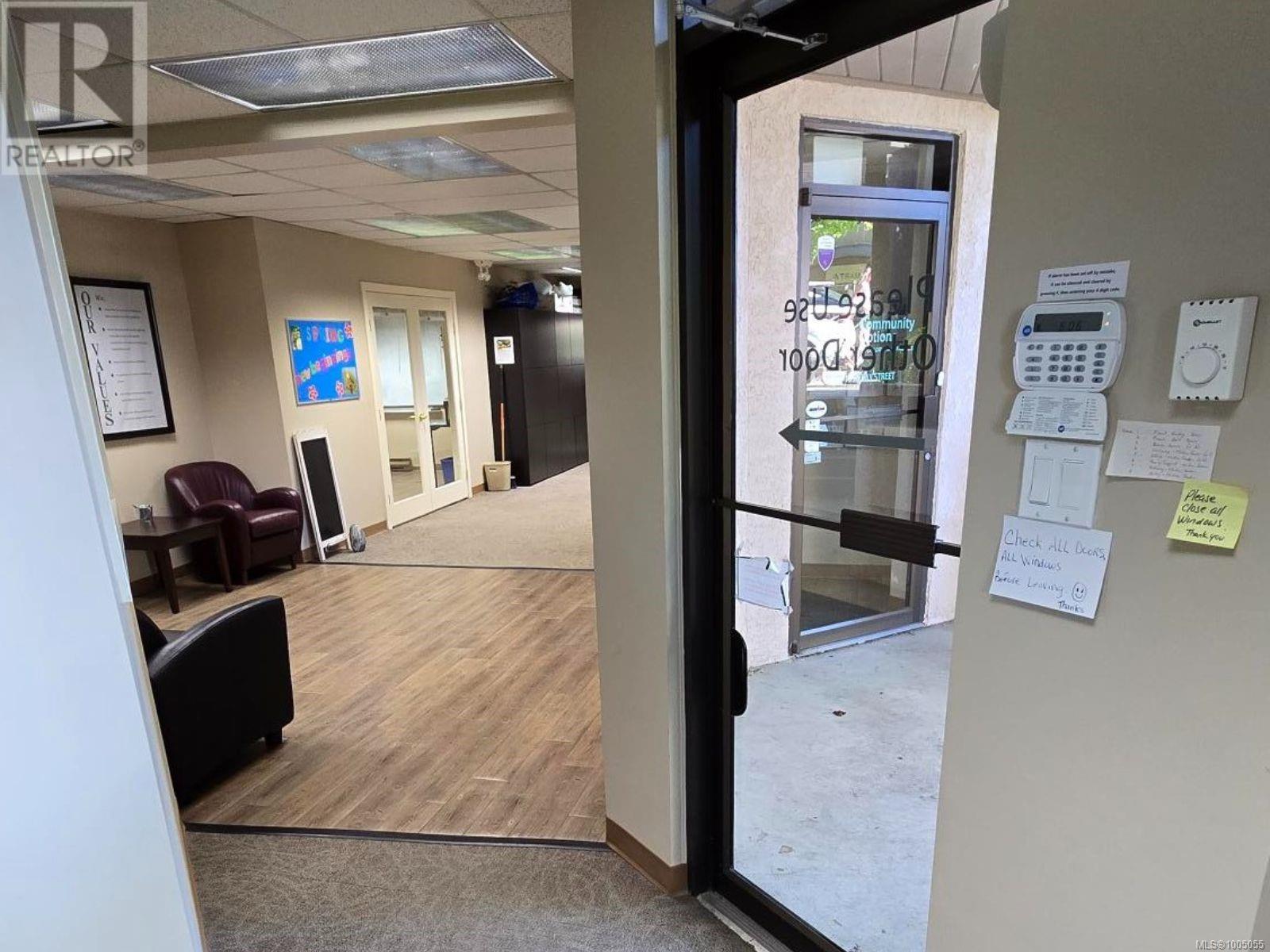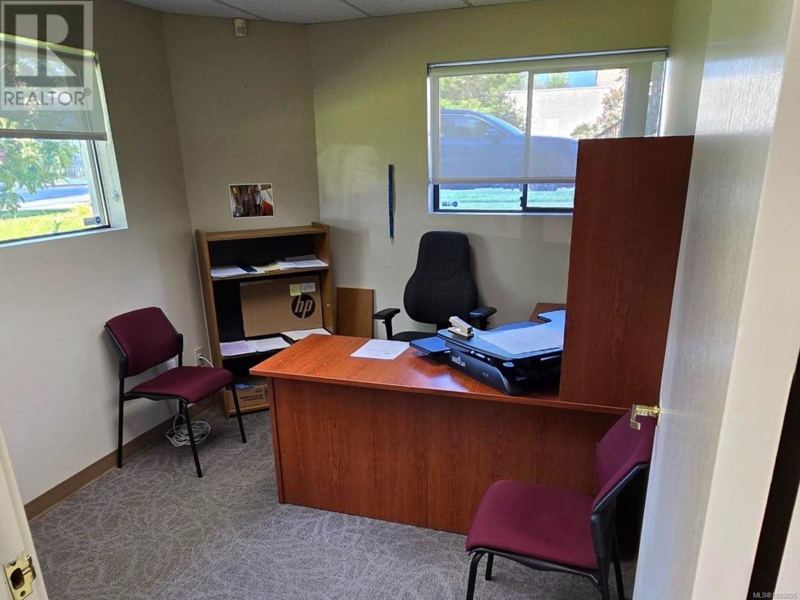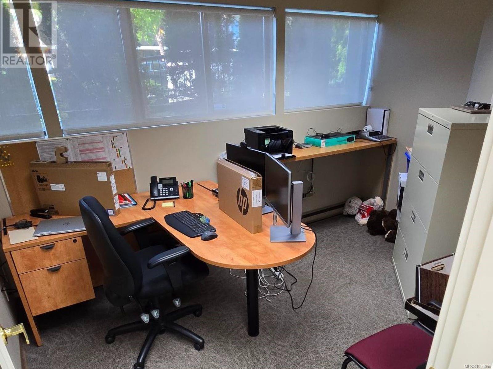 Prime ground-floor office space at Shakespeare Manor offers an exceptional opportunity for medical, professional, or administrative businesses. Positioned at the prominent intersection of Bay Street and Shakespeare Street—just west of Shelbourne and minutes from the Royal Jubilee Hospital—this high-visibility location provides outstanding accessibility and convenience. The well-maintained, mixed-use building is undergoing exterior upgrades, including new windows. Inside, the unit features a bright, functional layout with 8 private offices, a spacious great room (easily divided into 2 offices), a media room, a kitchen/meeting area, and 2 bathrooms. Three separate entrances, including a wheelchair-accessible ramp. With 6 on-site parking stalls and ample street parking available out front, this space combines practicality with a professional setting. Don’t miss this rare opportunity to secure a well-located, move-in-ready office in one of Victoria’s most desirable areas. (id:44393)