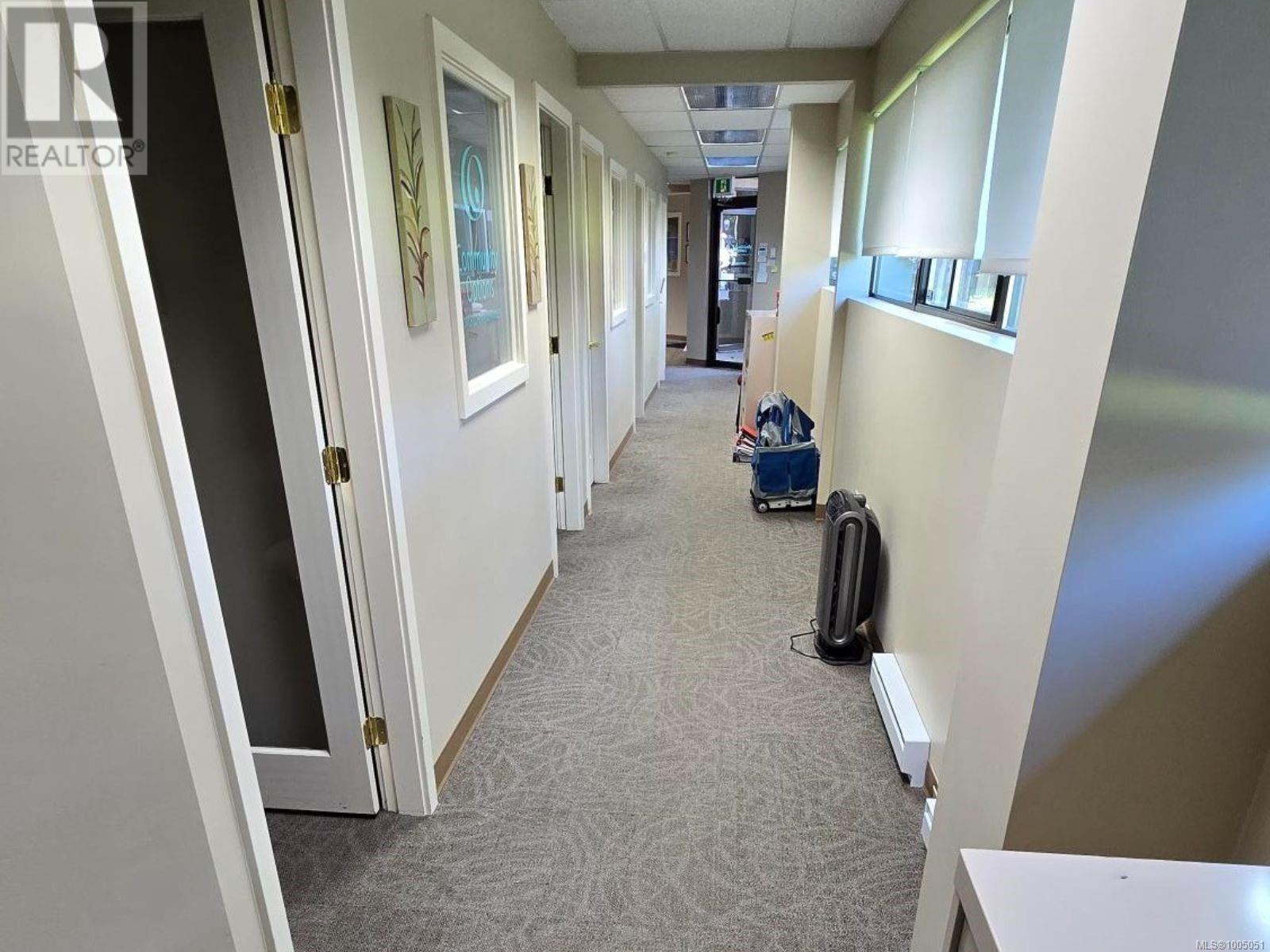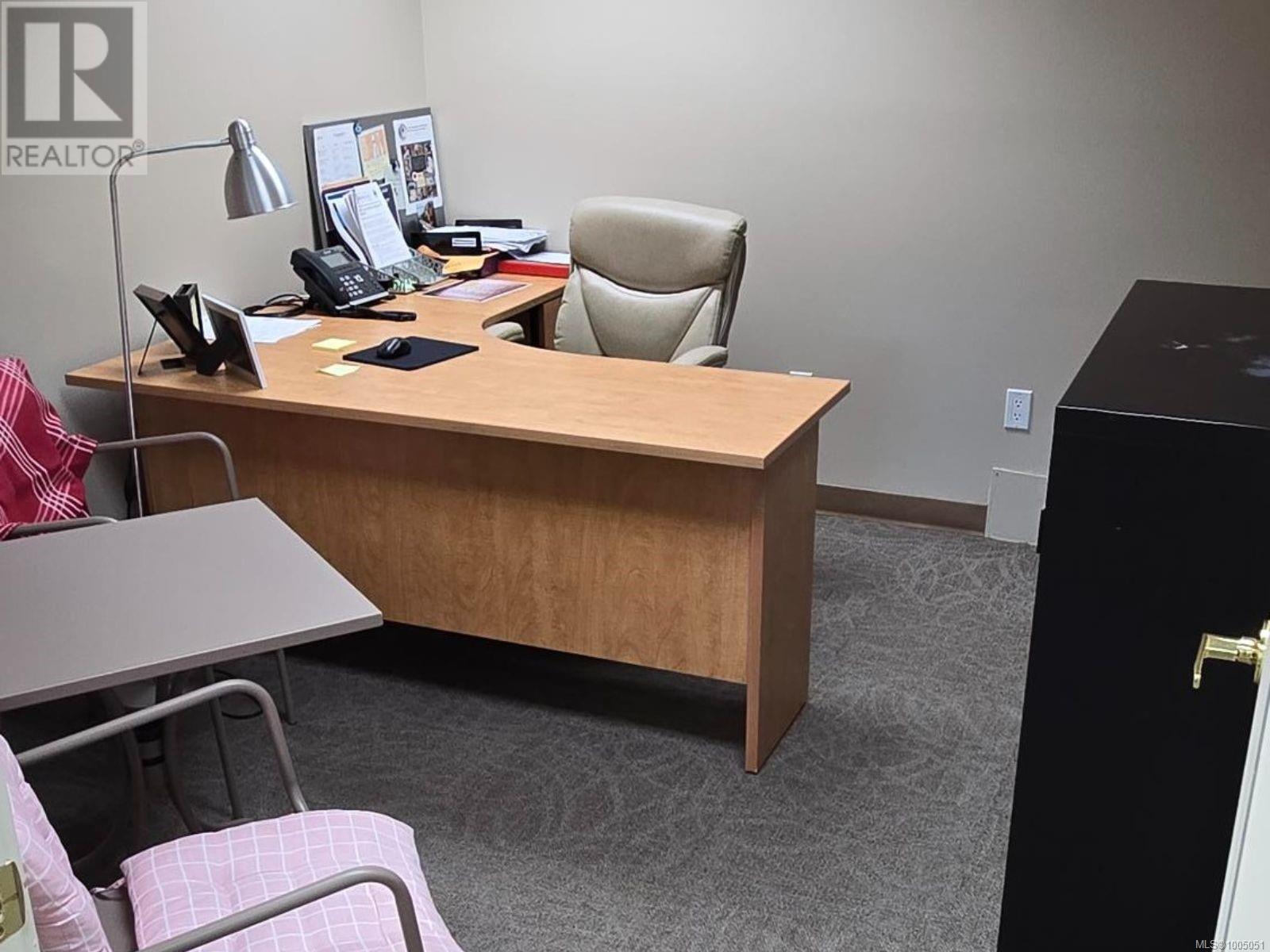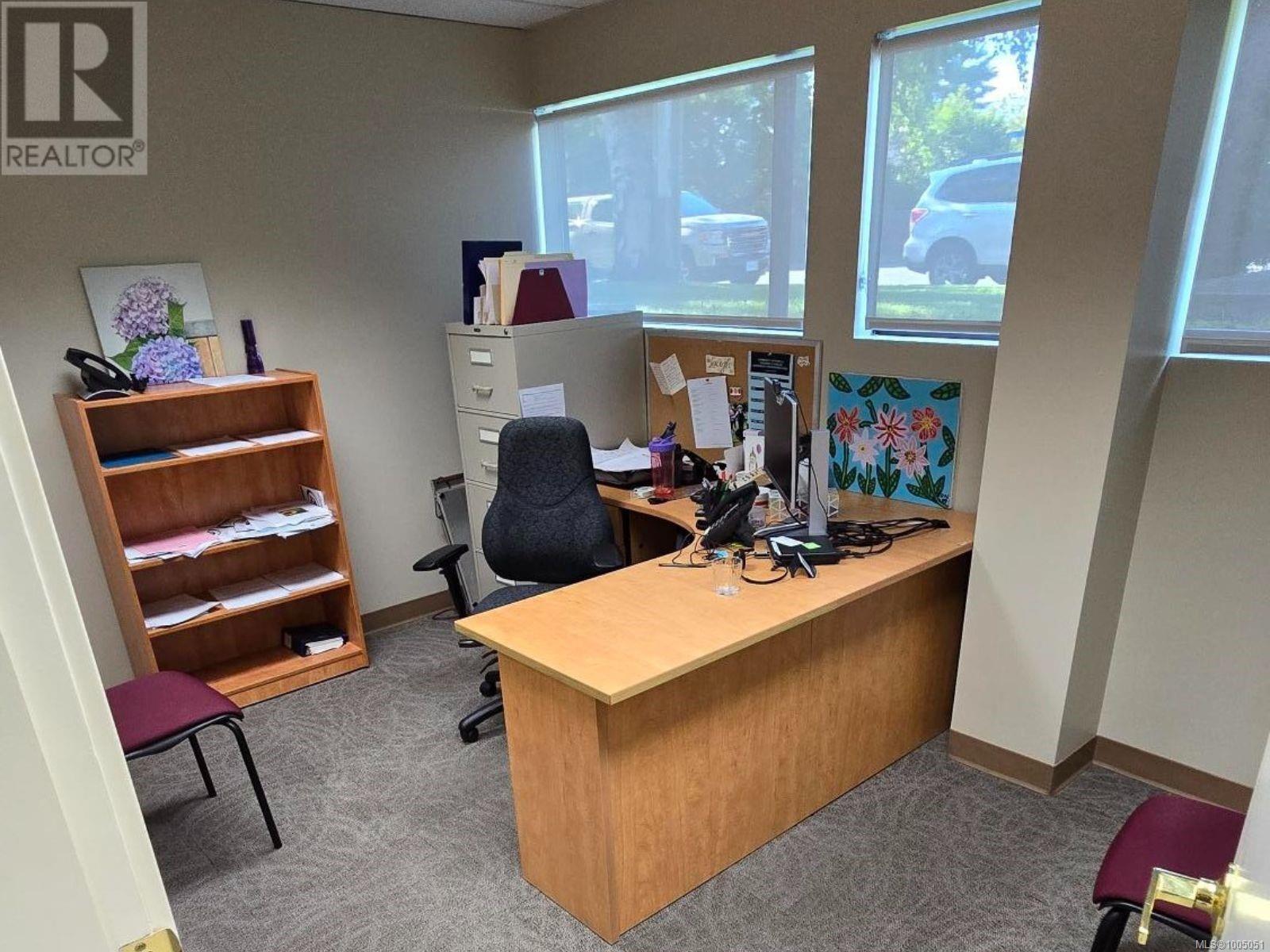 Prime ground-floor office space at Shakespeare Manor offers an exceptional opportunity for medical, professional, or administrative businesses. Positioned at the prominent intersection of Bay Street and Shakespeare Street—just west of Shelbourne and minutes from the Royal Jubilee Hospital—this high-visibility location provides outstanding accessibility and convenience. The well-maintained, mixed-use building is undergoing exterior upgrades, including new windows. Inside, the unit features a bright, functional layout with 8 private offices, a spacious great room (easily divided into 2 offices), a media room, a kitchen/meeting area, and 2 bathrooms. Three separate entrances, including a wheelchair-accessible ramp. With 6 on-site parking stalls and ample street parking available out front, this space combines practicality with a professional setting. Don’t miss this rare opportunity to secure a well-located, move-in-ready office in one of Victoria’s most desirable areas. (id:44393)