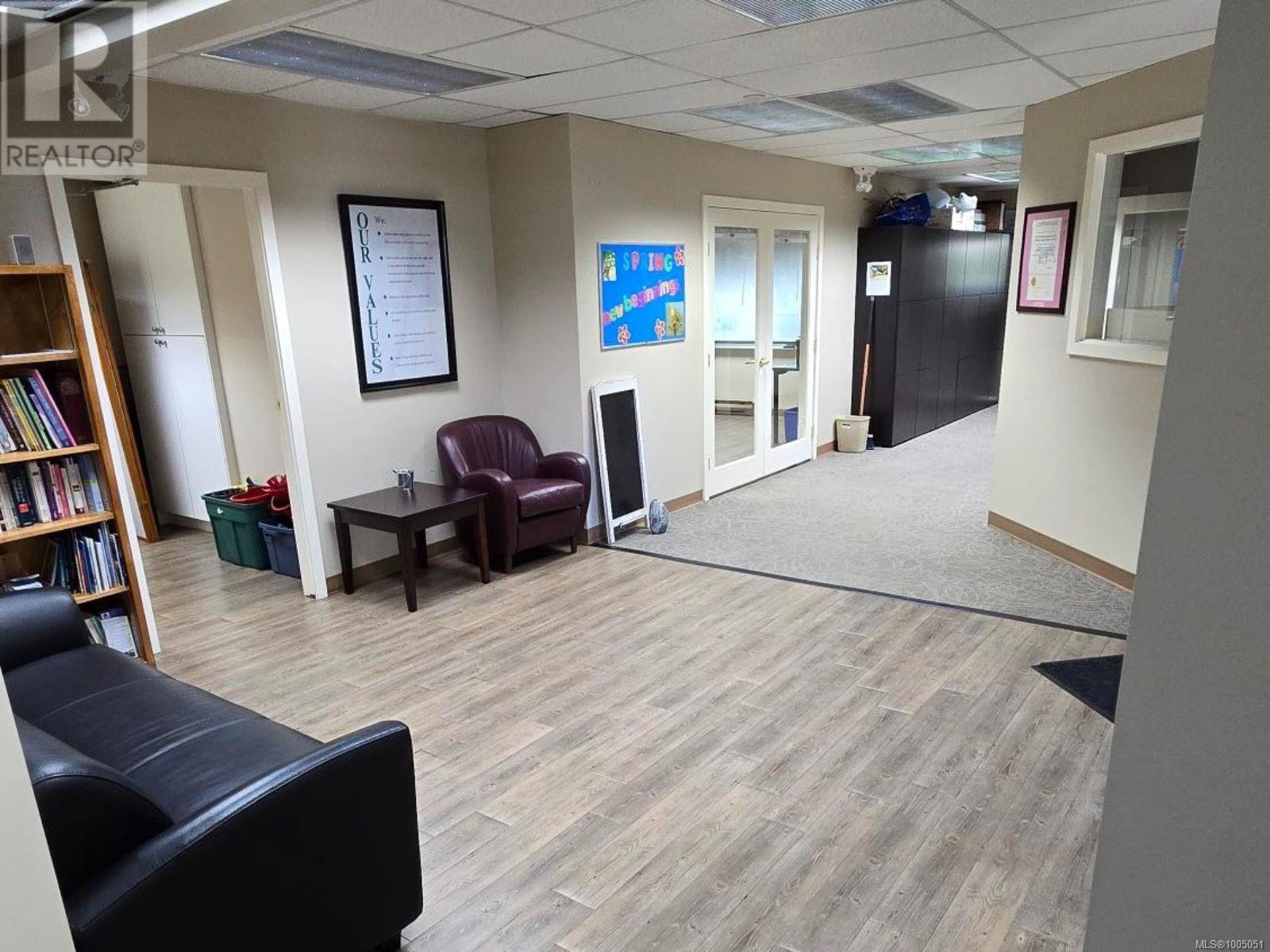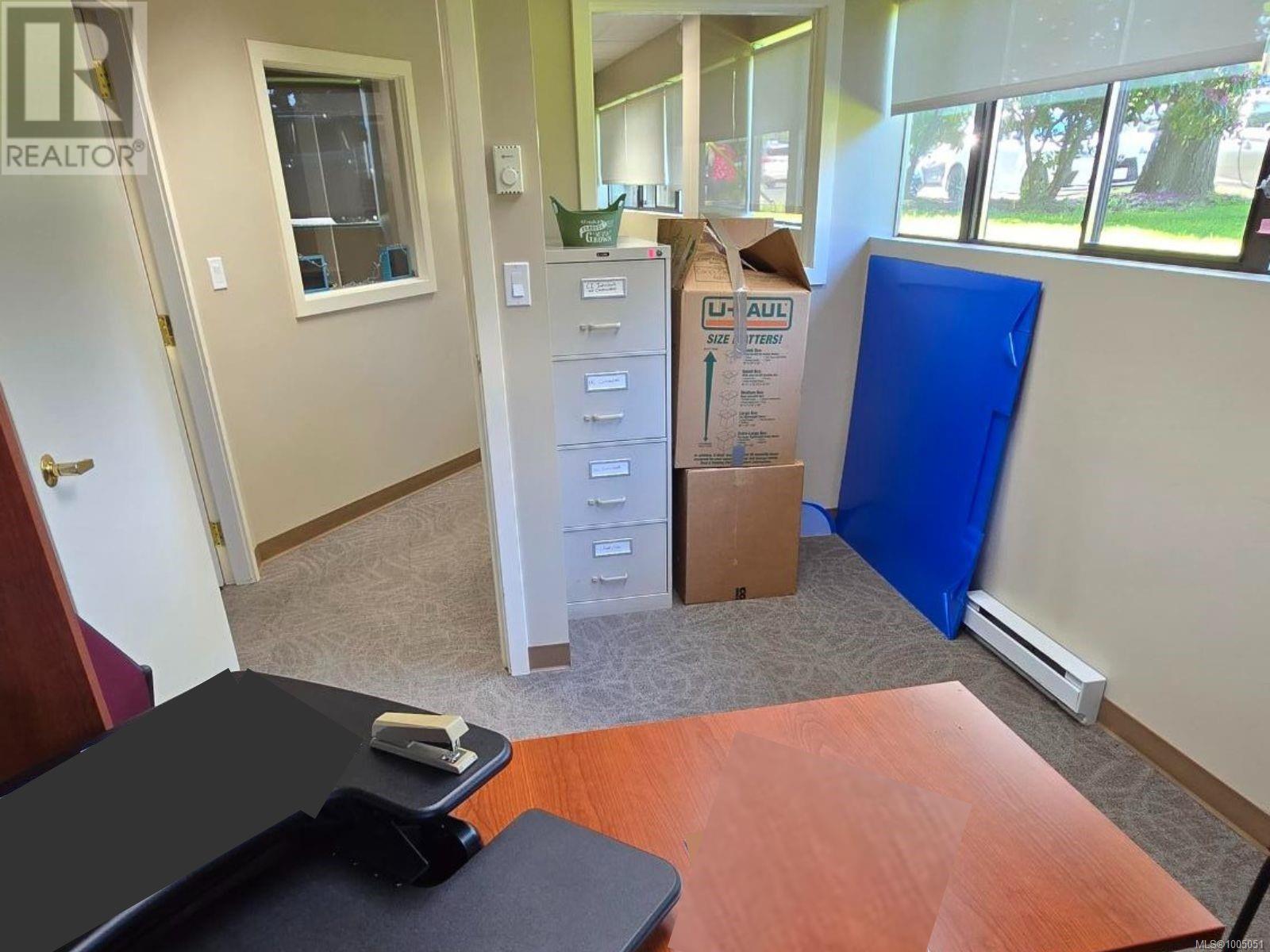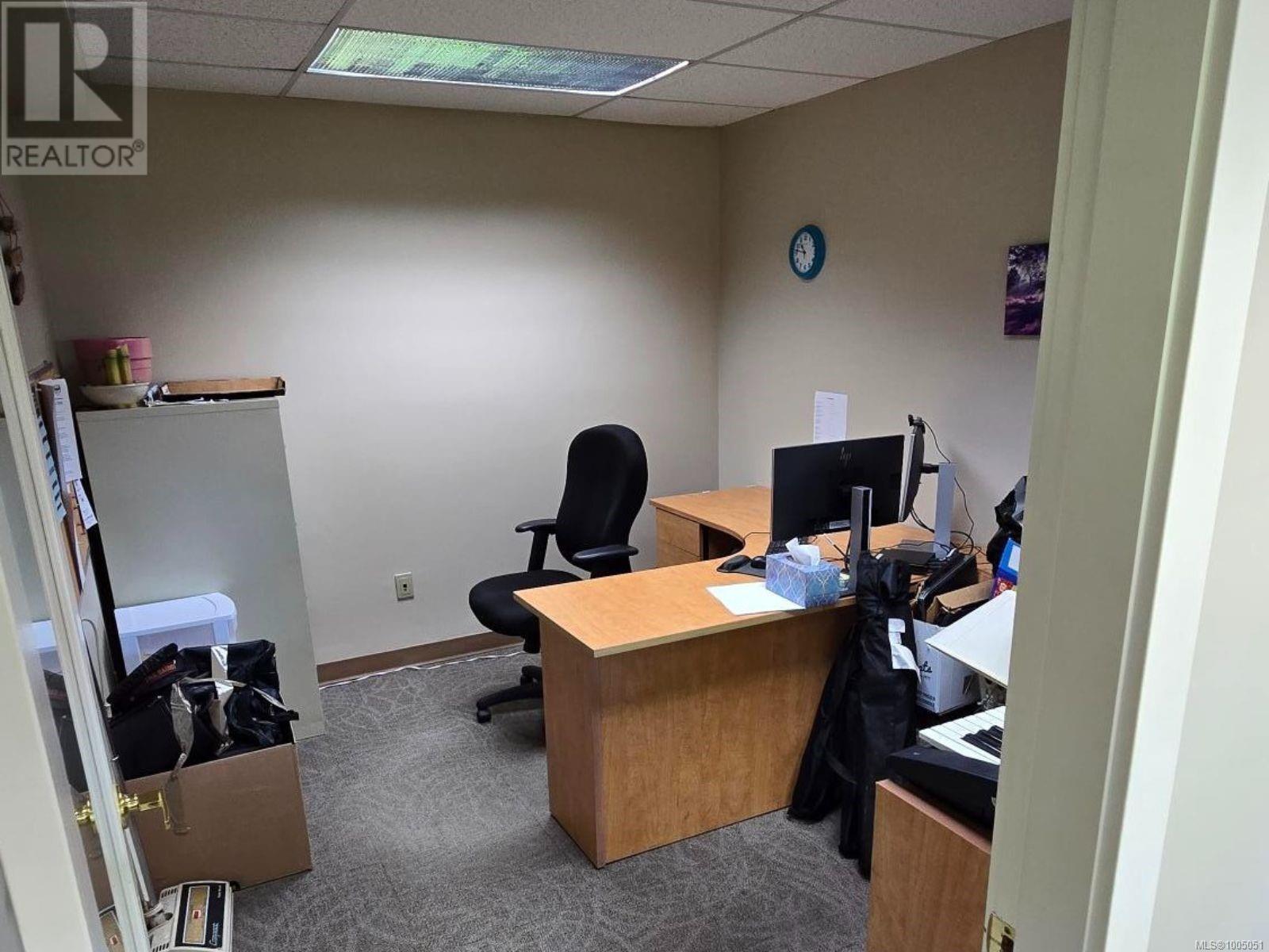 Prime ground-floor office space at Shakespeare Manor offers an exceptional opportunity for medical, professional, or administrative businesses. Positioned at the prominent intersection of Bay Street and Shakespeare Street—just west of Shelbourne and minutes from the Royal Jubilee Hospital—this high-visibility location provides outstanding accessibility and convenience. The well-maintained, mixed-use building is undergoing exterior upgrades, including new windows. Inside, the unit features a bright, functional layout with 8 private offices, a spacious great room (easily divided into 2 offices), a media room, a kitchen/meeting area, and 2 bathrooms. Three separate entrances, including a wheelchair-accessible ramp. With 6 on-site parking stalls and ample street parking available out front, this space combines practicality with a professional setting. Don’t miss this rare opportunity to secure a well-located, move-in-ready office in one of Victoria’s most desirable areas. (id:44393)