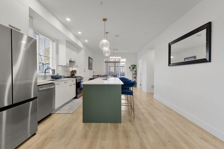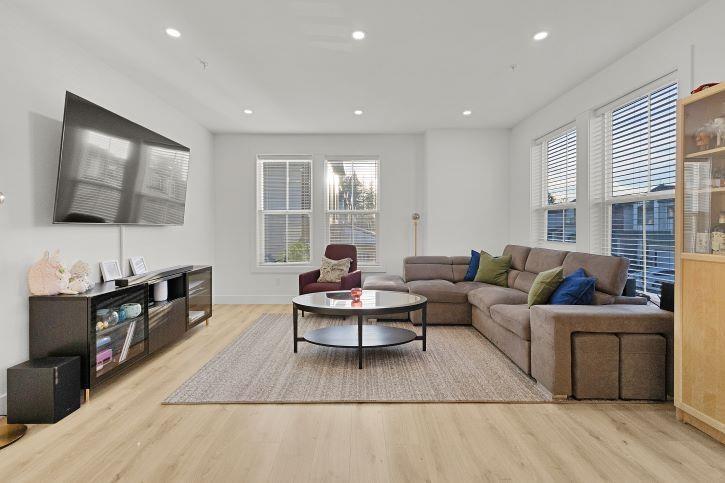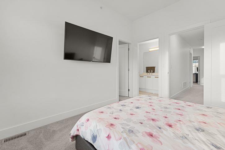 $298.06 MonthlyNO GST ON THIS TOWNHOUSE. Welcome to OAKLEY! 4-bedrooms & 3.5 bthrms true corner unit provides two entry points giving the exclusivity of private entrance and fence yard. This unit has many sought after features including A/C, BBQ gas line, EV charging port, Epoxy floor in the garage and ample storage. The open-concept main floor features 9 ft ceiling, premium Samsung appliances, a gas range and quartz countertops. A ground-level bdrm offers flexibility as a home office or guest suite. Upstairs, the luxurious primary retreat accommodates a king bed and boasts spa-like ensuite with dual sinks, a frameless glass shower. This home is perfect for families and an ideal location just mnts away from HWY 1, Langley Event Centre. (id:44393)
