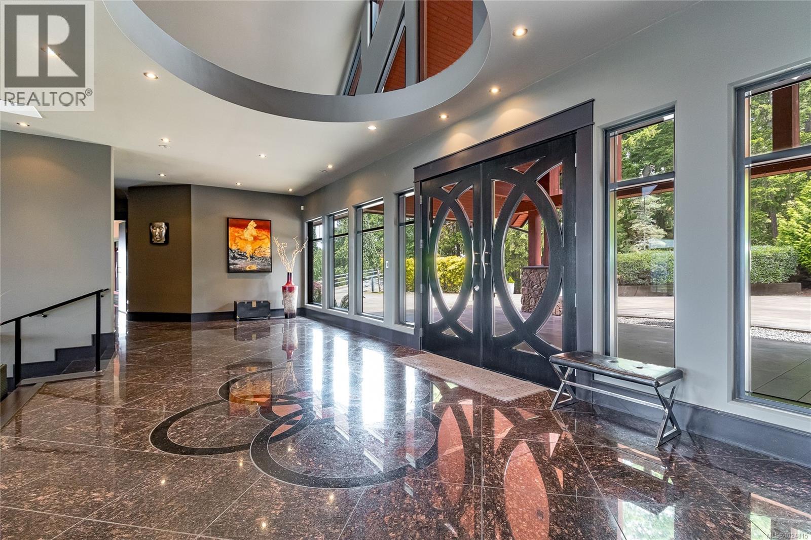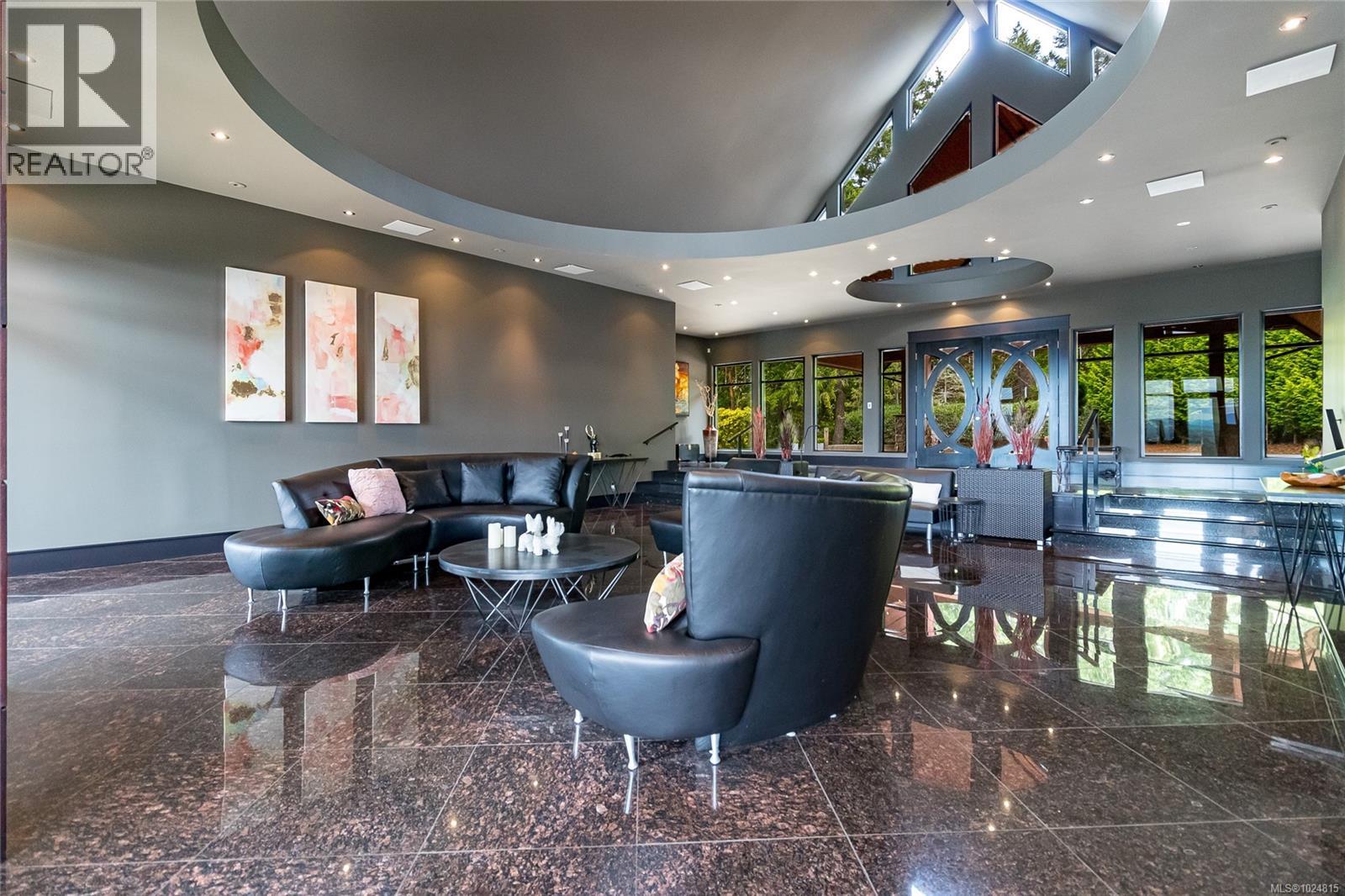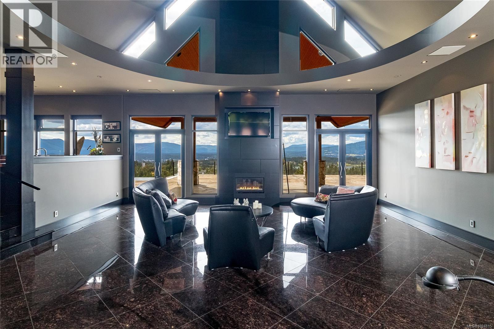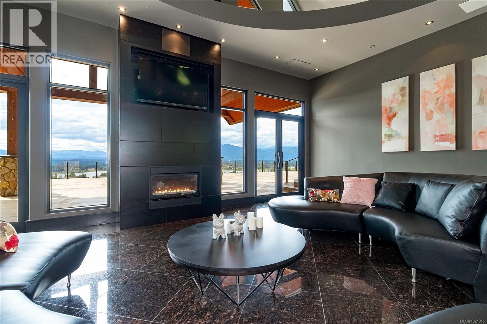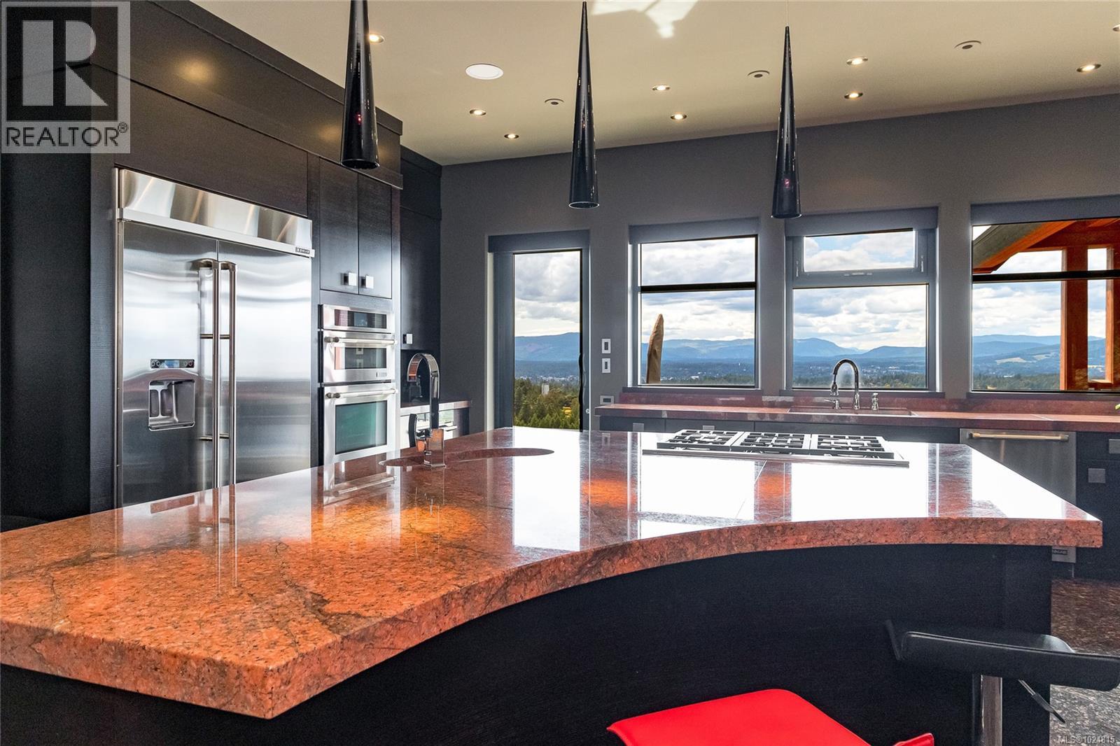 West coast contemporary masterpiece rests atop the hills of Maple Bay with breathtaking views of the Cowichan Valley! Drive over your own private bridge onto a stamped concrete courtyard and experience architecture at its finest! High ceilings (peaks at 29'), almost floor to ceiling low E tinted windows to take in the outstanding views, heated granite floors throughout the entire main level, a granite island kitchen to die for (24' x 20' + separate 10' x 12' pantry!), and a 1200+ sq ft primary bedroom wing with the most alluring ensuite & dressing room are a few outstanding features that this phenomenally spacious home offers. With 3 spacious bedrooms, 4 deluxe bathrooms and 2 stone natural gas fireplaces, there is room for every member of the family. Enjoy the infinity pool from the large concrete /slate decks, hot tub, shower room, large sitting area with the outdoor stone pizza oven. The South boundary adjacent is an Ecological Reserve. Far too many custom features to mention. (id:44393)