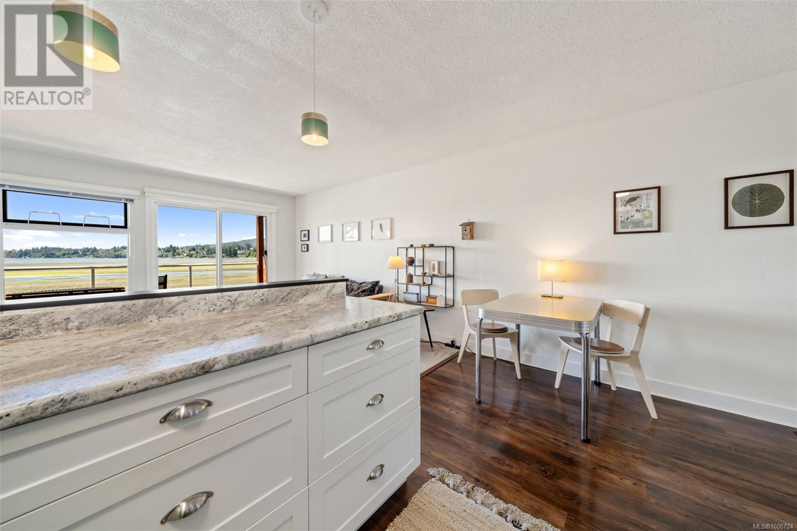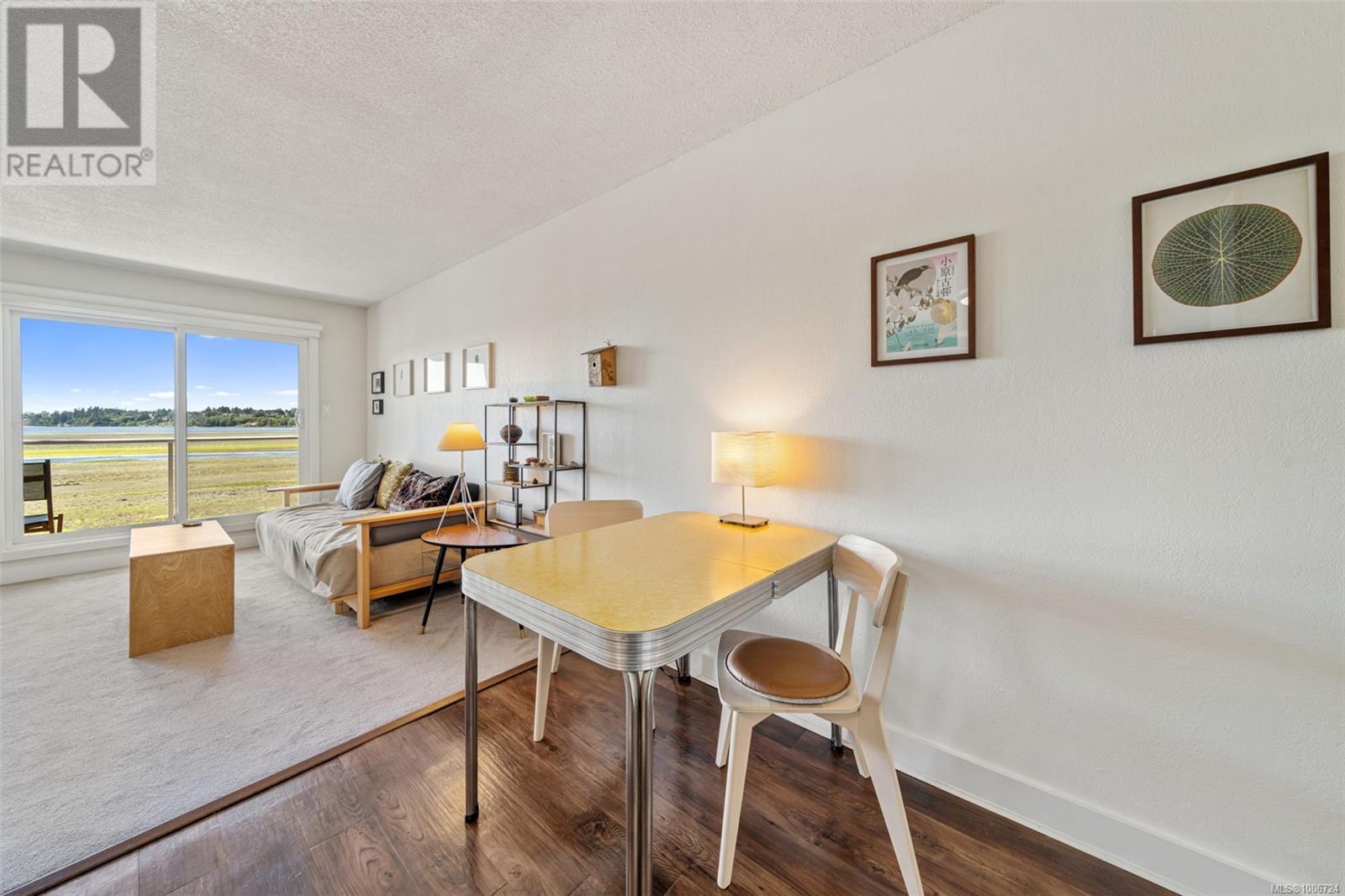$269.53 MonthlyIMPROVED PRICE on this beautifully updated 1-bedroom, 1-bathroom oceanfront condo in the sought-after Glenidle by the Sea, located on the peaceful shores of Sooke Harbour. This west-facing second-floor unit offers stunning harbour and mountain views, perfect for enjoying sunsets from your private balcony. Inside, you'll find a bright shaker-style kitchen with stainless steel appliances, fresh paint, vinyl plank flooring, and updated fixtures throughout. The spacious bedroom features ample closet space, and the renovated bathroom includes modern finishes. Additional upgrades include new carpet, lighting, interior doors, cabinetry, and a new hot water tank. Glenidle by the Sea provides walk-on beach access, landscaped grounds, shared laundry, and a games room. With low strata fees, pet and rental flexibility, and a strong contingency fund, this is a great option for homeowners or investors. Enjoy kayaking, fishing, and beachcombing just steps from your door—true West Coast living! (id:44393)