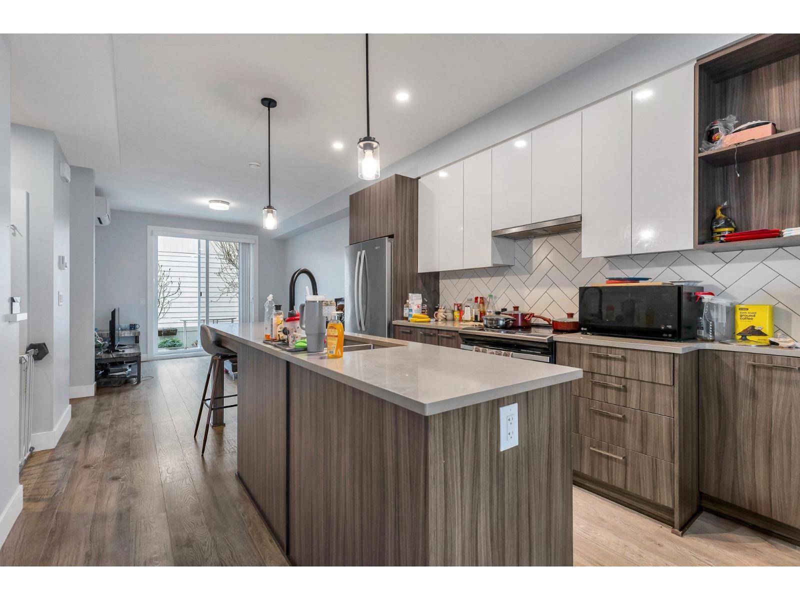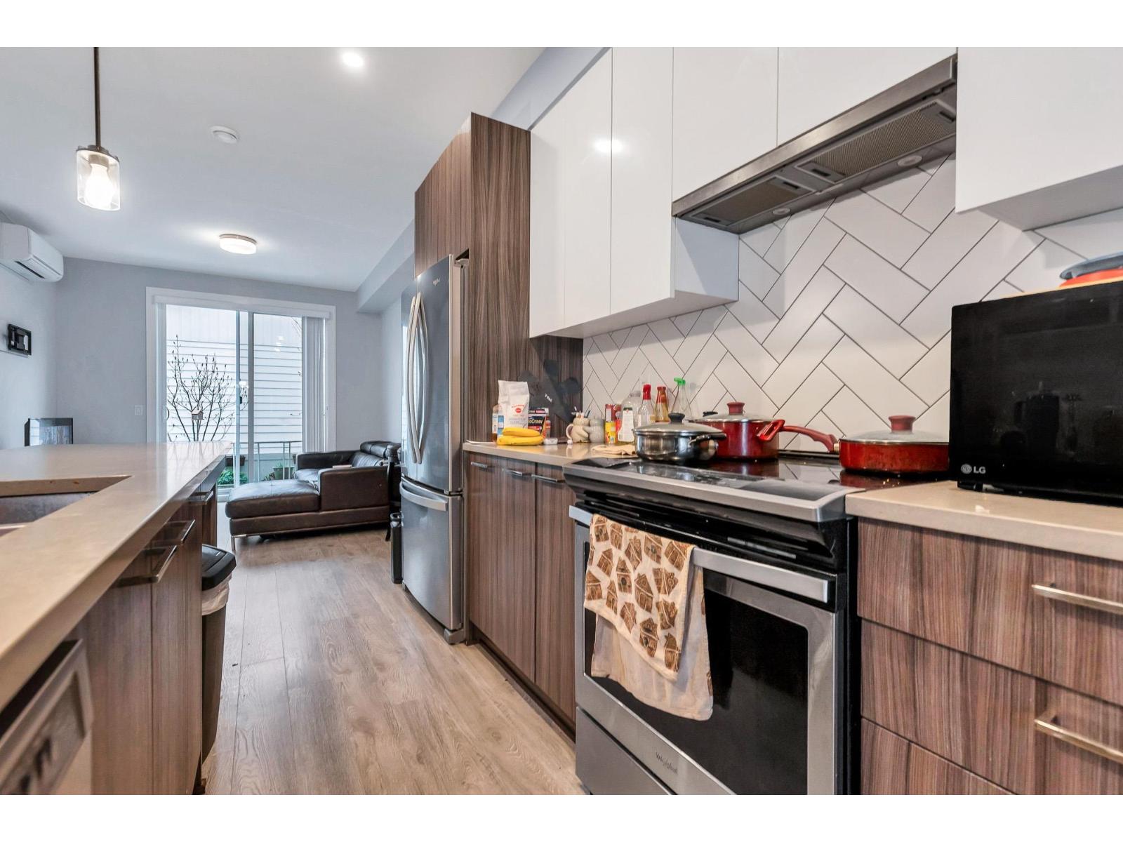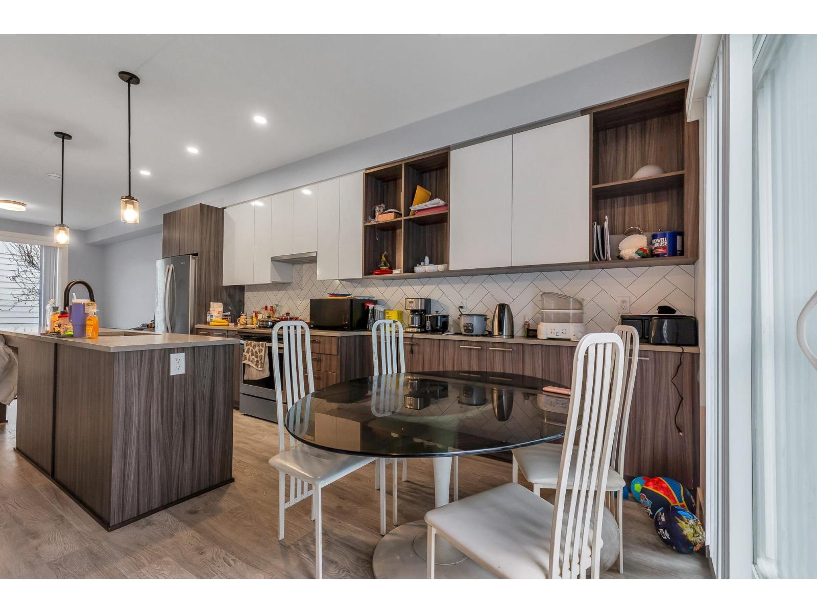 $300 MonthlyWelcome Mill District and this beautiful townhouse near Mill Lake! This 2 bedroom, 3 bathroom townhouse offers luxury living with an open-concept layout with 9" ceilings and an open concept throughout the main living area. A beautiful modern kitchen with quartz counter-tops, an island, complete with premium stainless steel appliances, a bright dining area with built in cabinets, a nook for a computer/work station, a bright living room overlooking the private patio and backyard. Upstairs, both bedrooms are master bedrooms with large closets and full ensuite bathrooms. Walking distance to Mill Lake Park, Seven Oaks Mall, and many other shops and restaurants. Pets and Rentals are allowed here! There is covered parking for two vehicles, garage & a carport. (id:44393)
