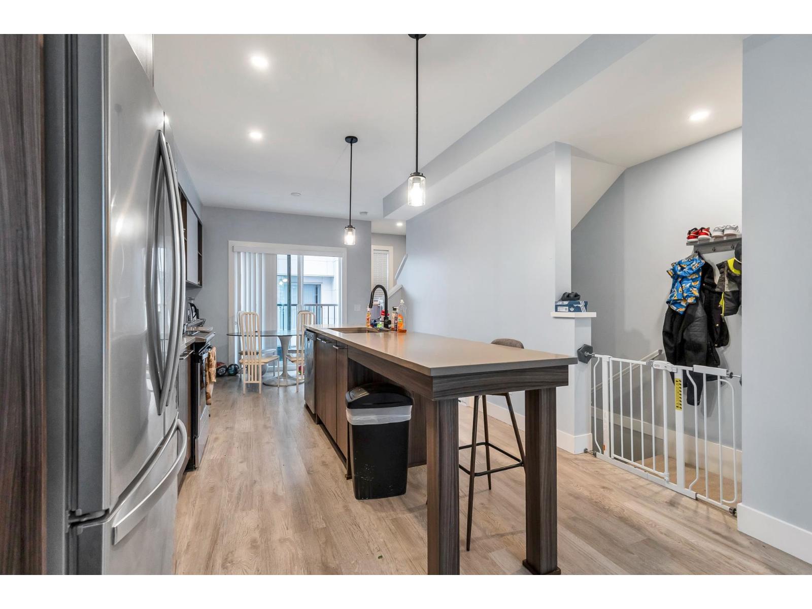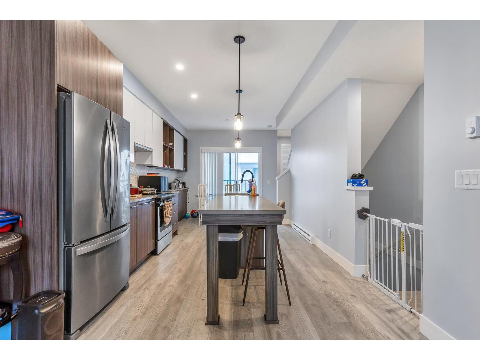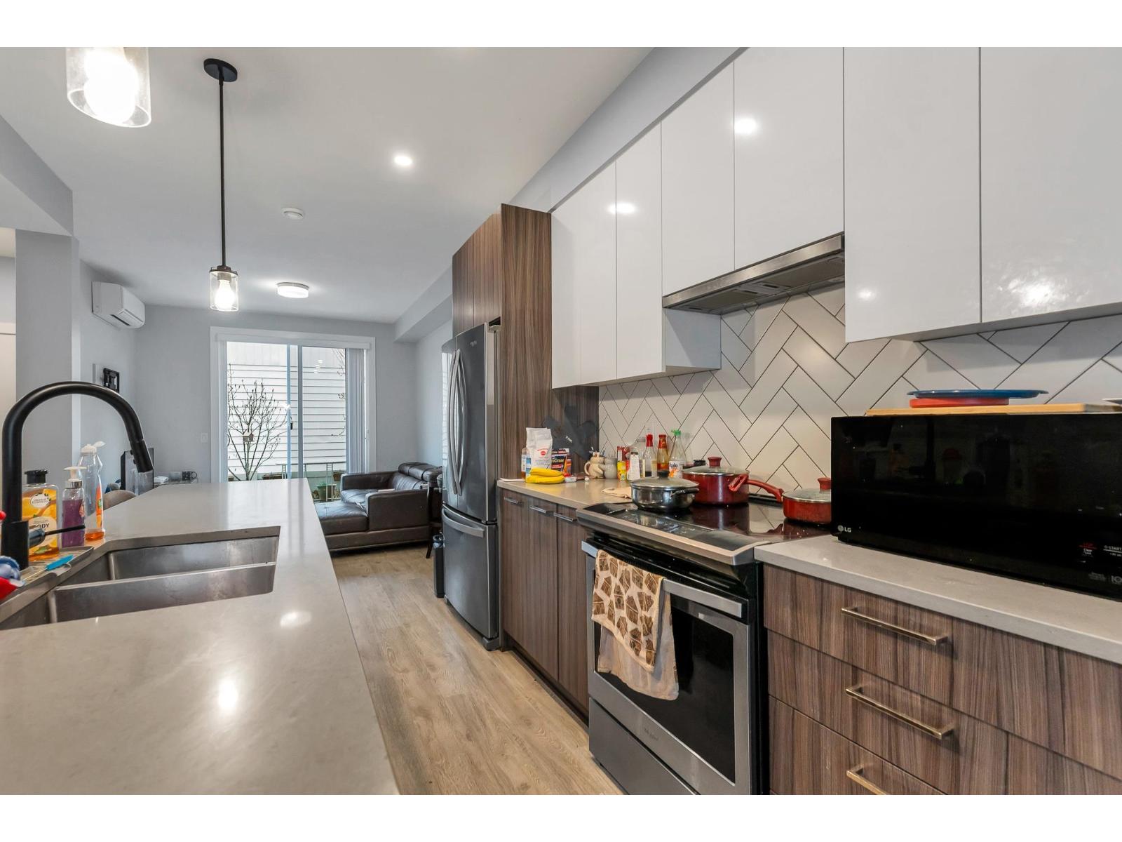 $300 MonthlyWelcome Mill District and this beautiful townhouse near Mill Lake! This 2 bedroom, 3 bathroom townhouse offers luxury living with an open-concept layout with 9" ceilings and an open concept throughout the main living area. A beautiful modern kitchen with quartz counter-tops, an island, complete with premium stainless steel appliances, a bright dining area with built in cabinets, a nook for a computer/work station, a bright living room overlooking the private patio and backyard. Upstairs, both bedrooms are master bedrooms with large closets and full ensuite bathrooms. Walking distance to Mill Lake Park, Seven Oaks Mall, and many other shops and restaurants. Pets and Rentals are allowed here! There is covered parking for two vehicles, garage & a carport. (id:44393)