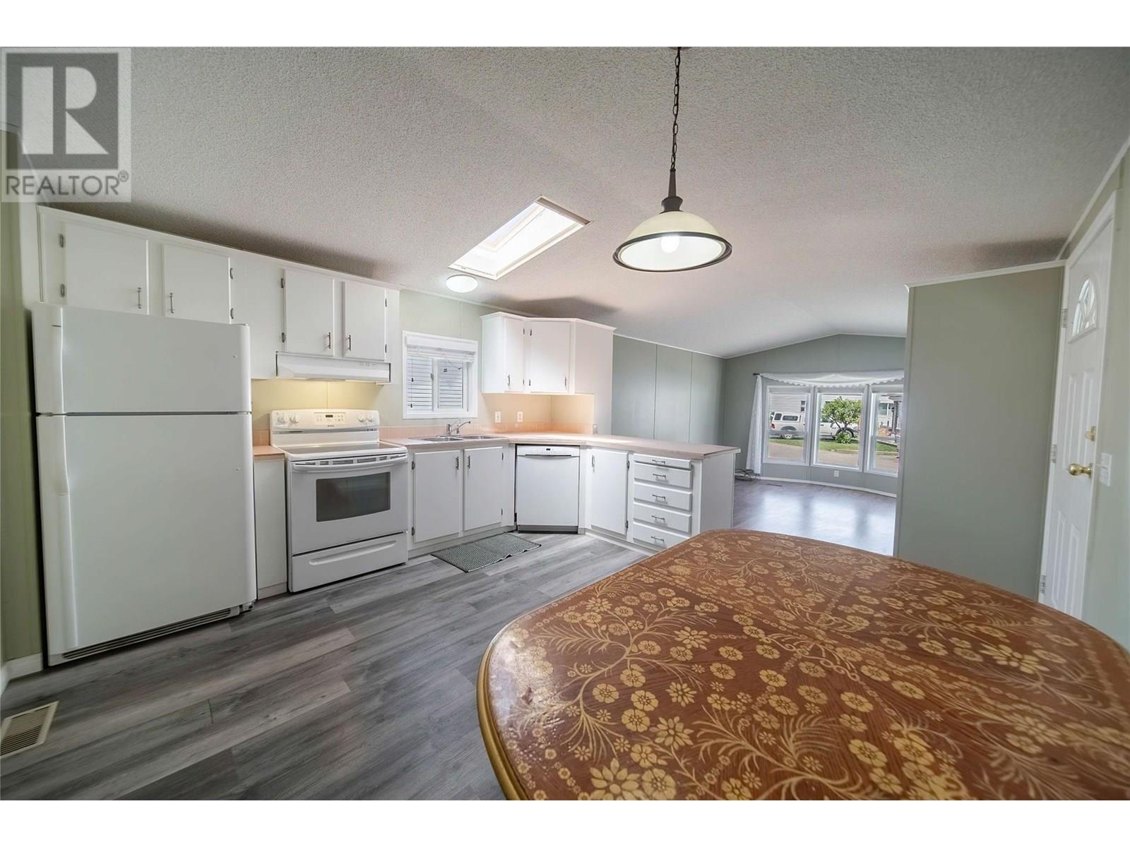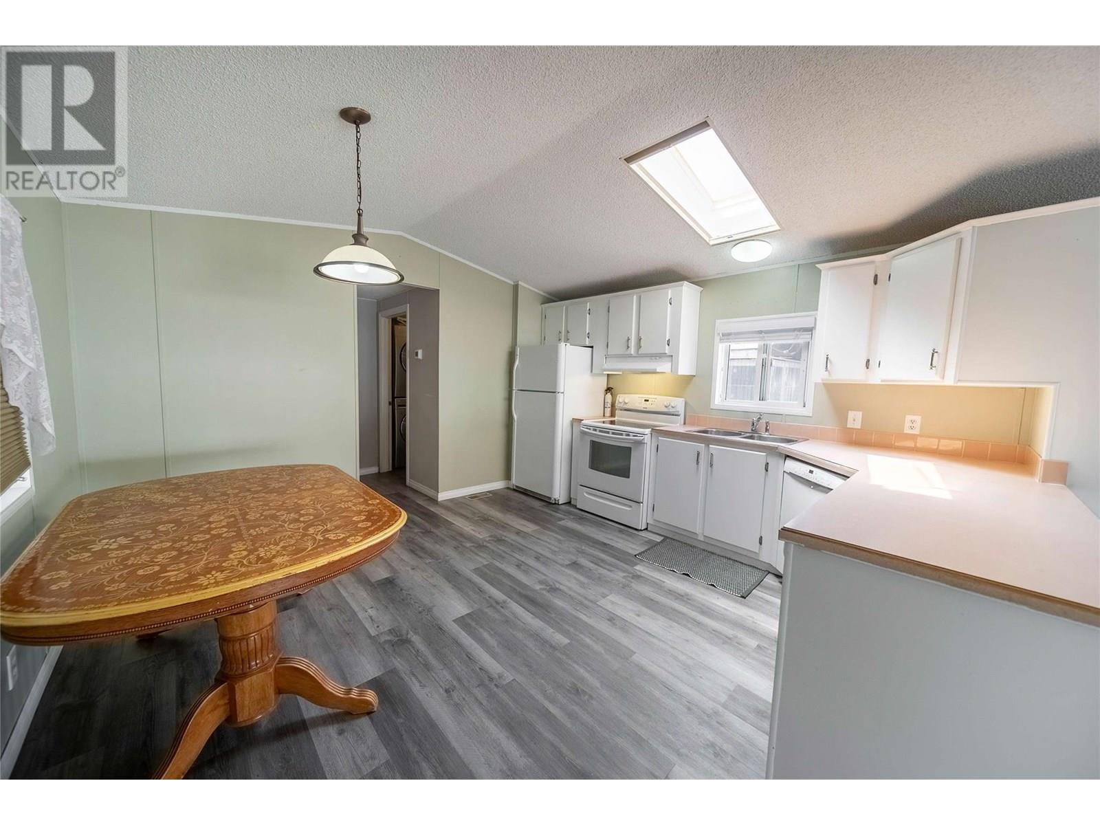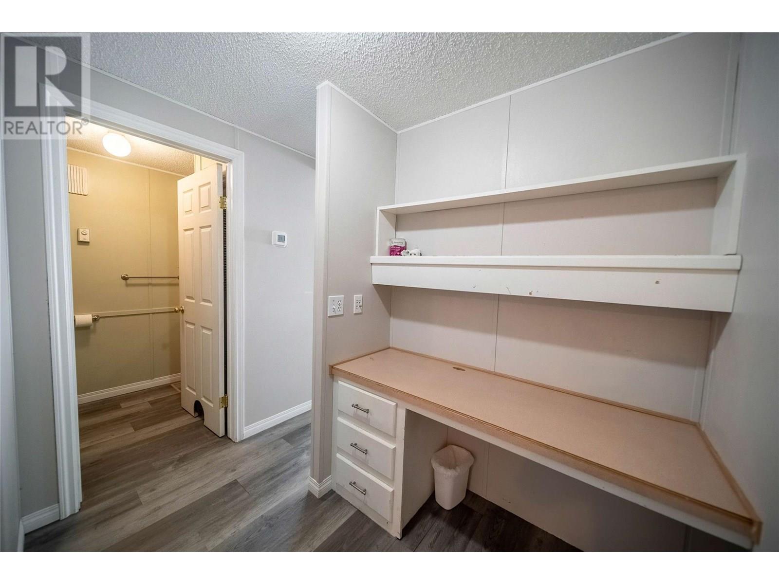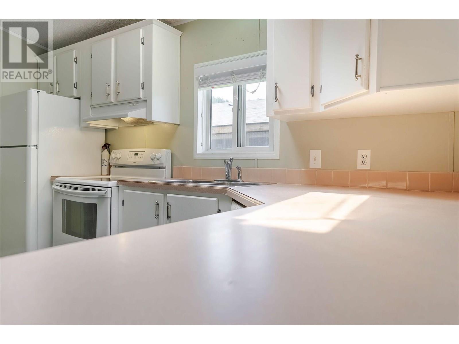 $440 MonthlyAffordable 2-Bedroom Home in Mountain View – Sparwood. This well-maintained 2-bedroom, 2-bathroom home in Mountain View Manufactured Home Park is a great opportunity to enter the Sparwood market. With approximately 1,000 sq ft of living space, it features a spacious entryway addition and a thoughtful layout that separates living and sleeping areas. One end of the home offers two bedrooms and a full bathroom, while the opposite end boasts a bright, open-concept kitchen, dining, and living area filled with natural light. Just off the kitchen is a half bathroom with laundry, plus a separate built-in desk and workspace—perfect for a home office or hobby area. Recent updates include a new furnace (2020), A/C added in 2021, new flooring, and a renovated main bathroom, adding both comfort and modern style. Outside, enjoy a fully fenced yard, a large storage shed, and room for gardening or relaxing. Ideal as a starter home, downsize, or investment opportunity in a family friendly neighbourhood. Don’t miss your chance to own a great home in beautiful Sparwood! (id:44393)