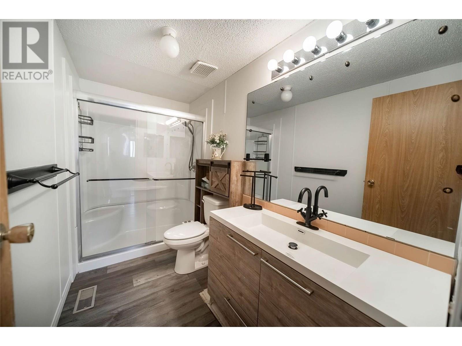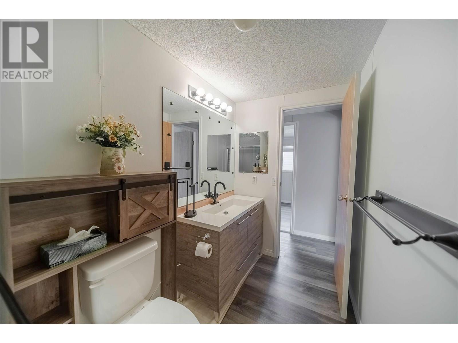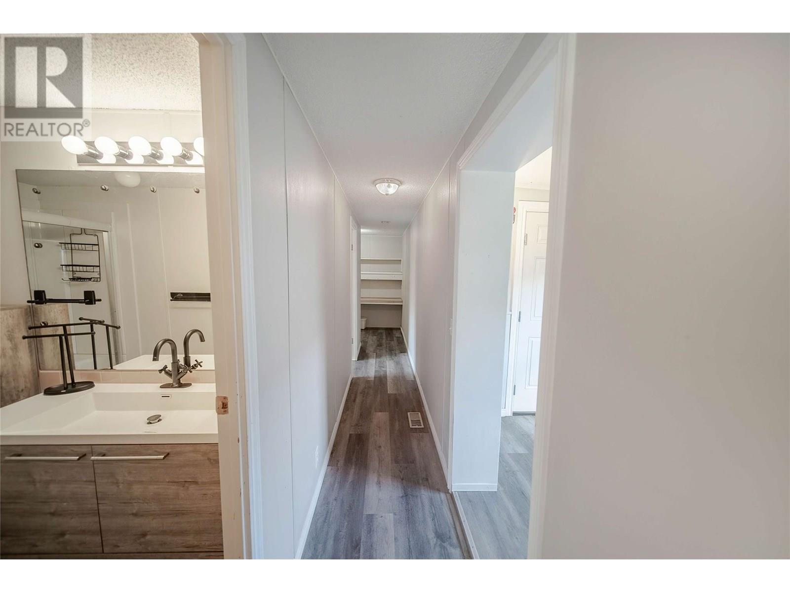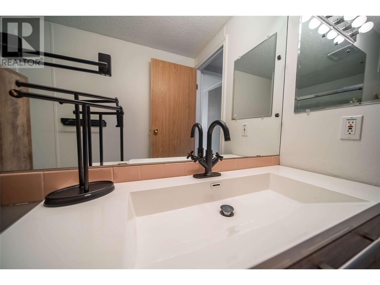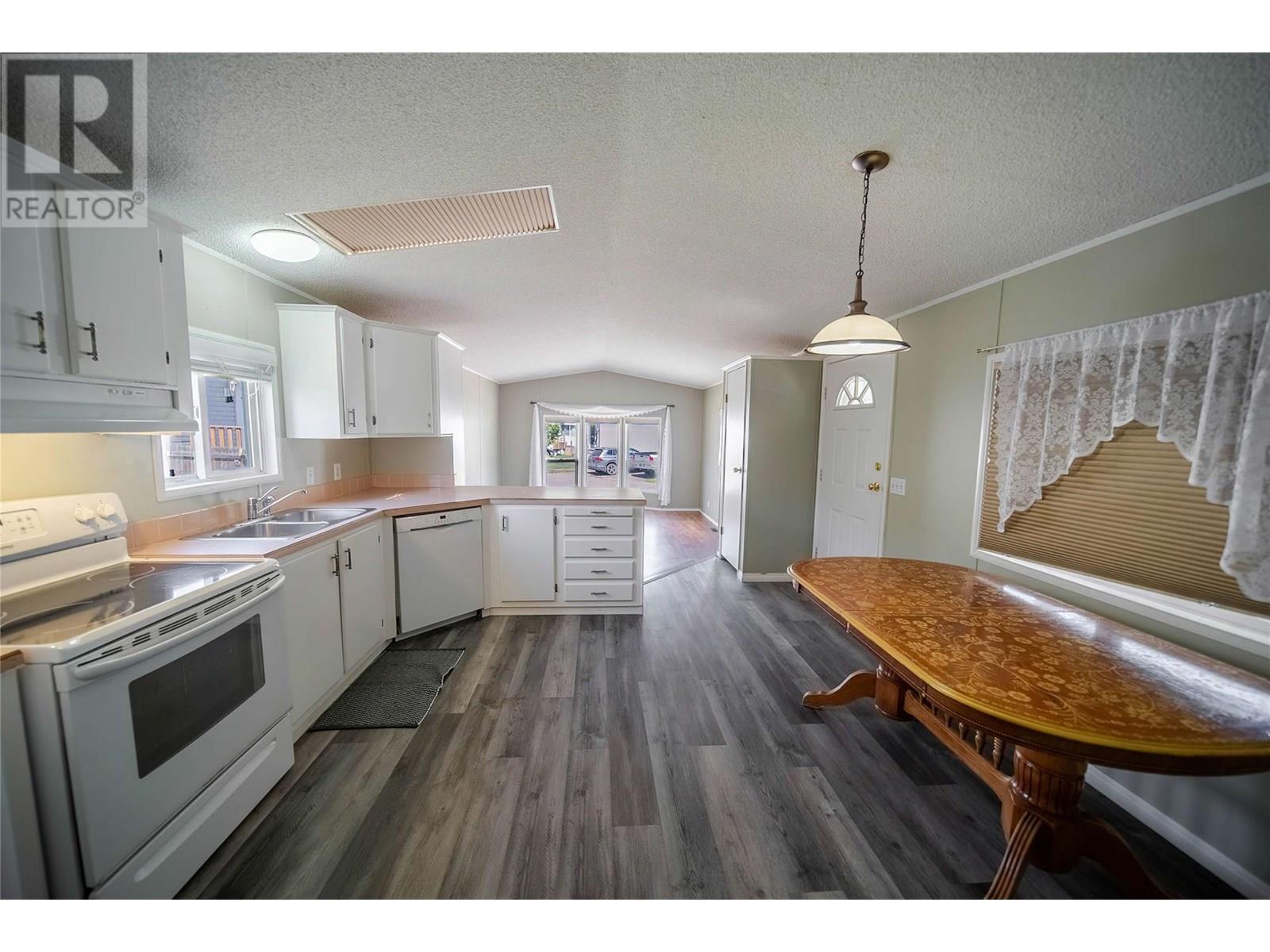 $440 MonthlyAffordable 2-Bedroom Home in Mountain View – Sparwood. This well-maintained 2-bedroom, 2-bathroom home in Mountain View Manufactured Home Park is a great opportunity to enter the Sparwood market. With approximately 1,000 sq ft of living space, it features a spacious entryway addition and a thoughtful layout that separates living and sleeping areas. One end of the home offers two bedrooms and a full bathroom, while the opposite end boasts a bright, open-concept kitchen, dining, and living area filled with natural light. Just off the kitchen is a half bathroom with laundry, plus a separate built-in desk and workspace—perfect for a home office or hobby area. Recent updates include a new furnace (2020), A/C added in 2021, new flooring, and a renovated main bathroom, adding both comfort and modern style. Outside, enjoy a fully fenced yard, a large storage shed, and room for gardening or relaxing. Ideal as a starter home, downsize, or investment opportunity in a family friendly neighbourhood. Don’t miss your chance to own a great home in beautiful Sparwood! (id:44393)