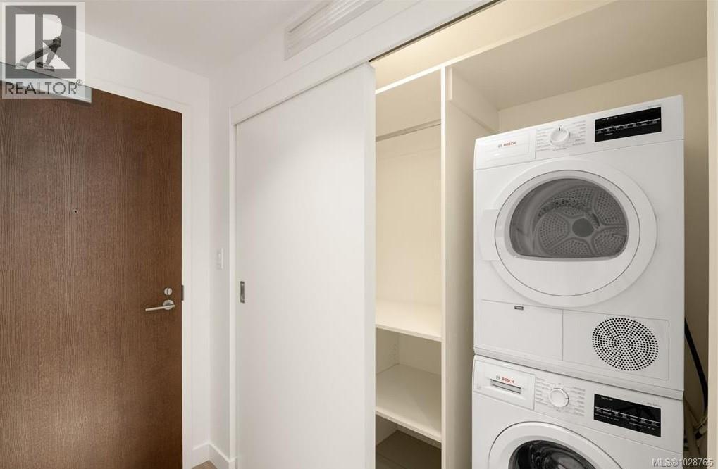$331 MonthlyWelcome to Victoria's finest condo in the elegant 'Yates On Yates'. Ten stories up, you will love the pleasant city views. Efficient floor plan with 540 sf strata area of luxurious living space + balcony, heat pump / air-conditioning, oak-inspired laminate flooring, decent size bedroom with walk-in closet, heated tile floor in 4 pce bathroom, and Bosch front load washer & ventless dryer. The kitchen features a fully integrated built-in appliance package, including a Liebherr refrigerator, Fisher & Paykel induction cooktop and dishwasher, solid quartz kitchen counters w/one piece backsplashes, etc. External storage & dedicated secure bike rack. This property is priced below assessment and offers tremendous value in an excellent neighbourhood. (id:44393)