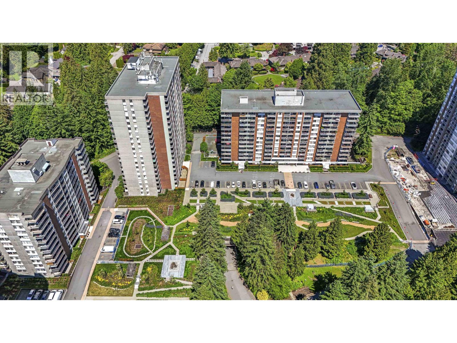 $500.53 MonthlyOne of the lowest priced 1 BDRM's in North Vancouver! This 10th floor east facing concrete hi-rise unit has courtyard garden views & morning sun. Woodcroft is situated over 13 acres along the Capilano River in a beautiful treed/landscaped location, a true North Vancouver location. Home is mostly in original condition which provides opportunity for a first-timer or investor. Amenities: indoor pool, hot tub, sauna, gym, billiards. The parking membrane project is complete & paid by current owner which provides all new landscaping and walk-ways. Building has had many updates. One cat allowed. One parking stall & locker. EV charging available. Strata fee includes *electricity, heat & hot water*. Steps to the new Lions Gate Recreation Centre (5 mins), Park Royal shopping, cinema, transit, (10 mins) hiking trails, fishing, (in your backyard) skiing at Grouse Mountain, Capilano River trails to Ambleside beach! Live the North Vancouver Lifestyle - call today! Some virtual staging. OPEN HOUSE OCT 11 (2-4PM) (id:44393)