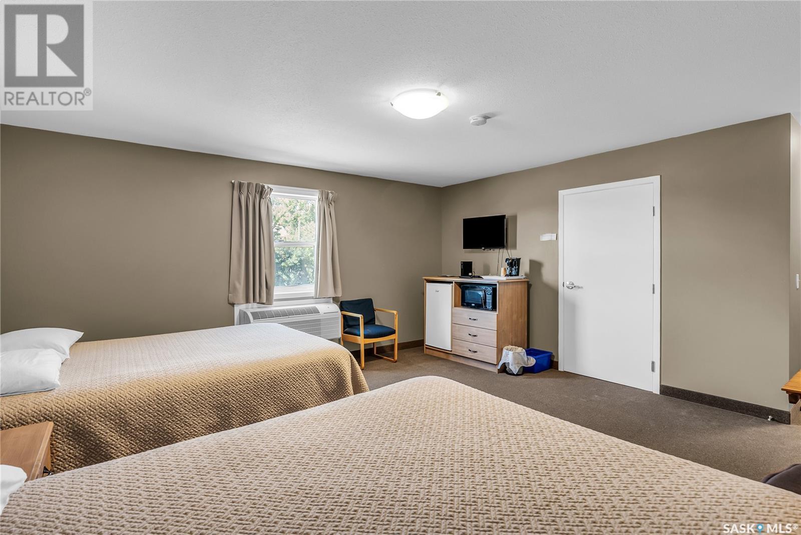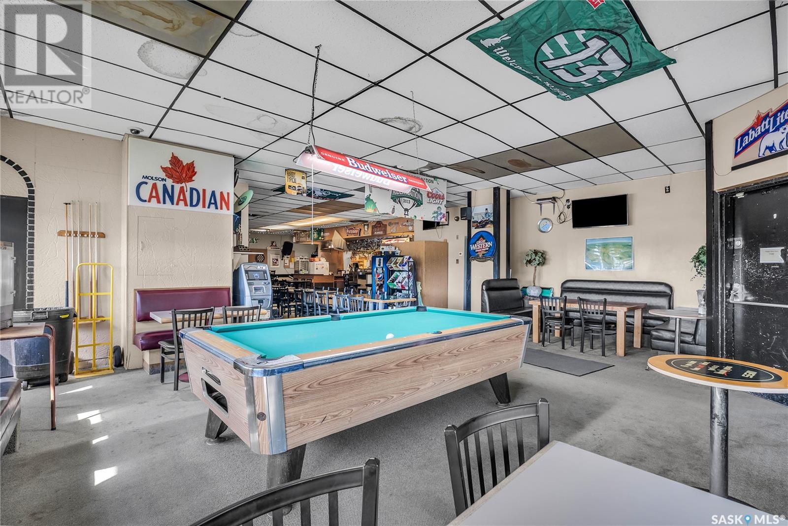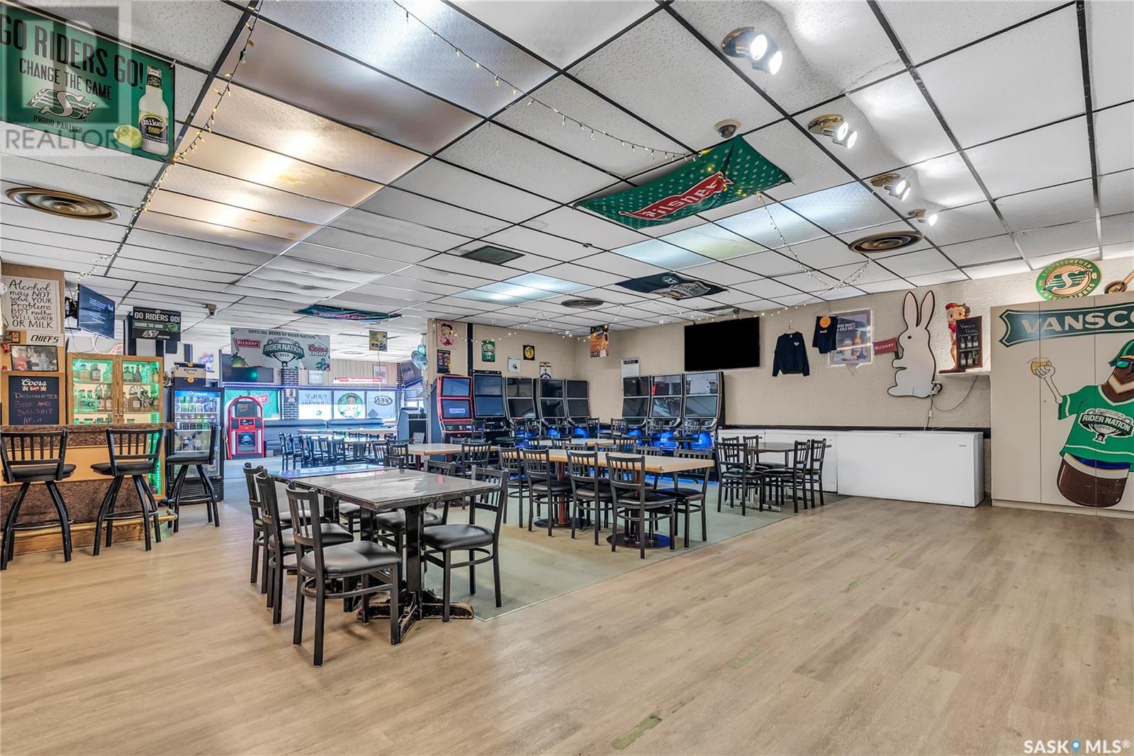 Opportunity knocks with this well-established bar and hotel for sale in Vanscoy, Saskatchewan—just a quick 15-minute drive from Saskatoon on a double-lane highway. Strategically located less than 10 minutes from both Nutrien Vanscoy and Nutrien Cory potash mines, this property benefits from consistent traffic and a loyal customer base of local residents and transient workers. The bar features a liquor license, off-sale license, and 8 VLTs, with a spacious seating capacity of 128, plus a large patio area that is perfect for the summer months. Above the bar are seven rooms, including a comfortable manager’s suite, offering flexibility for staff housing or future expansion. Recent updates include a newer boiler, furnace, hot water tank, roof repairs ($27k in 2023), and an upgraded fire suppression system, providing peace of mind for the next owner. The hotel portion, built in 2011, features 12 guest rooms—eight singles and four doubles—with one unit specifically designed for wheelchair accessibility. Each room is equipped with air conditioning, and the building enjoys a low vacancy rate, reflecting the ongoing demand in the area. Guests and patrons alike will appreciate the ample on-site parking and abundant off-street parking available. This is a turnkey business and real estate package, priced to sell. No vendor financing is available. Contact your agent today for more details or to arrange a private viewing. (id:44393)