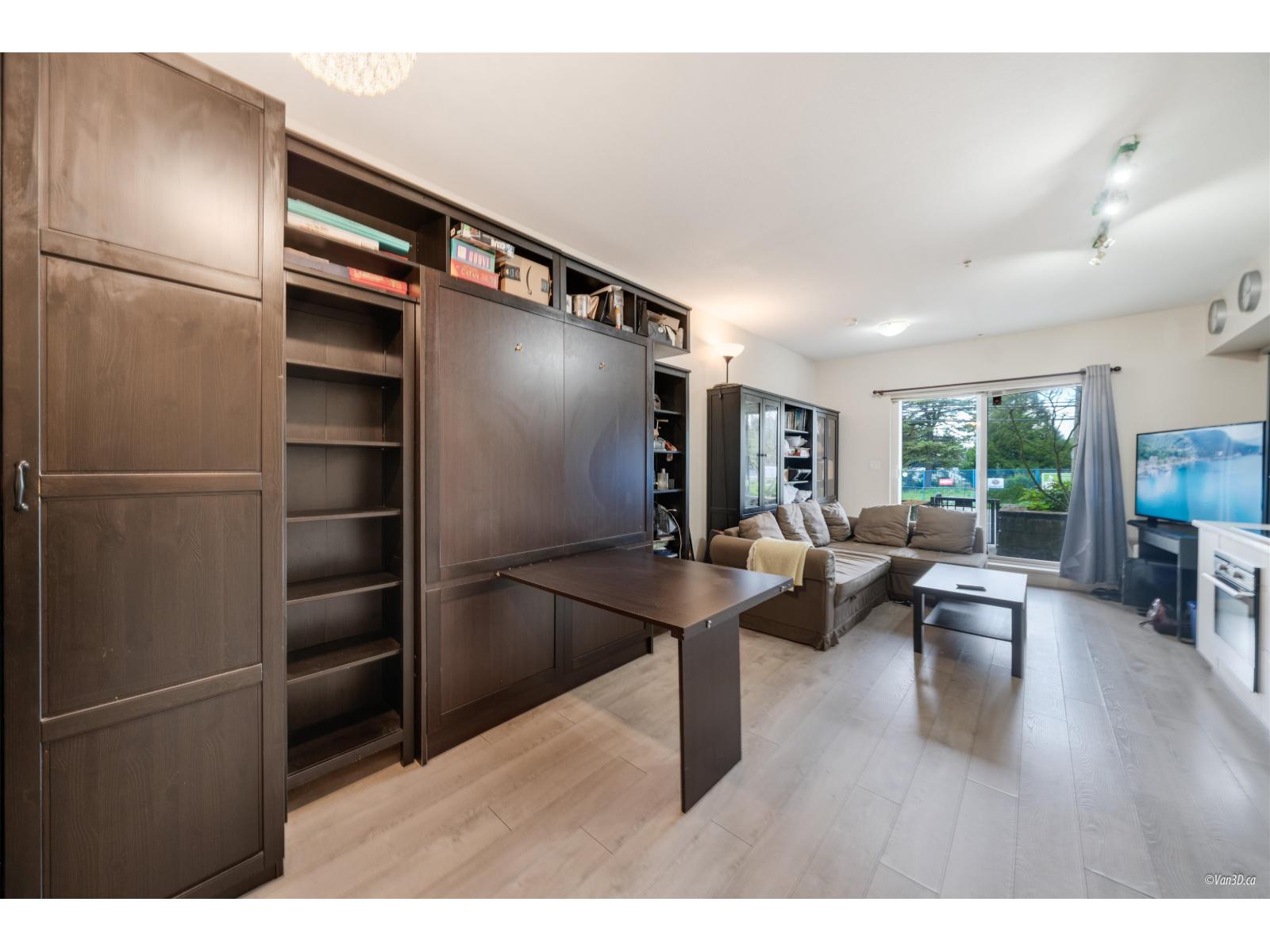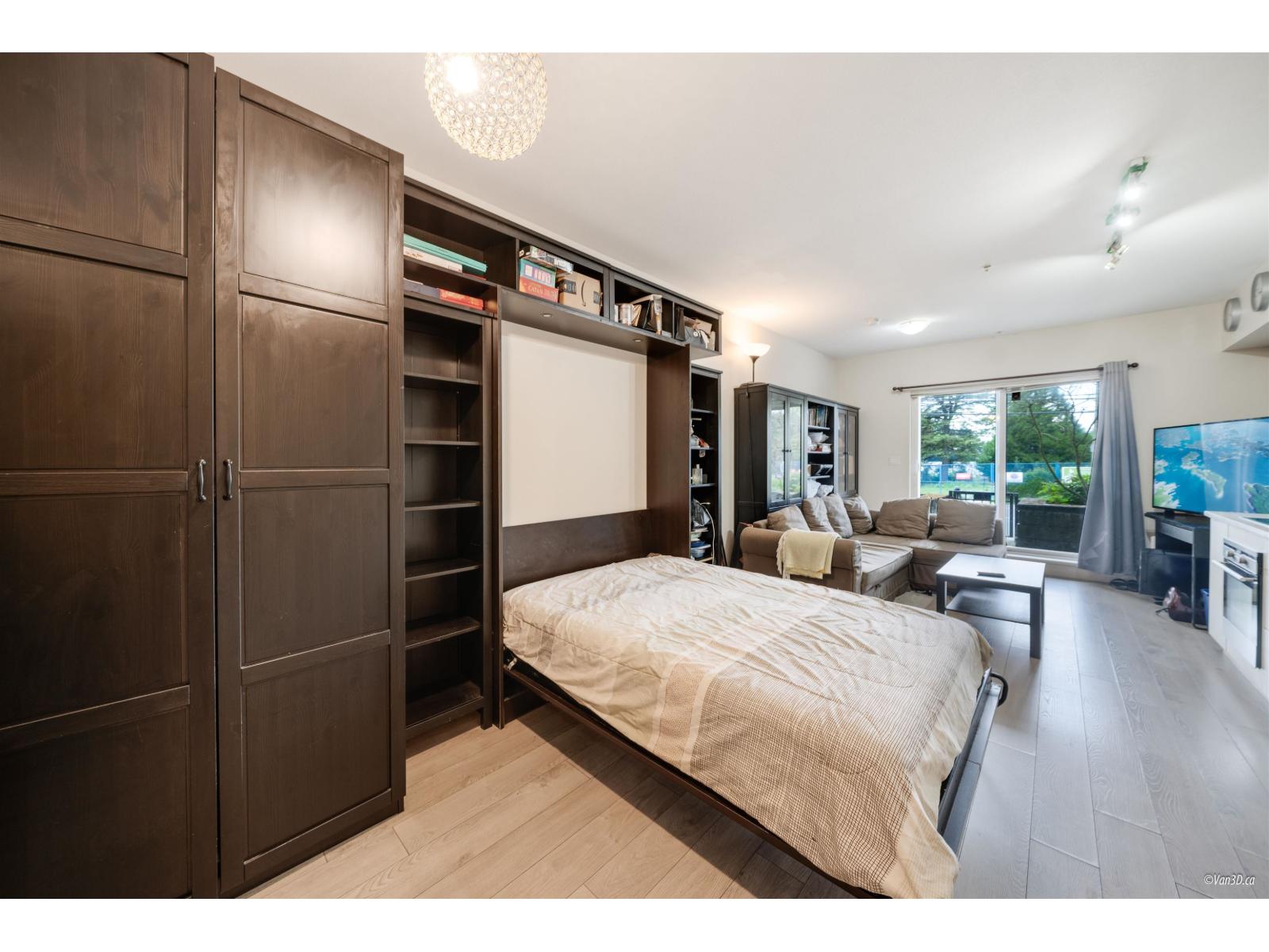 $295.39 MonthlyInvestor Alert! Well-designed ground-level studio with a fantastic long-term tenant who would love to stay. Features include vinyl plank flooring, tile bathroom, custom built-in Murphy bed, wall-to-wall cabinetry, and built-in appliances for maximum efficiency. Enjoy a spacious southwest-facing patio, plus secure underground parking and storage locker. Pet- and rental-friendly building in the heart of Whalley/Bolivar Heights, Surrey's rapidly growing downtown core-steps to SkyTrain, shopping, and amenities. Excellent value and future upside! (id:44393)