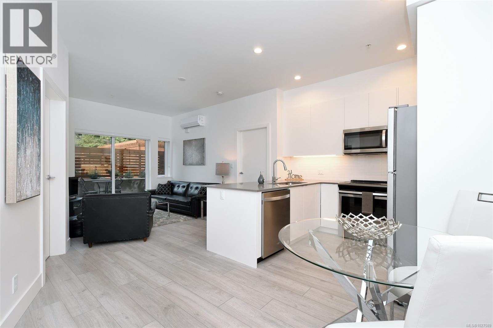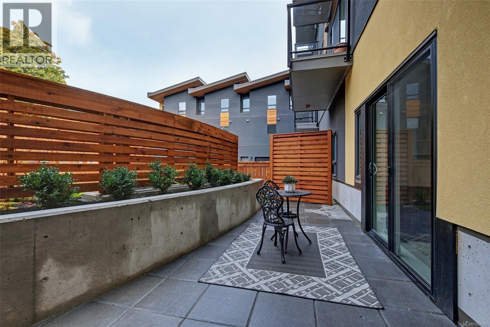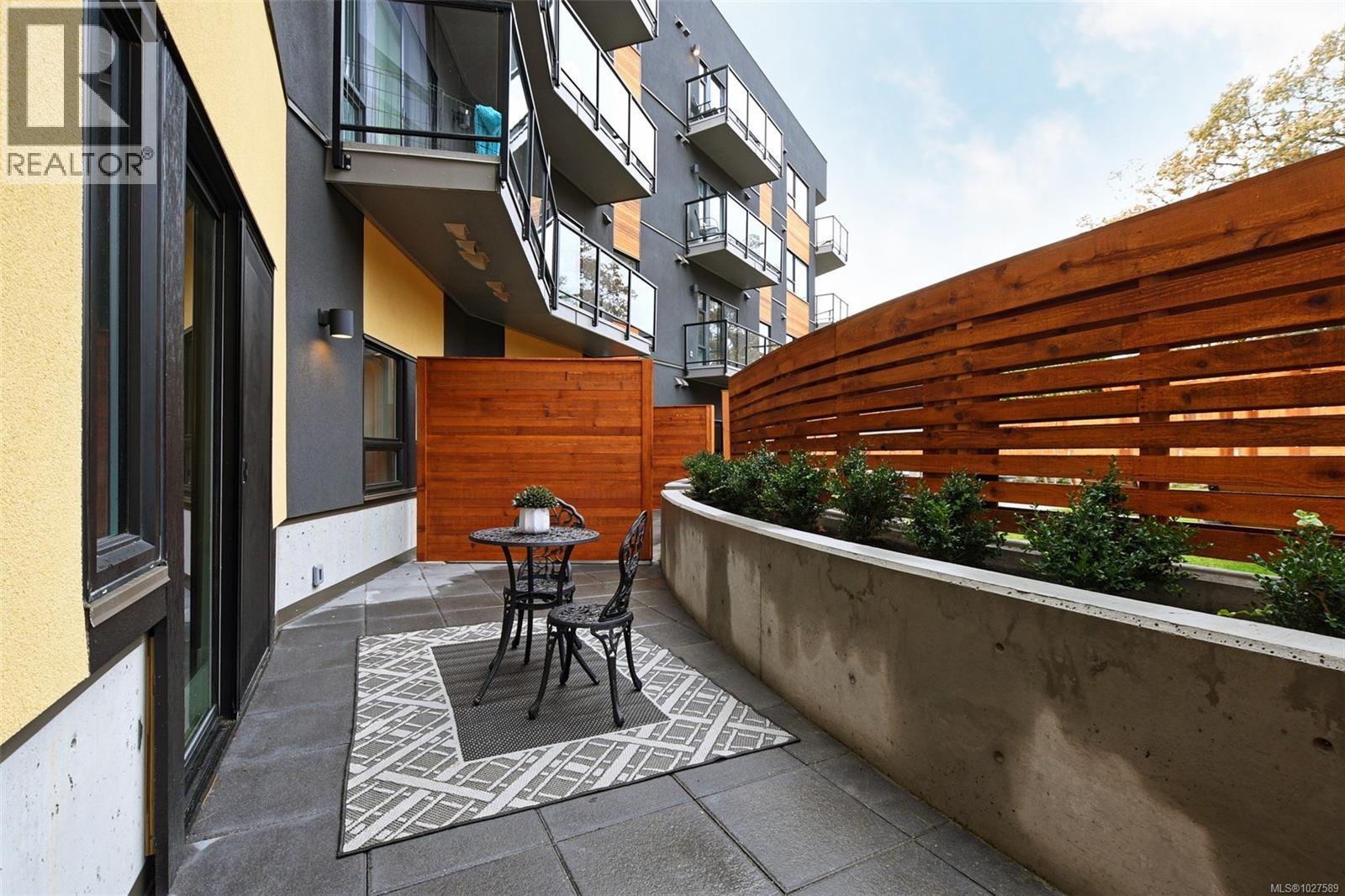 $450 MonthlyOPEN HOUSE SAT, March 7, 2-4pm. Featuring 2 bedrooms, 2 full bathrooms, and 2 parking stalls, this 2019 built, beautiful condo is located in the Otto Building in sought-after Saanich East. This ground-level condo offers the perfect blend of style, efficiency & convenience. The well-designed open-concept layout boasts 10-ft ceilings in the primary bedroom and 9-ft ceilings throughout, oversized windows, quartz countertops, stainless steel appliances, high-end finishes & excellent bedroom separation. Enjoy year-round comfort with three ductless heat pumps & in-suite laundry. The large west-facing private patio with direct courtyard access is ideal for entertaining & sunset BBQs. Built green for high efficiency & low operating costs, the building also offers secure underground parking with six 240V EV chargers, separate storage & bike storage. Pet- and family-friendly, all in a prime central location near UVic, Swan Lake, easy transit to downtown, and the Westshore. Perfect for families or a great investment opportunity. Move in and call this your home today! (id:44393)