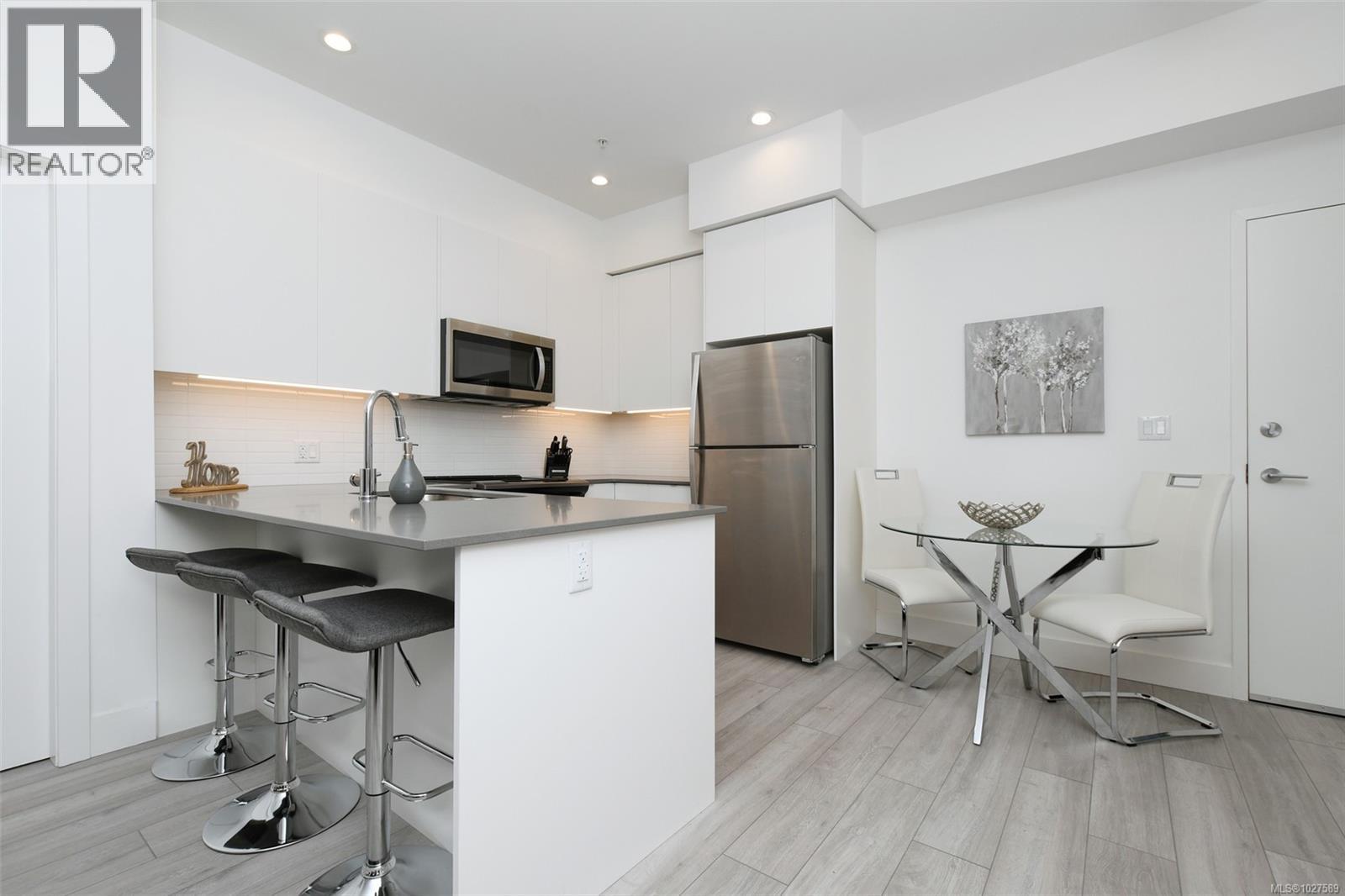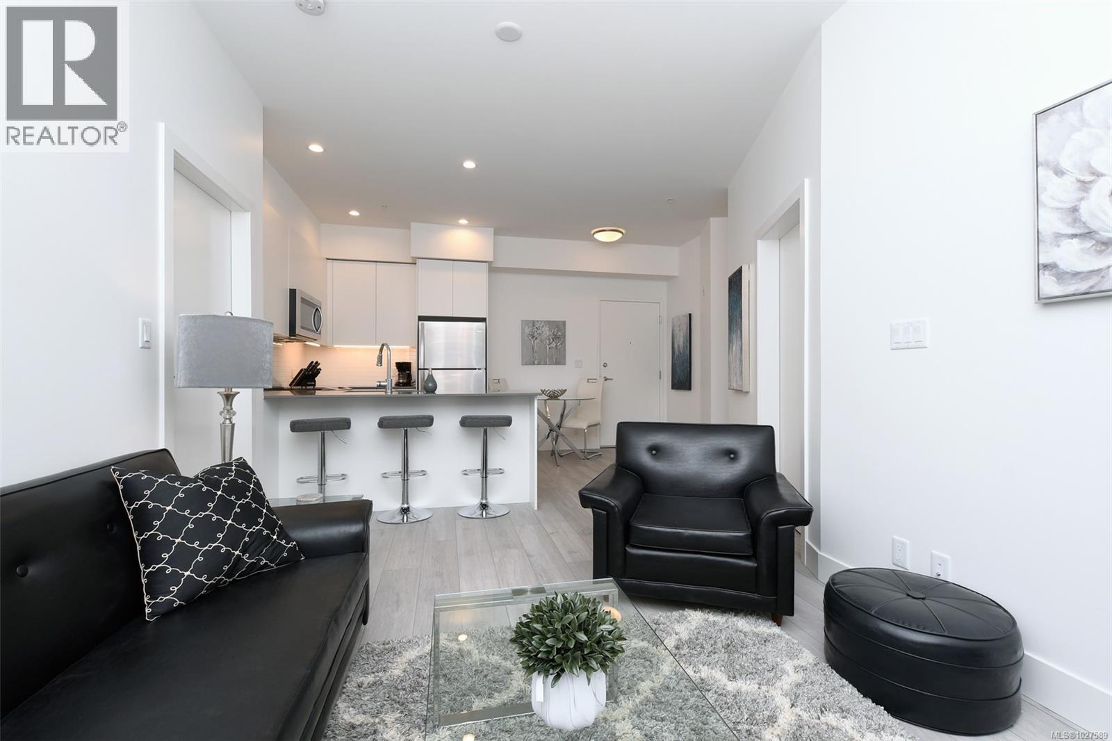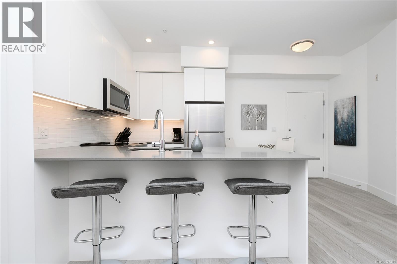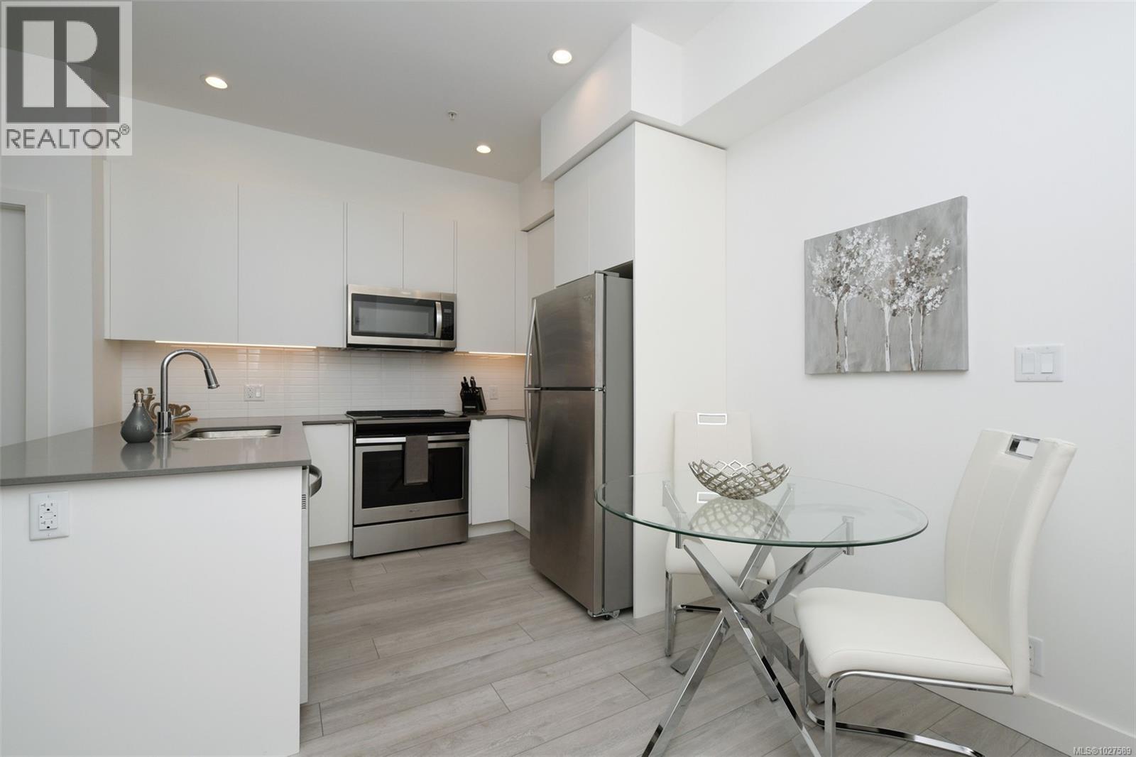$450 MonthlyOPEN HOUSE SAT, March 7, 2-4pm. Featuring 2 bedrooms, 2 full bathrooms, and 2 parking stalls, this 2019 built, beautiful condo is located in the Otto Building in sought-after Saanich East. This ground-level condo offers the perfect blend of style, efficiency & convenience. The well-designed open-concept layout boasts 10-ft ceilings in the primary bedroom and 9-ft ceilings throughout, oversized windows, quartz countertops, stainless steel appliances, high-end finishes & excellent bedroom separation. Enjoy year-round comfort with three ductless heat pumps & in-suite laundry. The large west-facing private patio with direct courtyard access is ideal for entertaining & sunset BBQs. Built green for high efficiency & low operating costs, the building also offers secure underground parking with six 240V EV chargers, separate storage & bike storage. Pet- and family-friendly, all in a prime central location near UVic, Swan Lake, easy transit to downtown, and the Westshore. Perfect for families or a great investment opportunity. Move in and call this your home today! (id:44393)