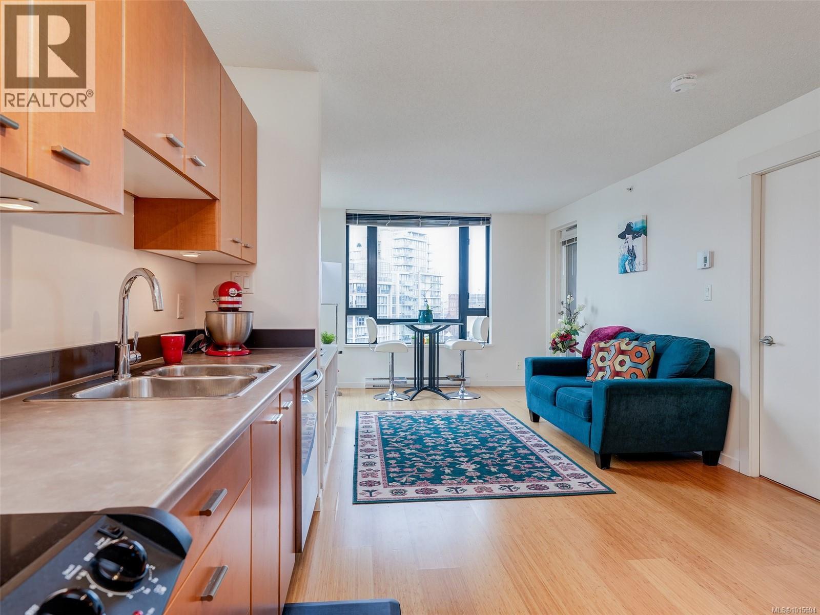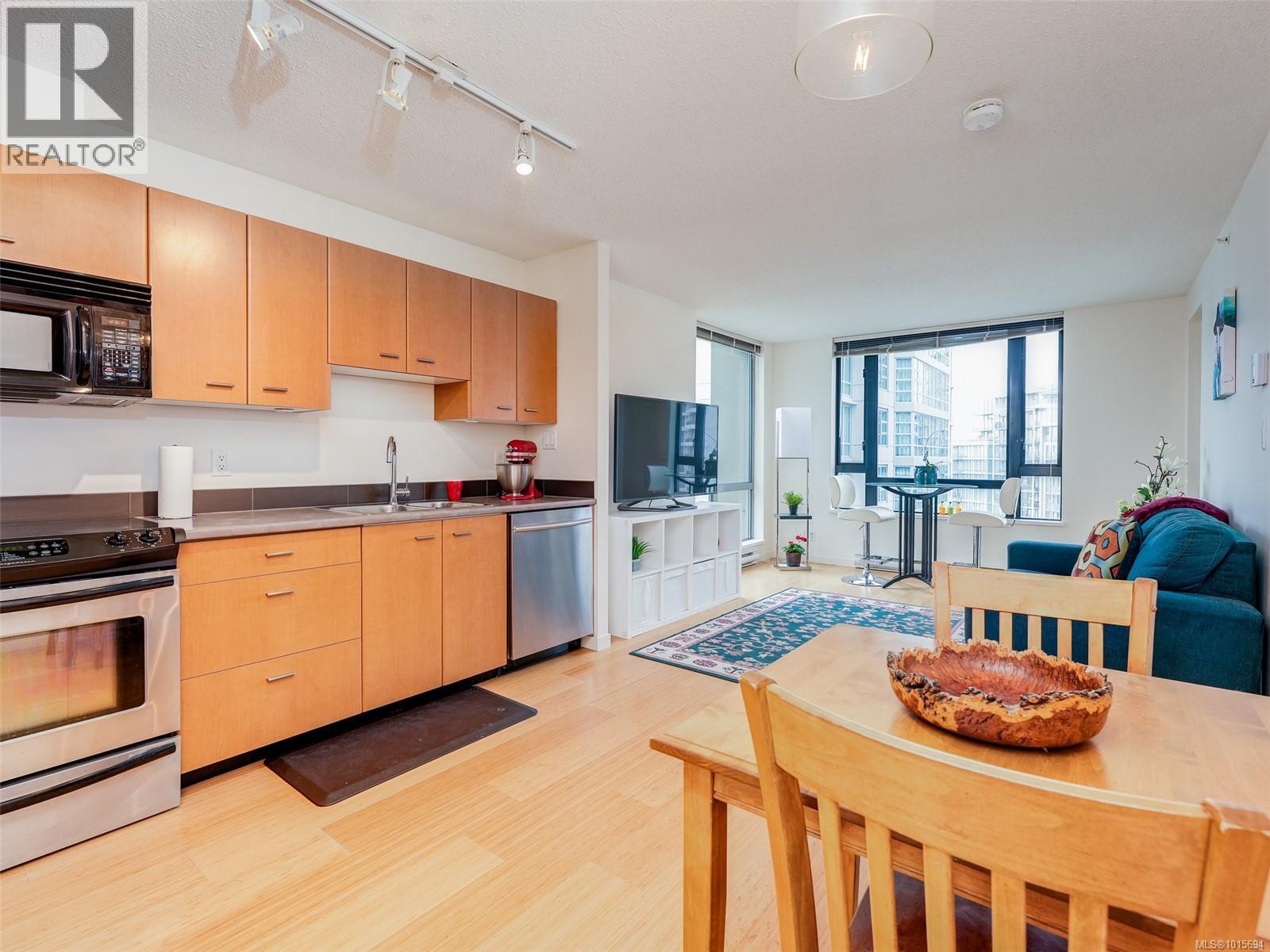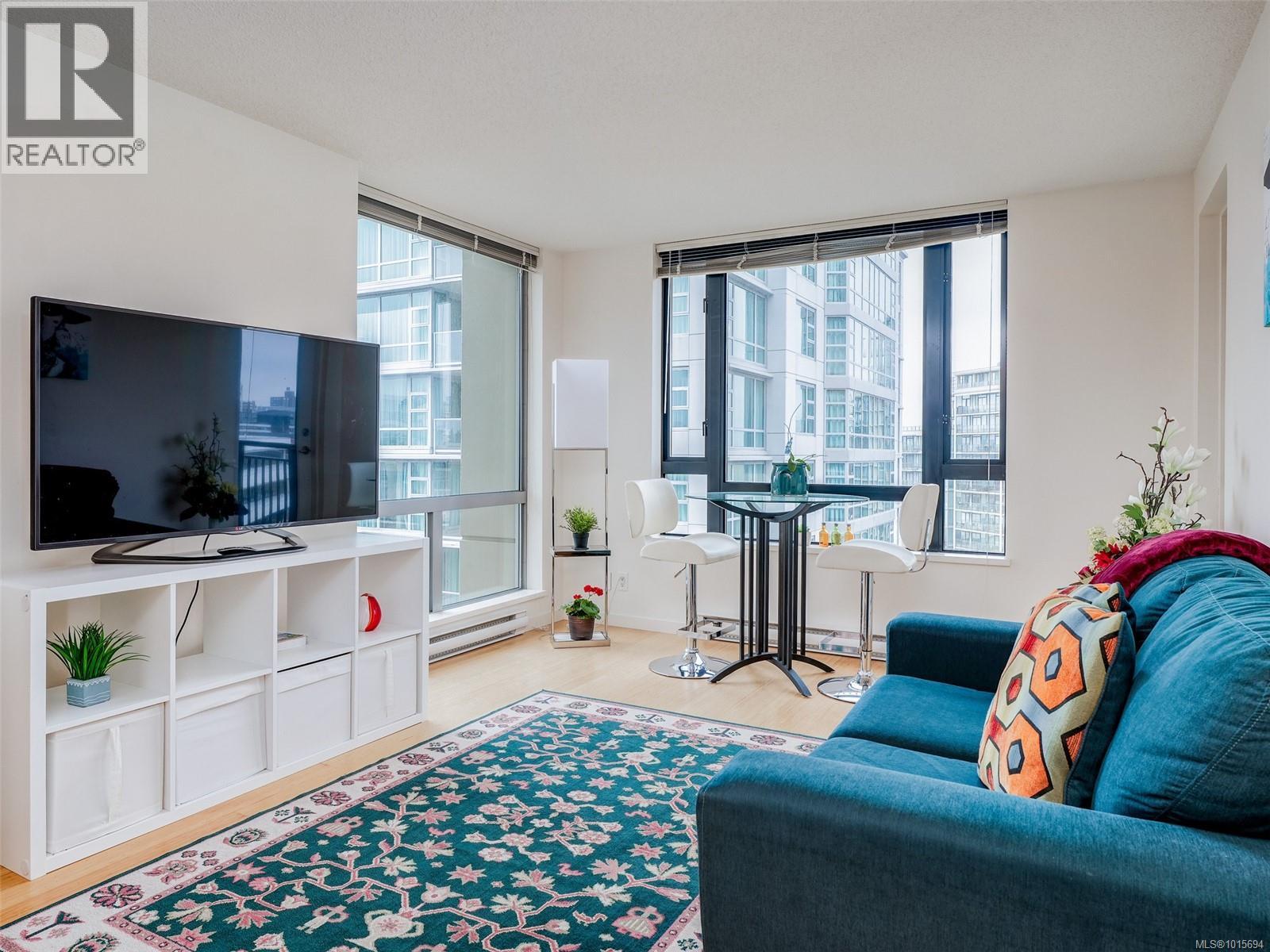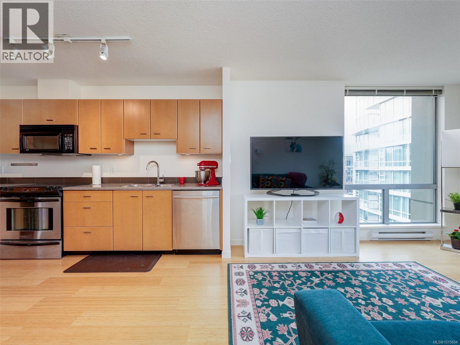 $417 MonthlyLuxury urban living at the 'Astoria'. A modern steel & concrete building in the heart of Downtown's prestigious Humbolt Valley. This sunny south-facing 1-bedroom plus Den corner unit has a west-facing balcony with Downtown, Legislature, Mountain and Ocean views. The unit is a bright open plan with natural light from floor to ceiling windows on 2 sides, and has in-suite laundry and stainless steel appliances. The versatile 8'x8' den is ideal as an office, dressing room, sofa-bed and has access to the 4-piece bathroom. The Astoria boasts amenities like a gym, games/media lounge, secure underground parking, and permits rentals and pets. Steps from Downtown's vibrant shopping, restaurants, entertainment and the Inner Harbour ~ luxury awaits! (id:44393)