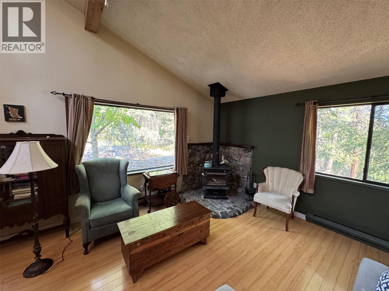 Discover this charming 2-bedroom, 2-bathroom home in the heart of Christina Lake. The kitchen features elegant granite countertops and a built-in oven, while the vaulted ceiling in the living room creates a bright, open atmosphere perfect for entertaining or relaxing. Nestled on over half an acre of wooded, park-like property, this home offers real natural beauty, complete with a cozy fire pit for evenings outdoors. A wonderful opportunity to enjoy all that Christina Lake living has to offer! (id:44393)
