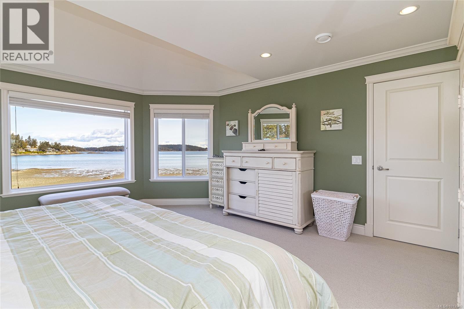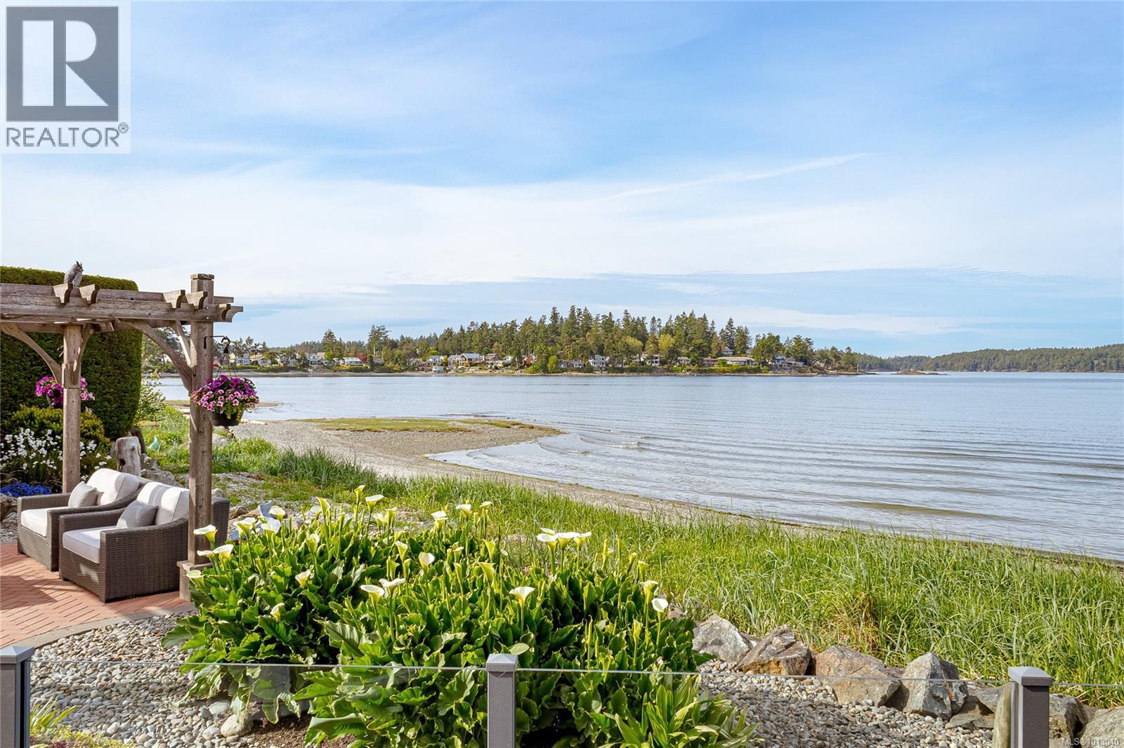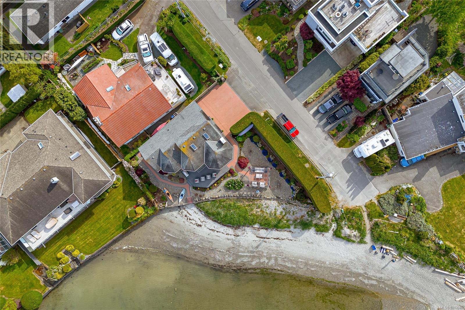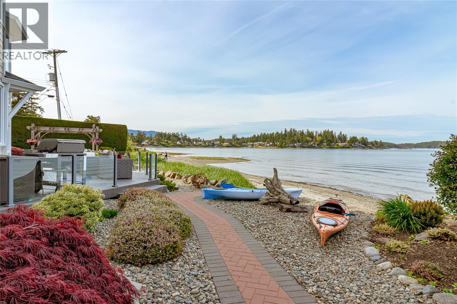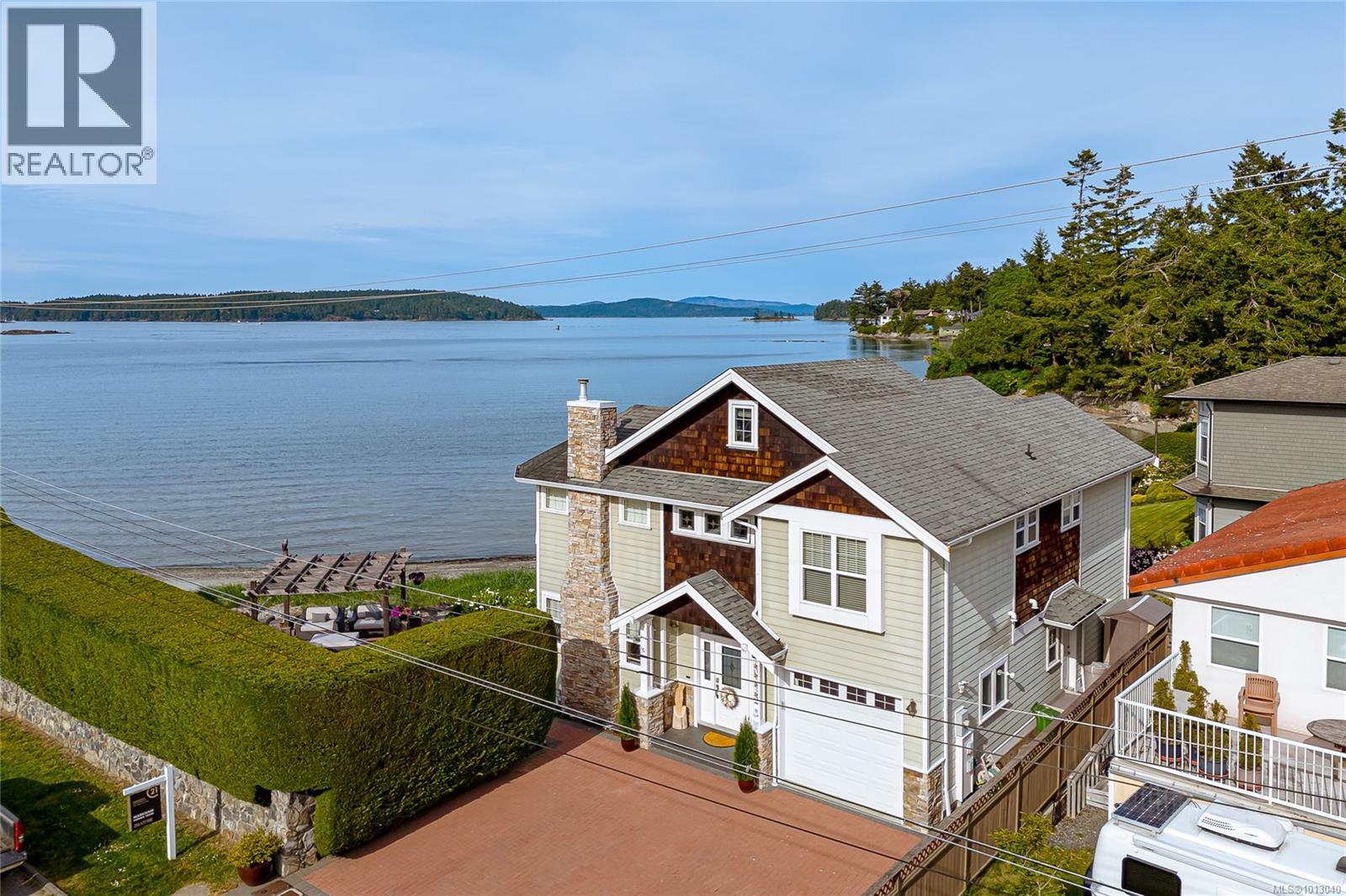 NEW PRICE! This exceptional waterfront home, custom-built, is nestled on a private lane with breathtaking views of Roberts Bay. The gently sloping waterfront offers easy access for kayaking and beach walks. The home boasts a gourmet kitchen with cherry wood cabinetry, granite countertops, crown moldings, central vac, and in-floor radiant heating throughout. Natural gas and an irrigation system for the a striking professionally designed seaside garden enhance comfort and convenience. With an easy walk to downtown Sidney, this unique property features water views from almost every room, four spacious bedrooms, three bathrooms (1 with a steam shower), and a low-maintenance yard with a brick-laid driveway and pathways. The beautiful patio extends the living space outdoors, and the attic offers a hobby room or ample storage. With flexibility for four to five bedrooms, this home is perfect for those seeking tranquility and coastal beauty. (id:44393)