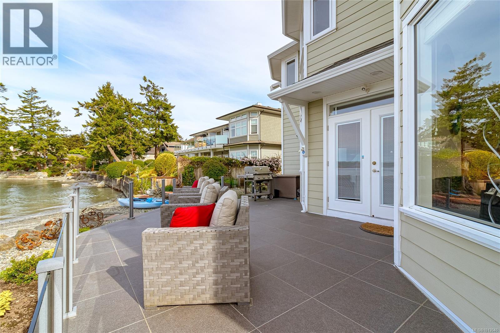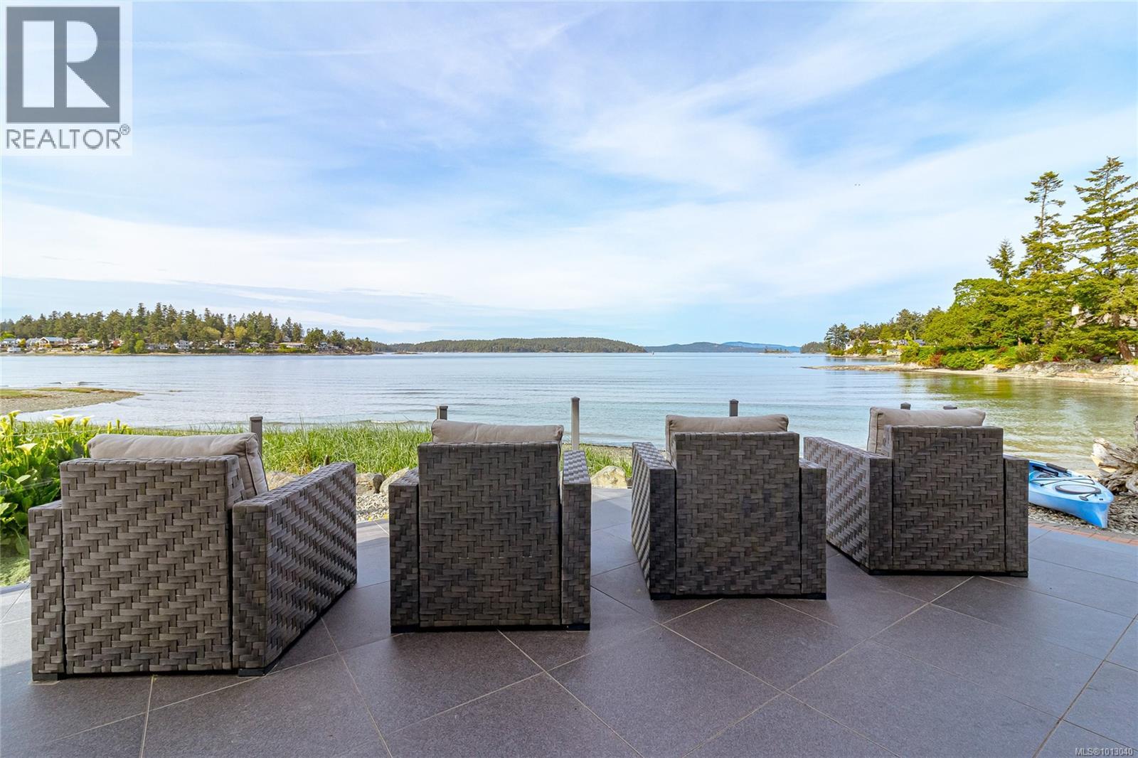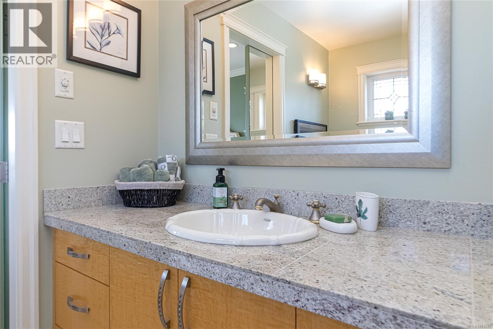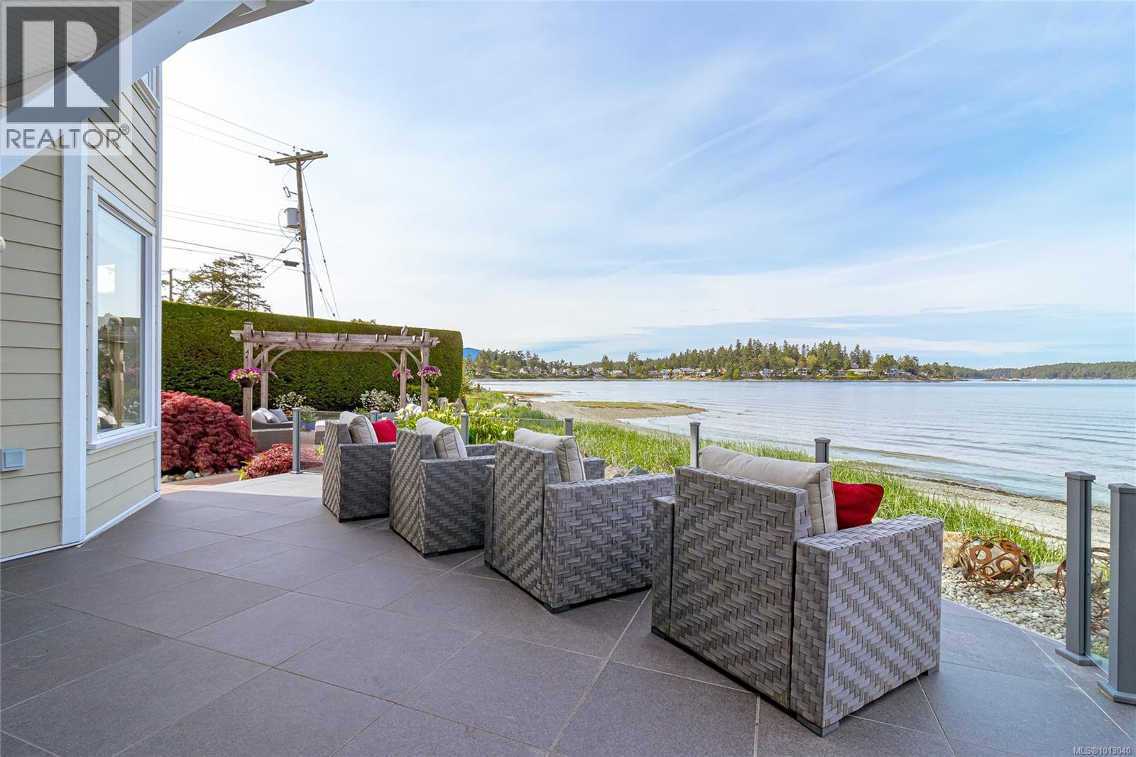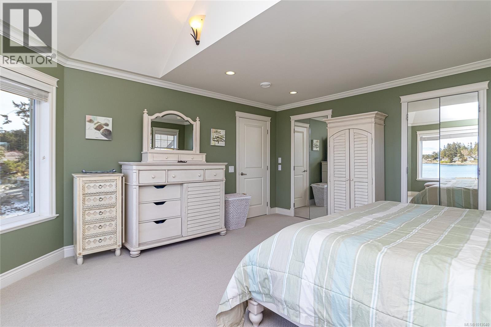 NEW PRICE! This exceptional waterfront home, custom-built, is nestled on a private lane with breathtaking views of Roberts Bay. The gently sloping waterfront offers easy access for kayaking and beach walks. The home boasts a gourmet kitchen with cherry wood cabinetry, granite countertops, crown moldings, central vac, and in-floor radiant heating throughout. Natural gas and an irrigation system for the a striking professionally designed seaside garden enhance comfort and convenience. With an easy walk to downtown Sidney, this unique property features water views from almost every room, four spacious bedrooms, three bathrooms (1 with a steam shower), and a low-maintenance yard with a brick-laid driveway and pathways. The beautiful patio extends the living space outdoors, and the attic offers a hobby room or ample storage. With flexibility for four to five bedrooms, this home is perfect for those seeking tranquility and coastal beauty. (id:44393)