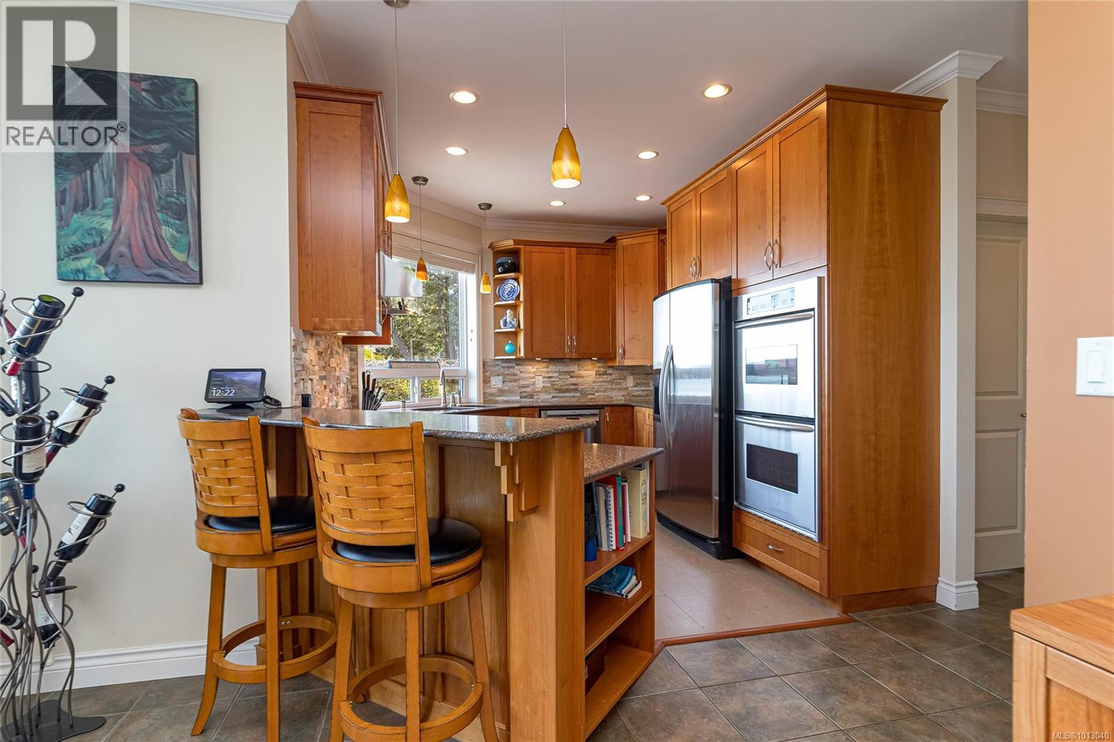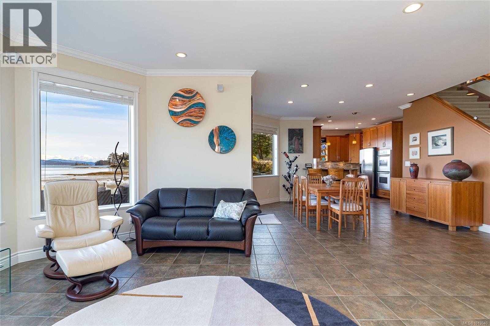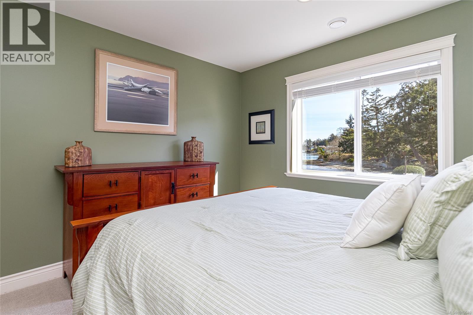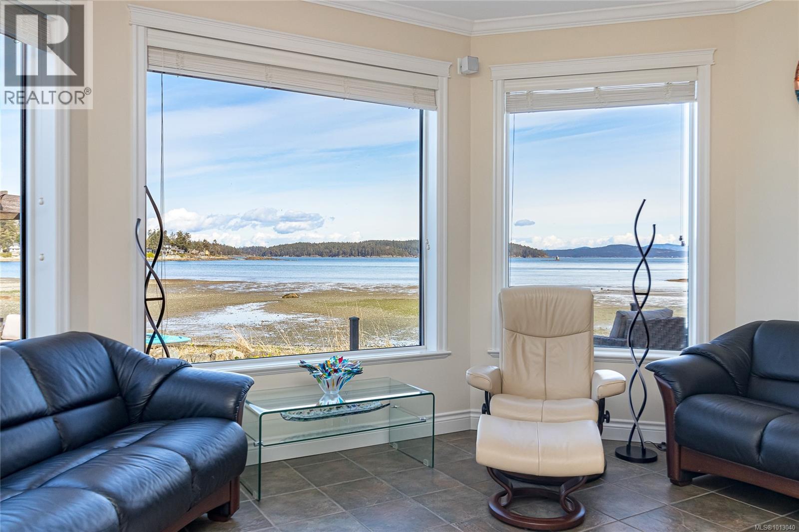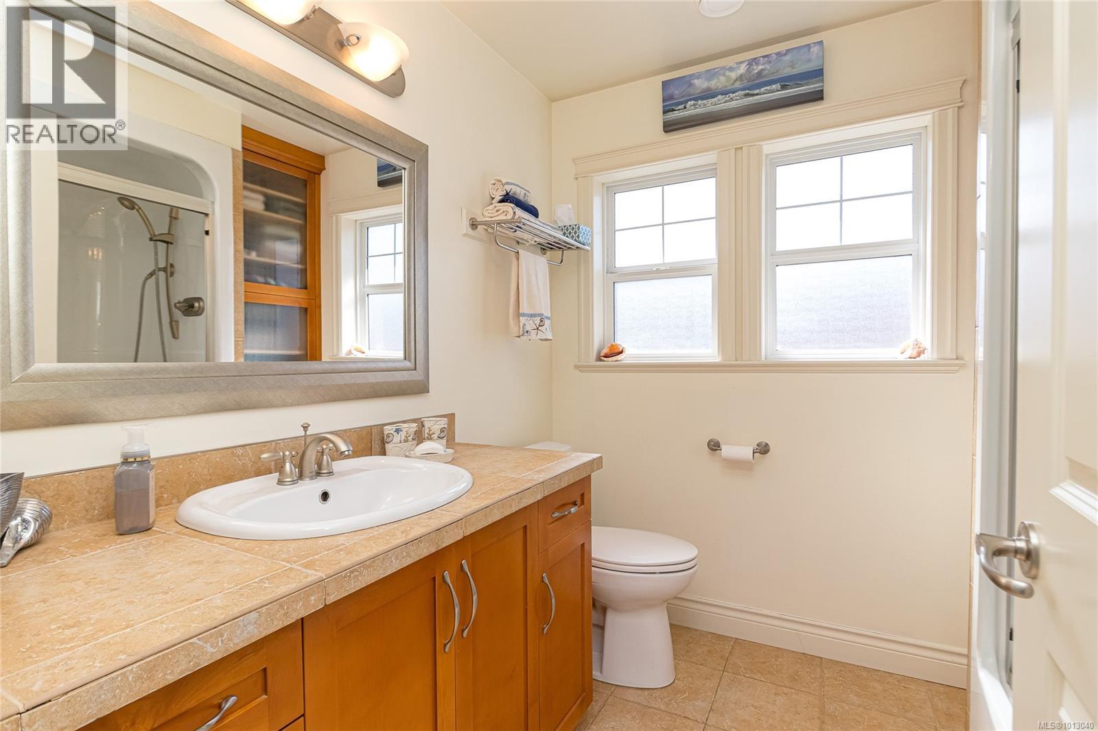 NEW PRICE! This exceptional waterfront home, custom-built, is nestled on a private lane with breathtaking views of Roberts Bay. The gently sloping waterfront offers easy access for kayaking and beach walks. The home boasts a gourmet kitchen with cherry wood cabinetry, granite countertops, crown moldings, central vac, and in-floor radiant heating throughout. Natural gas and an irrigation system for the a striking professionally designed seaside garden enhance comfort and convenience. With an easy walk to downtown Sidney, this unique property features water views from almost every room, four spacious bedrooms, three bathrooms (1 with a steam shower), and a low-maintenance yard with a brick-laid driveway and pathways. The beautiful patio extends the living space outdoors, and the attic offers a hobby room or ample storage. With flexibility for four to five bedrooms, this home is perfect for those seeking tranquility and coastal beauty. (id:44393)