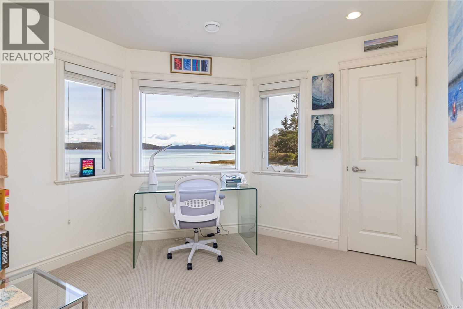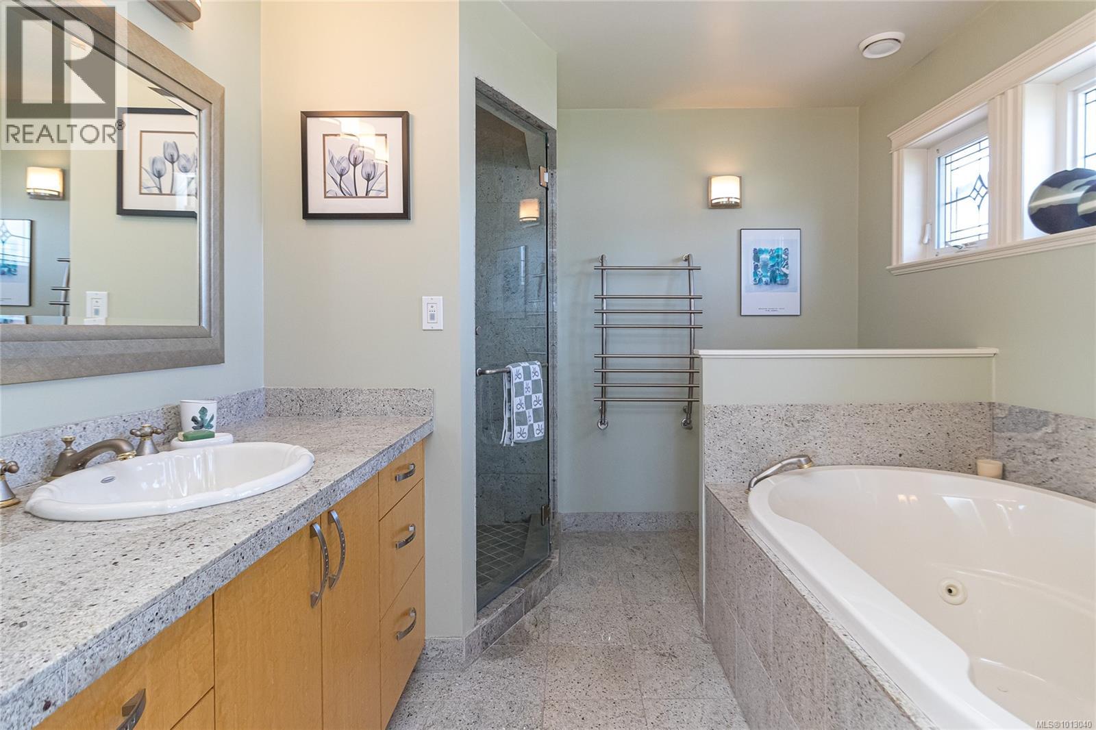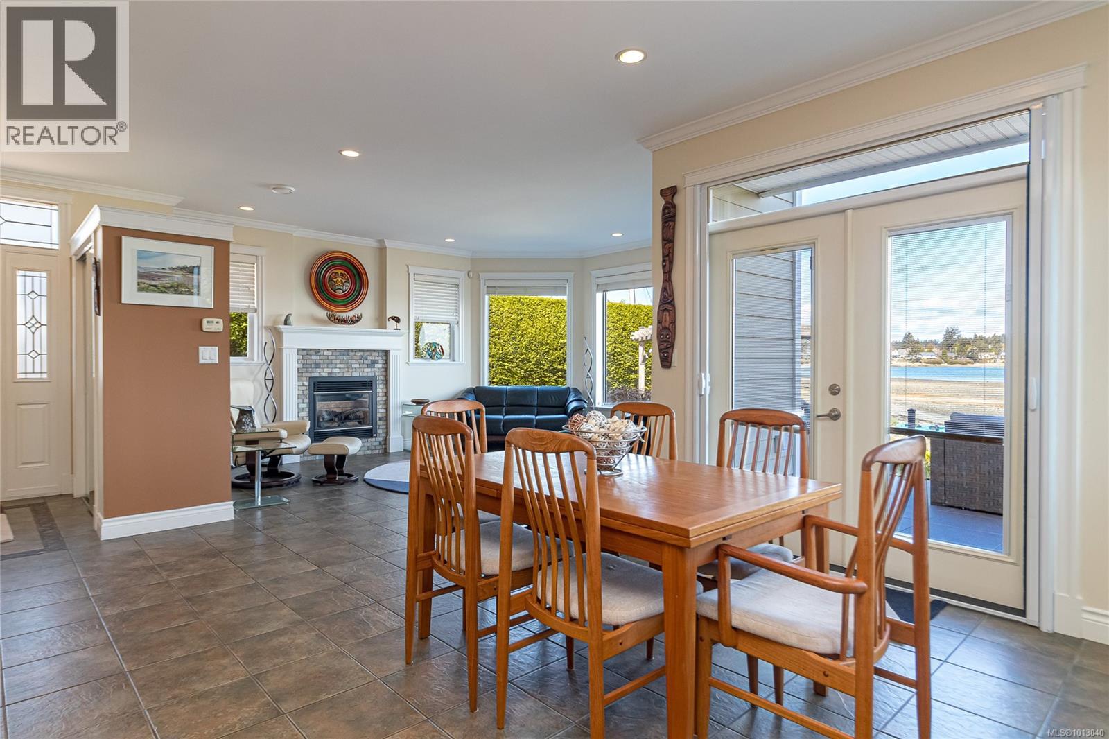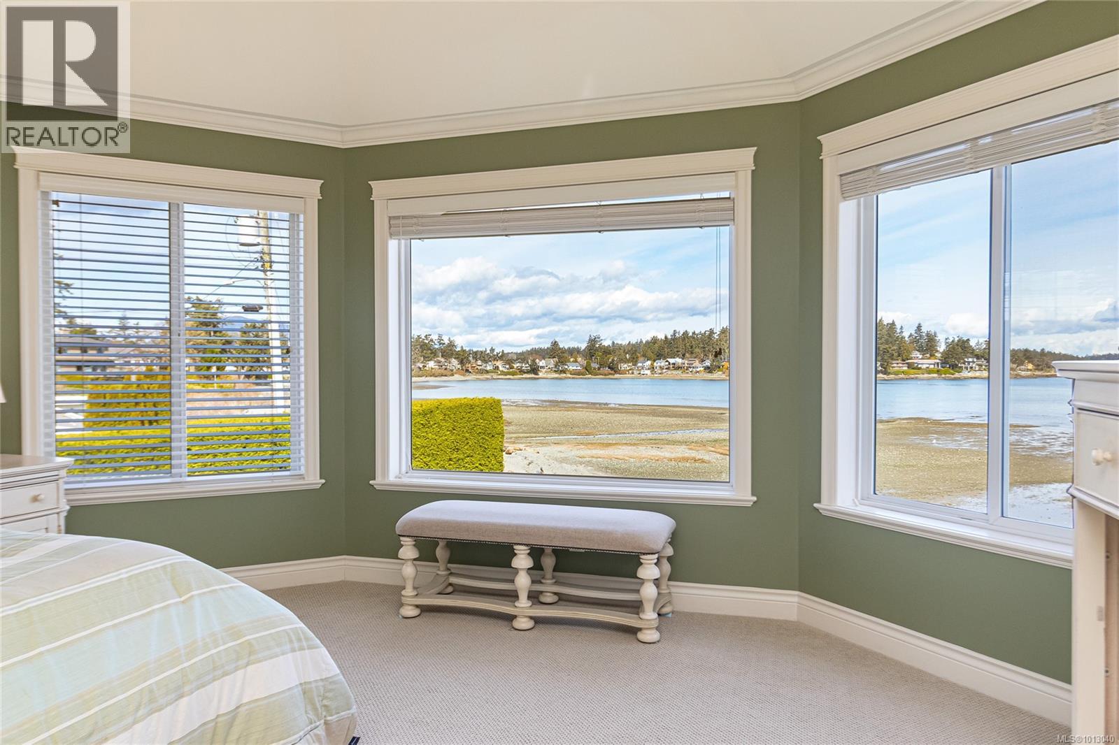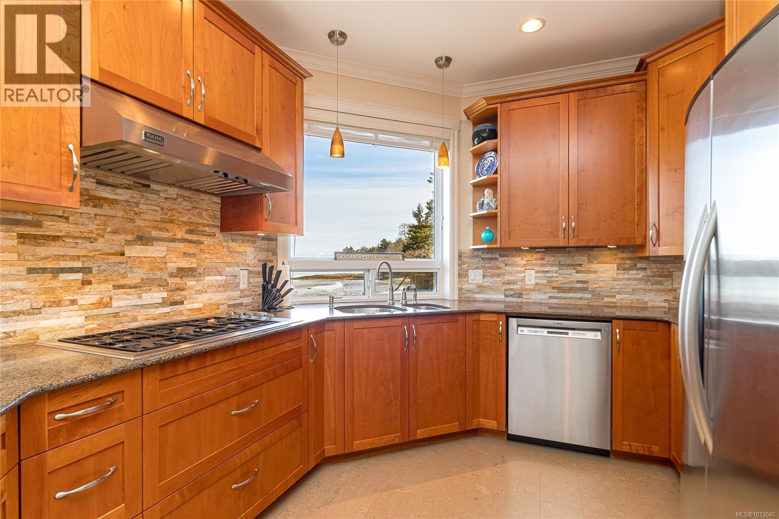 NEW PRICE! This exceptional waterfront home, custom-built, is nestled on a private lane with breathtaking views of Roberts Bay. The gently sloping waterfront offers easy access for kayaking and beach walks. The home boasts a gourmet kitchen with cherry wood cabinetry, granite countertops, crown moldings, central vac, and in-floor radiant heating throughout. Natural gas and an irrigation system for the a striking professionally designed seaside garden enhance comfort and convenience. With an easy walk to downtown Sidney, this unique property features water views from almost every room, four spacious bedrooms, three bathrooms (1 with a steam shower), and a low-maintenance yard with a brick-laid driveway and pathways. The beautiful patio extends the living space outdoors, and the attic offers a hobby room or ample storage. With flexibility for four to five bedrooms, this home is perfect for those seeking tranquility and coastal beauty. (id:44393)