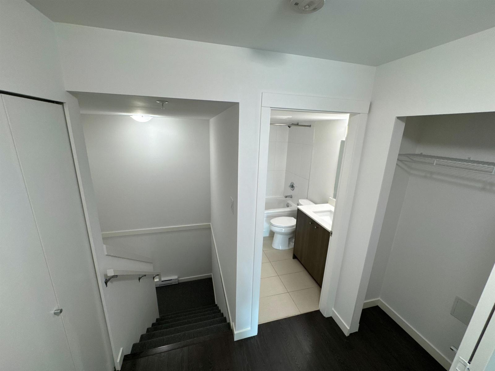 $685.65 MonthlyWelcome to Trillium Living - this elegant corner unit townhouse - recently renovated with fresh paint, new carpet and a modern dishwasher, which offers 2 spacious bedrooms, a versatile den that can serve as a third bedroom, and 2.5 bathrooms. This unit includes 2 parking spots. The main level features a spacious living room, dining area, and a well-equipped kitchen with sleek quartz countertops, stainless steel appliances, and ample storage space. This unit also offers ample in-suite storage, a convenient stacked washer and dryer on the upper level, and no rental restrictions, providing added flexibility for tenants. The ideal location provides easy access to Surrey Central Station, as well as nearby amenities including Walmart, Superstore, parks, and schools, all within a 5-minute walk. (id:44393)