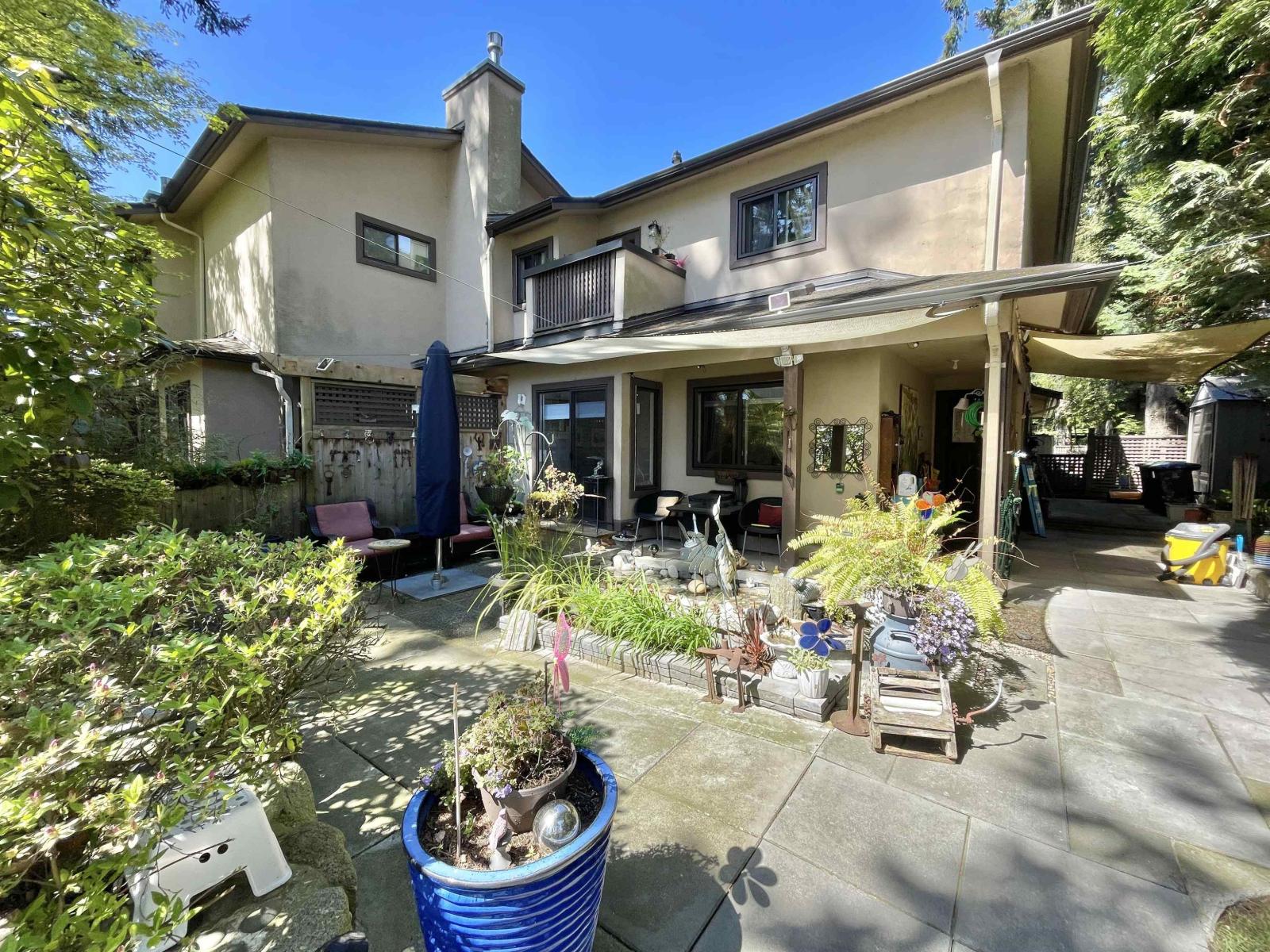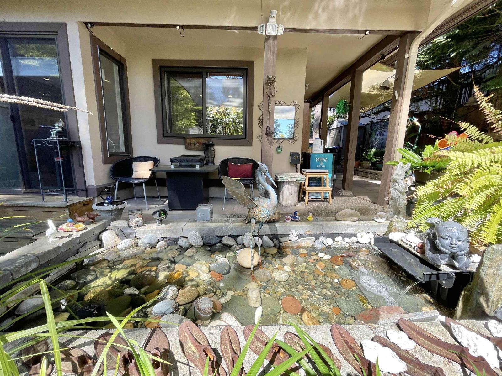$545 MonthlyRarely available in the heart of Ocean Park! This bright and sunny family-friendly townhouse is just steps to shops, cafes, and all amenities of Ocean Park Village. Arguably the best unit in the complex, featuring an incredible 1,249 sq ft sunny SOUTH FACING private patio surrounded by greenery, a sitting area and tranquil pond-perfect for entertaining or relaxing. Thoughtfully renovated in 2015, this home offers a spacious and functional layout with 2 bedrooms, a large den/family room, and 2.5 bathrooms. Enjoy abundant natural light, generous storage, 1 indoor and 1 outdoor parking, and a layout that truly feels like a detached home. A unique opportunity in one of South Surrey's most desirable communities. Ocean Cliff Elementary and Elgin Park Secondary. (id:44393)