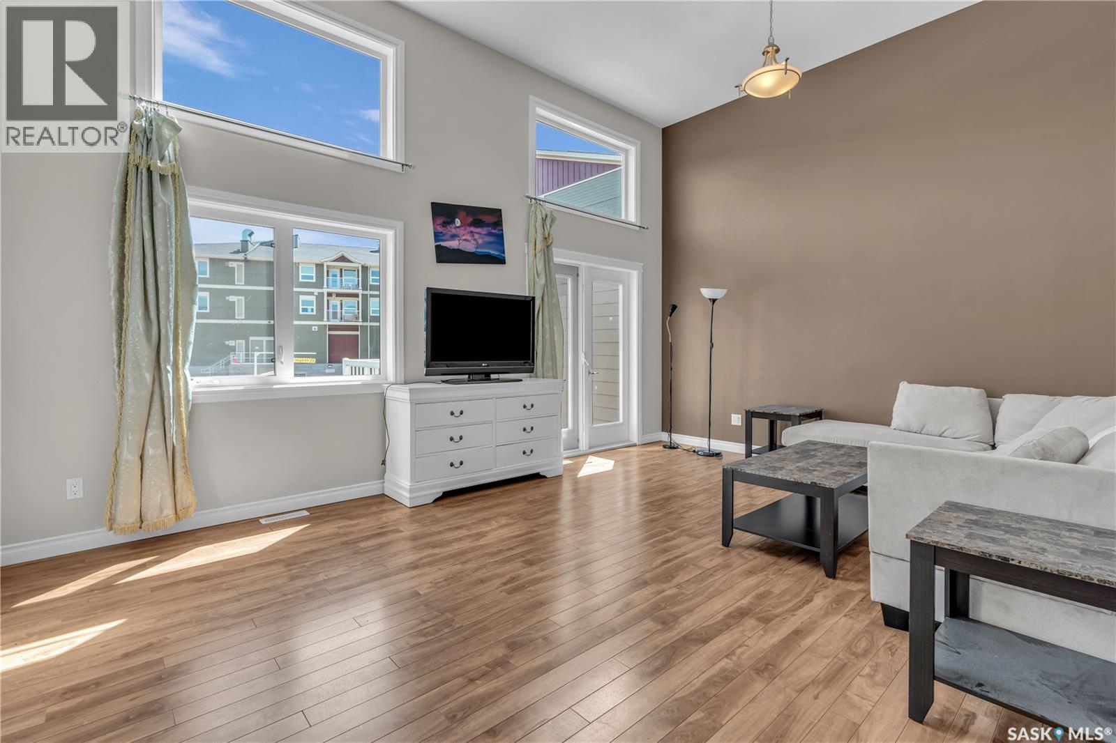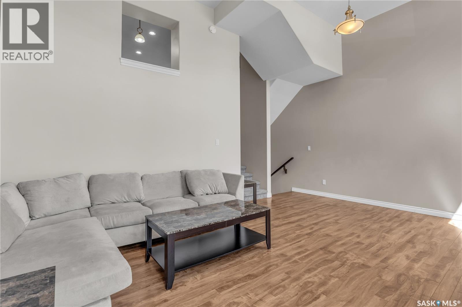 $449.59 MonthlyA Beautiful high-end townhouse for sale in sought-after Stonebridge! This stunning property offers 3 bedrooms, 4 bathrooms, and 1,467 sqft of fully developed living space, this well-maintained home is move-in ready and perfect for families or professionals. From the moment you enter the spacious front foyer, you'll be impressed by the thoughtful layout and natural light. The main level features a stunning, sunlit living room with soaring 12'6" ceilings, large windows, and patio doors that open to your private balcony—an ideal spot to entertain or enjoy your morning coffee while watching the sunrise. The second level showcases a stylish kitchen and dining area, complete with rich espresso cabinetry, stainless steel appliances, a tile backsplash, and a convenient 2-piece powder room for guests. Upstairs on the third level, you’ll find all three bedrooms, including a generous primary suite with a walk-in closet and a 4-piece en-suite. An additional 4-piece bathroom completes this level. In the basement level, you will a family room with another 4-piece bathroom for your additional living space. The utility room and a storage room also locate on this level. Don't miss the video tour on YouTube, and contact your local Saskatoon REALTOR® today to schedule a private showing! (id:44393)