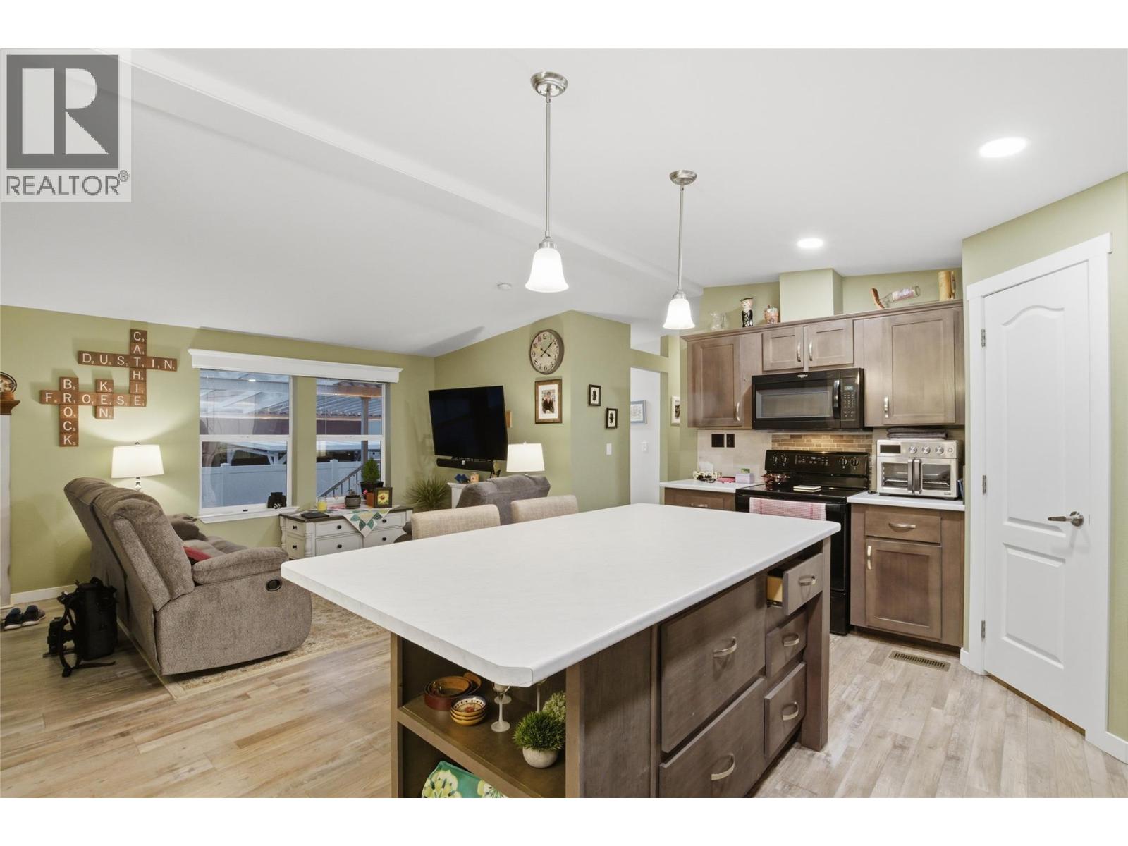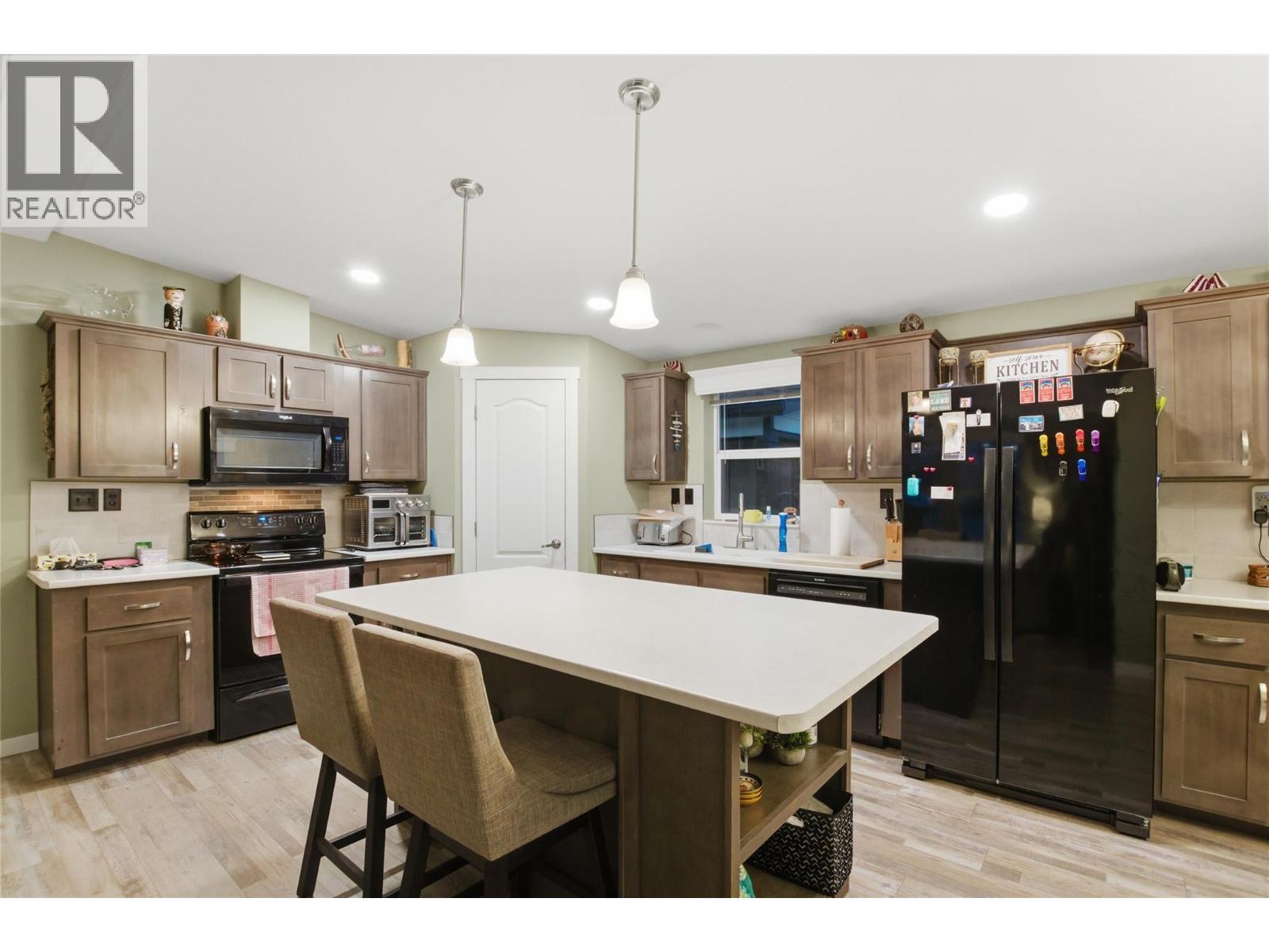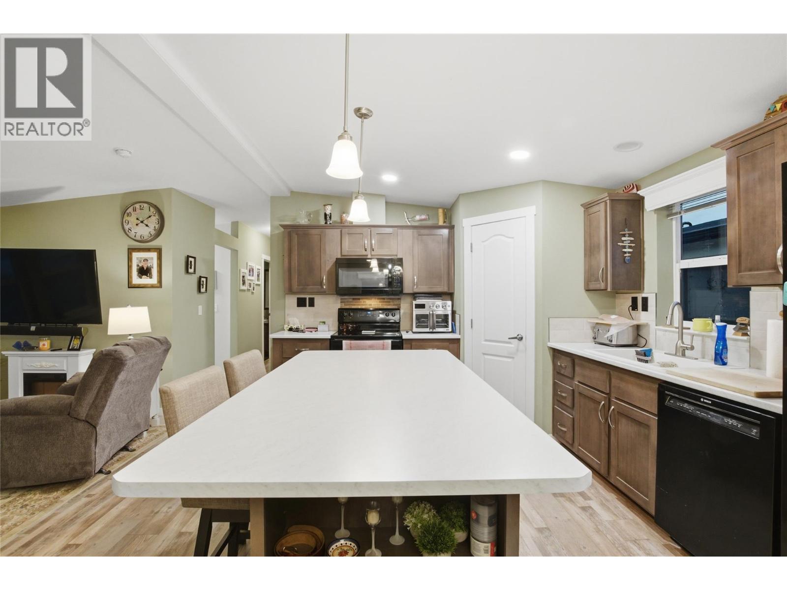 $450 MonthlyWelcome to unit 39-1030 Ricardo Road in the beautiful community of Mountain View Estates. This well-kept 3-bed, 2-bath manufactured home offers comfortable single-level living just minutes from local amenities. Located in a quiet cul-de-sac, the home sits on a large, flat, fully landscaped lot with ample parking and a convenient storage shed. Enjoy open-concept living with a modern kitchen featuring updated paint, a coffee bar, corner pantry, generous island, and an inviting layout perfect for everyday living and entertaining. The primary bedroom includes a spacious closet, a bright 3-piece ensuite, and lovely mountain and city views. The fully landscaped property includes upgraded white vinyl fencing, underground sprinklers, central air, and a private back yard ideal for relaxing or outdoor gatherings. Recent upgrades add tremendous value, including a new solar panel system that significantly reduces hydro costs, deck and extended patio, updated kitchen countertops, a new washing machine, Hot water tank, and a wheelchair lift for added accessibility. Pets are allowed with approval, and the low pad rent of just $450 makes this an affordable and appealing option. Call today for more details and to schedule a showing. (id:44393)