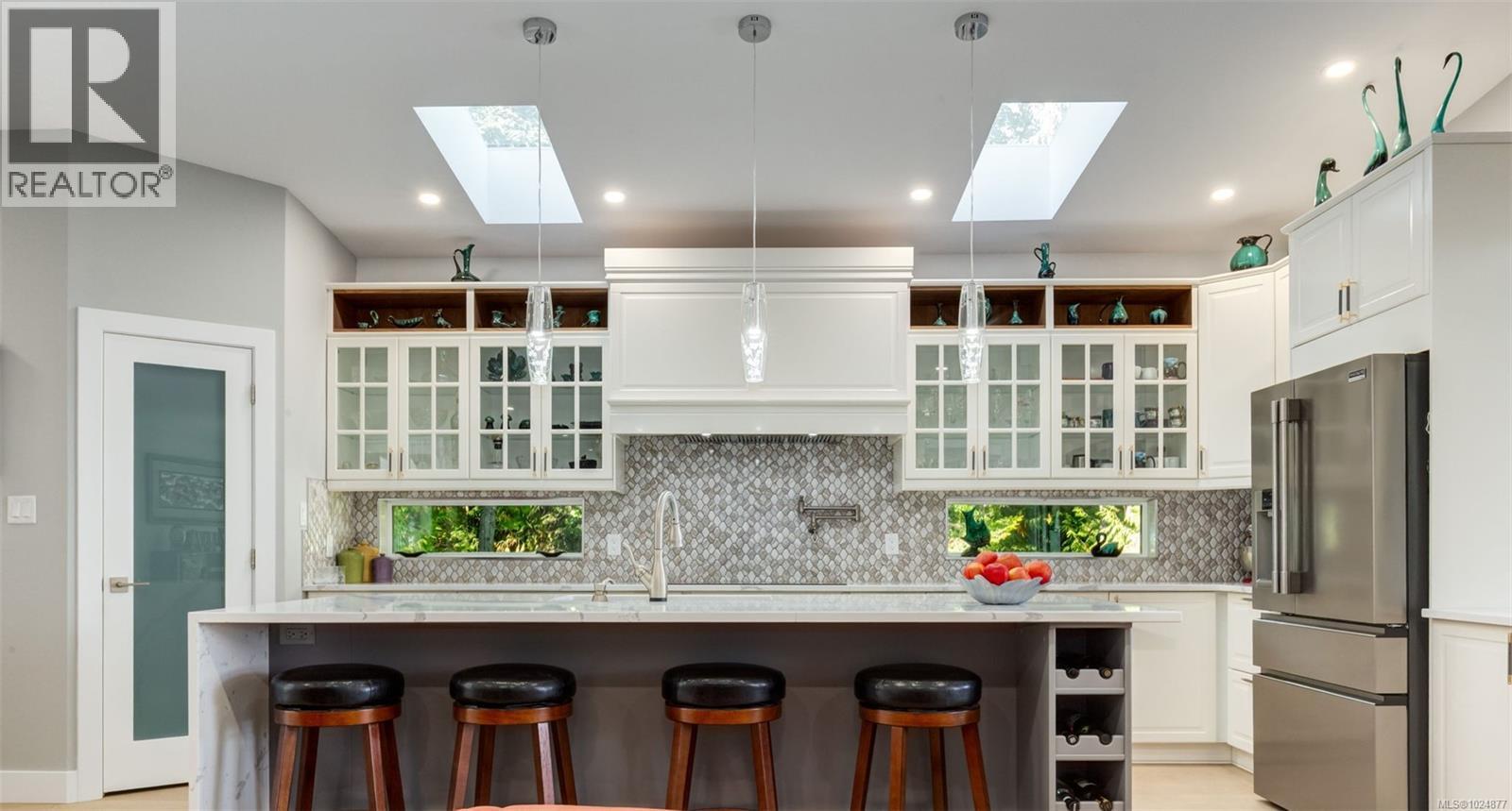 Created to celebrate life’s best moments and designed to take advantage of spectacular ocean views and tranquility of the forest, this custom-built 2023 beauty isn’t just a house; it’s a dream come true. With over 4,300 sq ft. this house is perfectly positioned near the heart of Chemainus , shops, theatre, seaside trails, hospital and schools. Striking the balance between luxury and functionality, it offers four bedrooms, and five bathrooms, a gym, an office, over 900 sqft of outdoor living space and a large garage with a workshop. Step into the main floor where coastal ocean views pour through a stunning wall of windows. The chef’s kitchen, with a large quartz island, is where meals become memories. The extensive fireplace is a focal point of this open concept space. The covered deck off the dining room offers the perfect spot for entertaining or to just listen to the birds in the morning. The primary suite, located on the main floor, offers comfort, privacy and a large balcony which greets you each morning like a warm embrace. Upstairs- a bonus room with a wet bar opens to a huge sundeck that sets the stage for laughter and connection. Downstairs space suited with a large rec room, two bedrooms, gym, kitchen and two bathrooms which can accommodate your guests or be easily transformed into a suit. Backyard is your oasis- with flower beds, a vegetable garden, a gazebo and a Japanese garden. Outside, RV parking, more parking spaces, and room for a pool Don’t just imagine it, come and fall in love (id:44393)