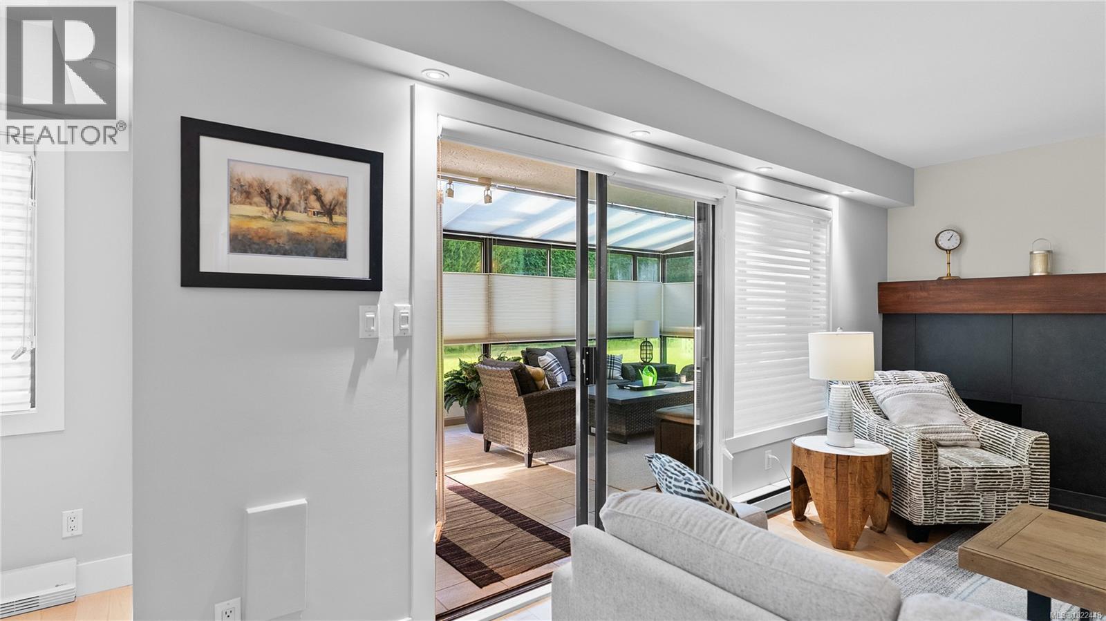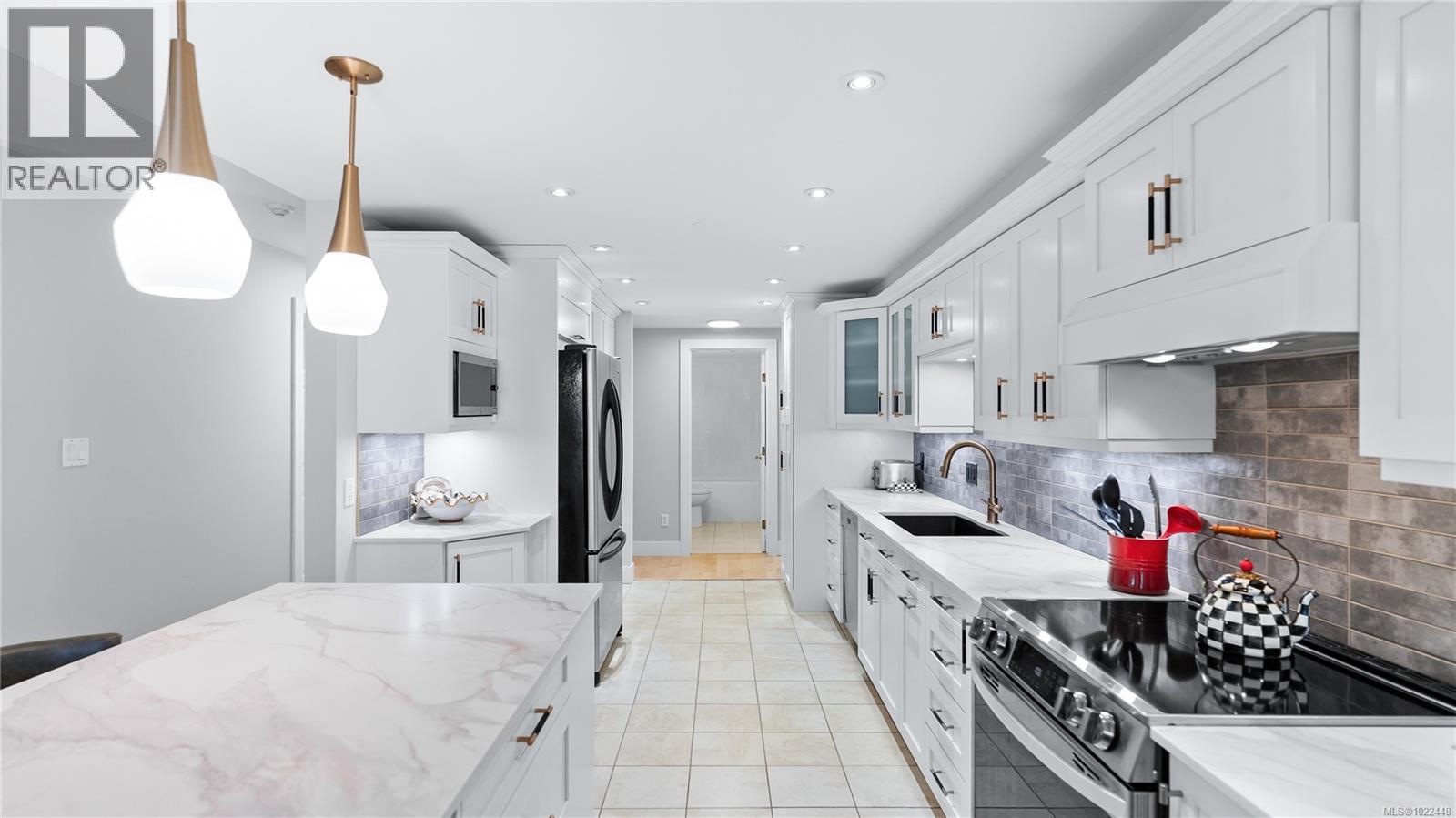 $703 MonthlyOPEN HOUSE SAT 12-1PM. Follow your dream home into the heart of Fairfield, where charm & modern convenience sit just steps from Dallas Rd waterfront, Cook St Village, Beacon Hill Park & downtown. Thoughtfully & comprehensively modernized in 2024, this 55+ residence feels more like a private home than a condo. Two solariums overlook mature hedges that frame every window. Refreshed with smooth ceilings, professional repaint, modern electrical finishes & updated trim+baseboards. Matte black+champagne bronze lighting & fixtures give the space a cohesive, elevated feel. At the centre of the home the kitchen balances style & function beautifully with custom-refinished cabinetry paired with Calcutta Gold quartz countertops, under-mount sink & striking backsplash. Upgraded lighting & stainless steel appliances, including a beverage fridge & induction range, are complemented by a generous island with seating; grounding the space & connecting the dining & living areas. The living space is anchored by a feature fireplace with custom shaker-style built-ins & opens directly to the 12x20 solarium, bringing in natural light & surrounding greenery. The solariums are standout features. Private & versatile, they feel like true extensions of the home. Both bedrooms are set apart from the main living areas with new Berber carpeting & custom built-in storage & the primary offering direct access to the second solarium. Both bathrooms have been fully reimagined with new fixtures, custom Italian tile work, updated lighting & the primary ensuite with heated floors. Offering over 1,500 sqft of living space with the comfort & privacy of house living & the ease of a professionally managed, low-maintenance lifestyle. Amenities include underground parking, storage locker, gym & sauna. Ideally located within walking distance to shops, cafés, parks & the ocean, this is a rare offering in a well-run building with a strong contingency fund. Experience a west coast lifestyle, book your showing today. (id:44393)