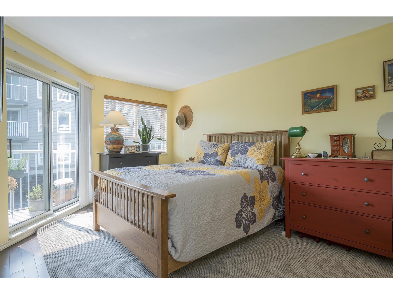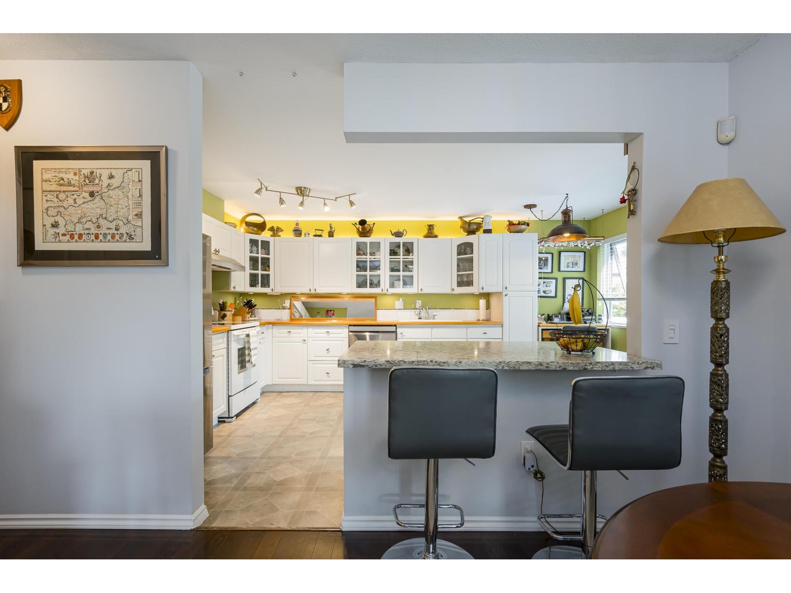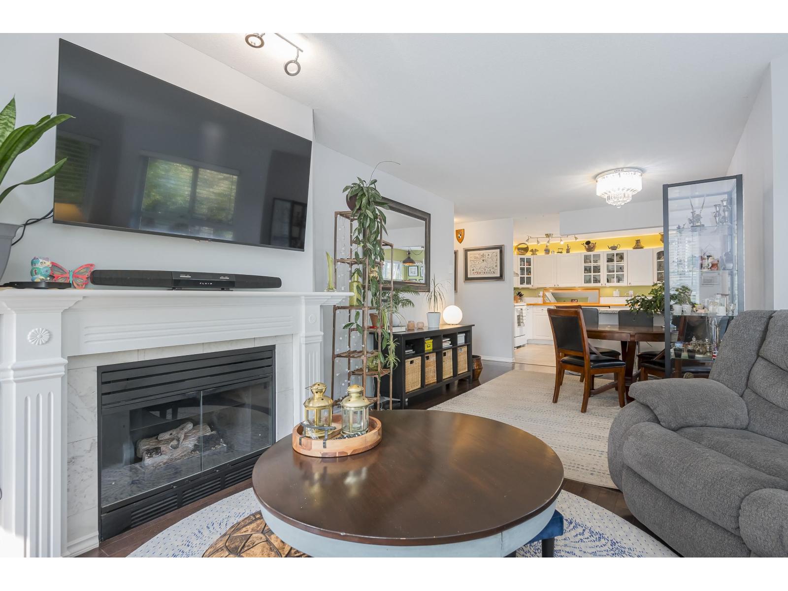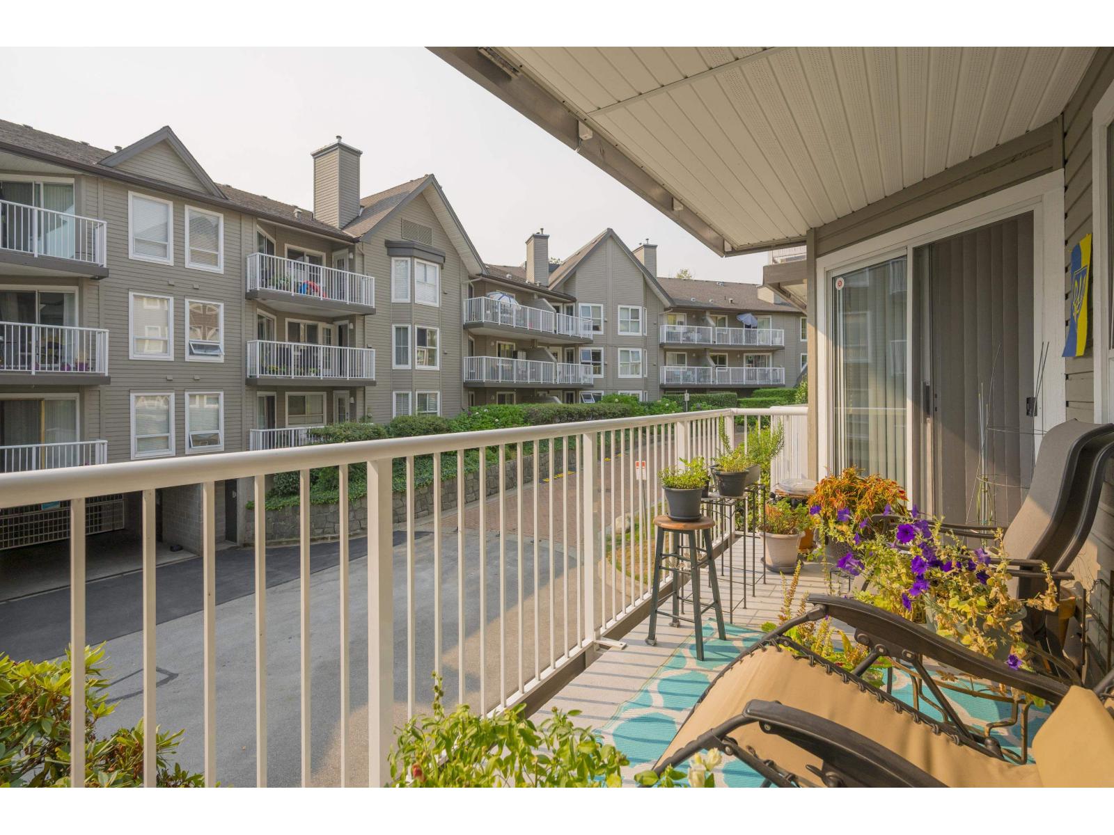 $573.13 MonthlyNOT YOUR AVERAGE CONDO!!! Rare 2 bedroom corner unit in the Fraser with fantastic natural light. One deck off living room measures 5'8x19'4 and another off the kitchen is the same size. Open kitchen concept with huge island overlooking the dining room. Eating area converted to office space and its great! Living room is spectacular with circular windows and cozy fireplace. Great sized second bedroom and beautiful Primary bedroom with access to your 5'8x19'4 covered deck! Walk-in closet and lovely ensuite! This place feels like a home with foyer and hallway separating the living space. Lots of storage. 2 parking spots side X side and close to the door. Pro active strata, Fitness facility, sauna, visitor parking 2 pets with no size restrictions. Storage locker down the hall! Nothing to do! (id:44393)