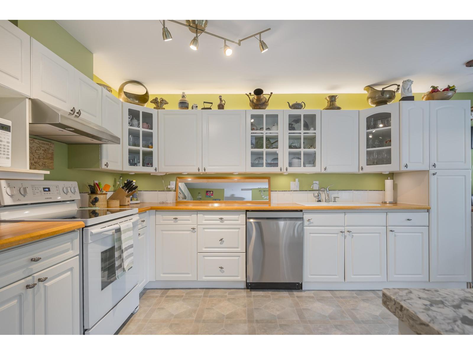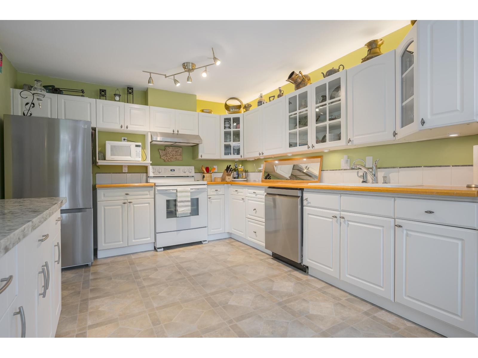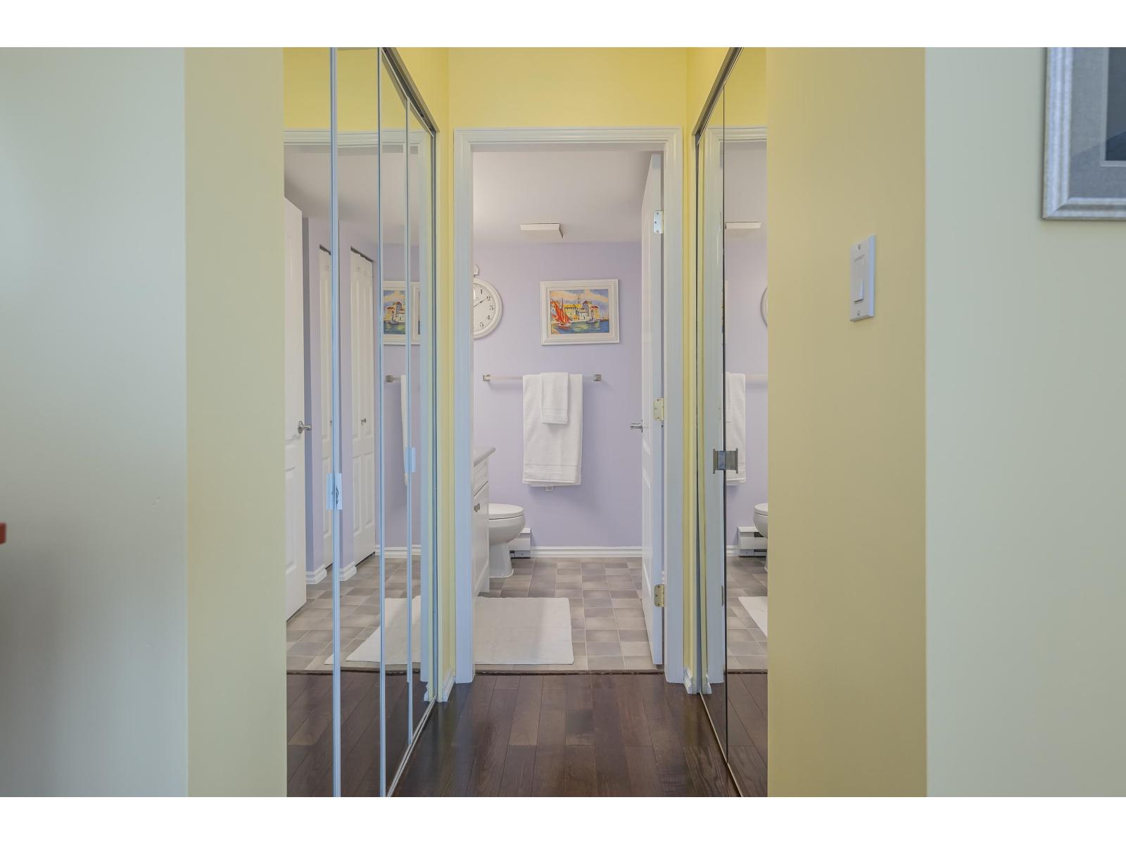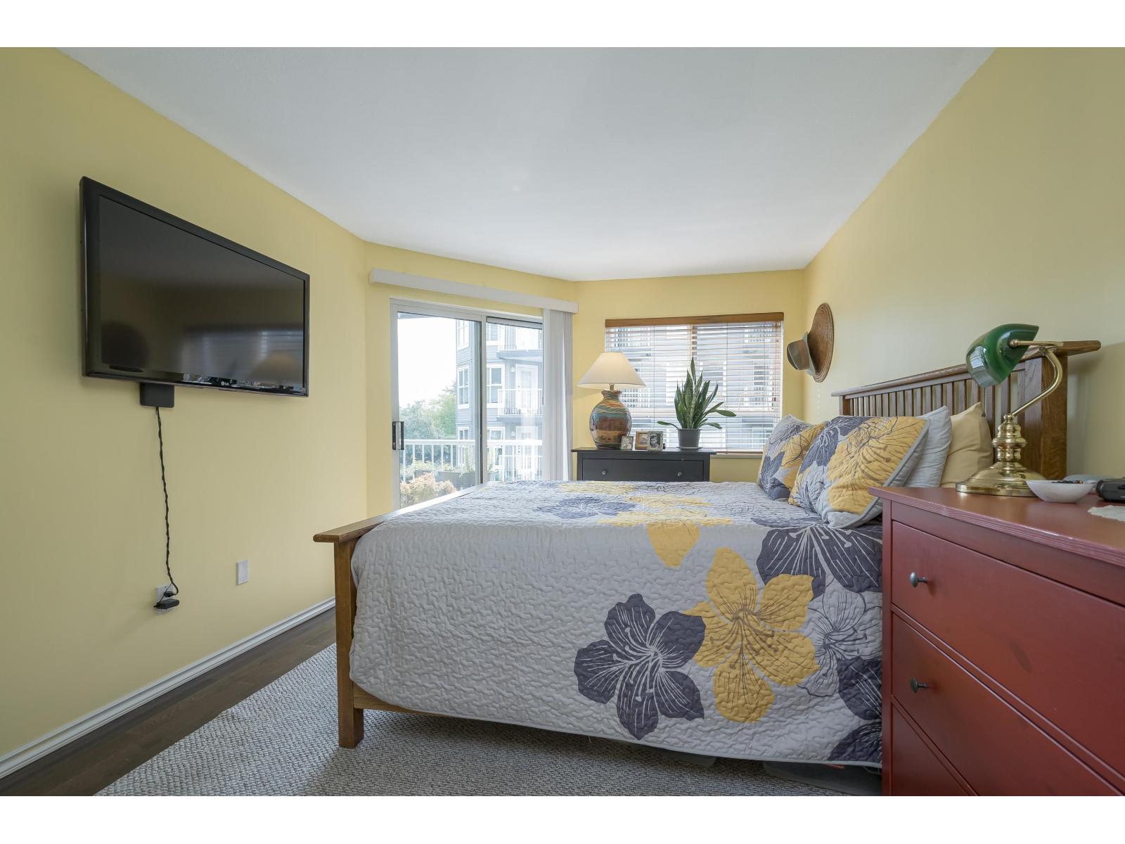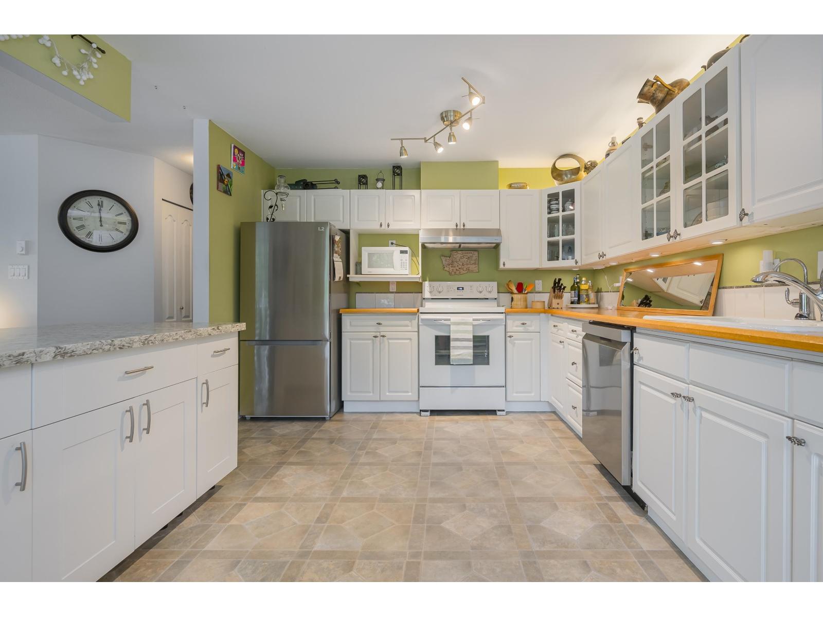 $573.13 MonthlyNOT YOUR AVERAGE CONDO!!! Rare 2 bedroom corner unit in the Fraser with fantastic natural light. One deck off living room measures 5'8x19'4 and another off the kitchen is the same size. Open kitchen concept with huge island overlooking the dining room. Eating area converted to office space and its great! Living room is spectacular with circular windows and cozy fireplace. Great sized second bedroom and beautiful Primary bedroom with access to your 5'8x19'4 covered deck! Walk-in closet and lovely ensuite! This place feels like a home with foyer and hallway separating the living space. Lots of storage. 2 parking spots side X side and close to the door. Pro active strata, Fitness facility, sauna, visitor parking 2 pets with no size restrictions. Storage locker down the hall! Nothing to do! (id:44393)