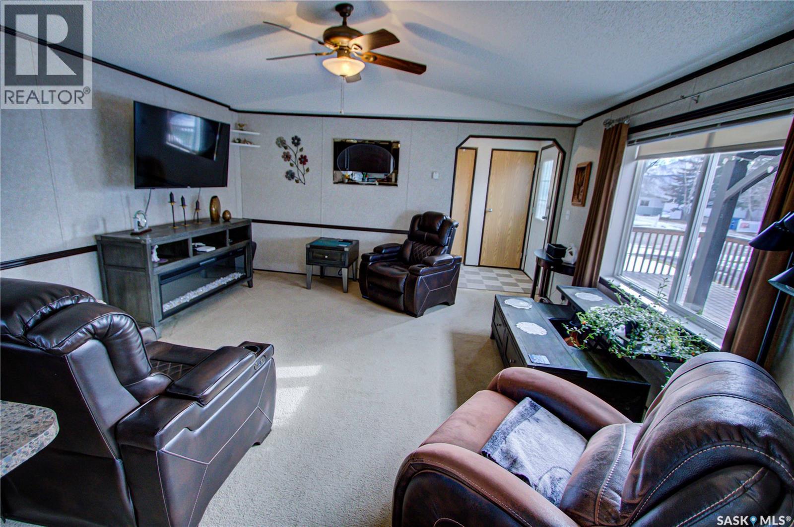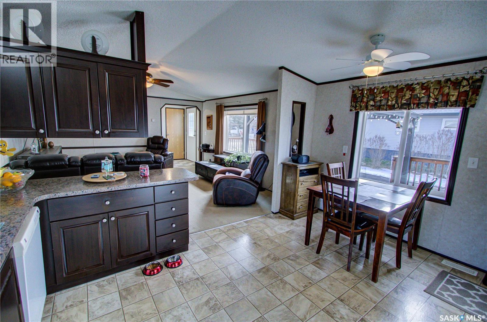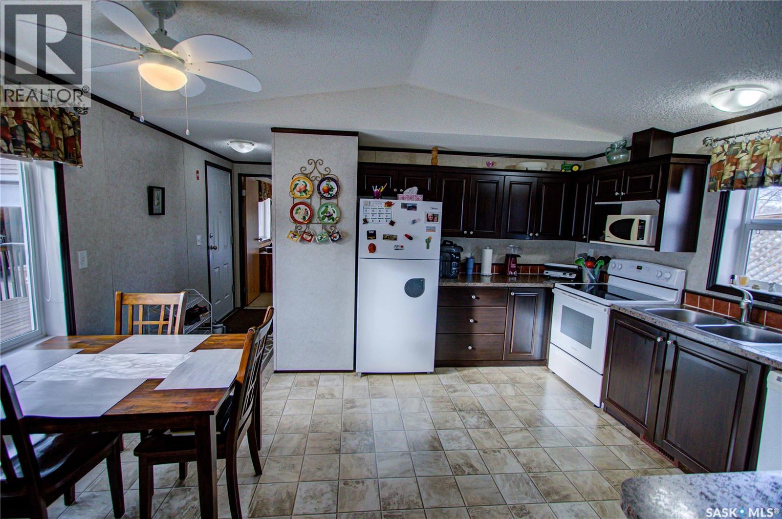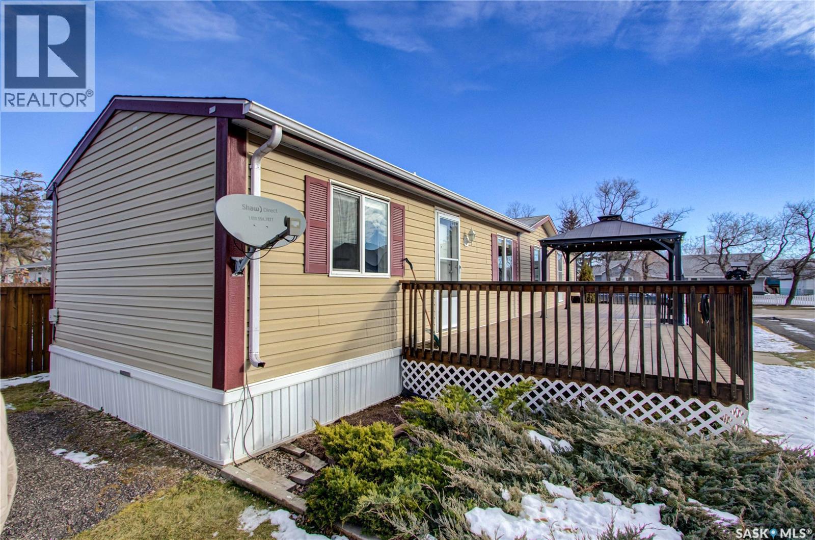 Welcome to Kinistino! This well-kept 970 sq ft modular home (built in 2010) offers affordable, comfortable living in a quiet and friendly community. With 2 bedrooms and 2 bathrooms, this home is an ideal fit for first-time buyers, retirees, or anyone seeking low-maintenance living on a peaceful dead-end street. Step inside to find a bright, clean, and meticulously maintained interior. Fridge and stove new in 2024, dishwasher and dryer in 2020. The functional layout provides great flow, ample natural light, and comfortable living spaces. Outside, enjoy summer evenings on the large west-facing 500 sq ft deck, complete with a gazebo—perfect for relaxing and entertaining. A 588 sq ft Quonset-style detached garage provides sheltered parking or a spacious workshop area. The paved driveway offers plenty of additional parking, while back alley access allows room to park an RV, boat, or other toys with ease. Located in the quiet community of Kinistino, known for its agricultural roots and home to several farm equipment dealerships, this town offers excellent local amenities including a K–12 school, gas station, grocery store, nursing home, health clinic, hockey rink, and more. Conveniently situated on Highway 3 between Melfort and Prince Albert, commuting is simple. If you're looking for comfort, convenience, and small-town charm, this property is ready to welcome you home. (id:44393)