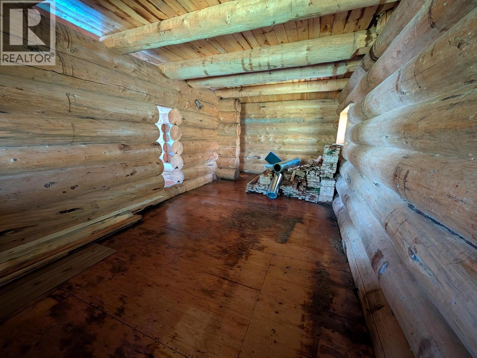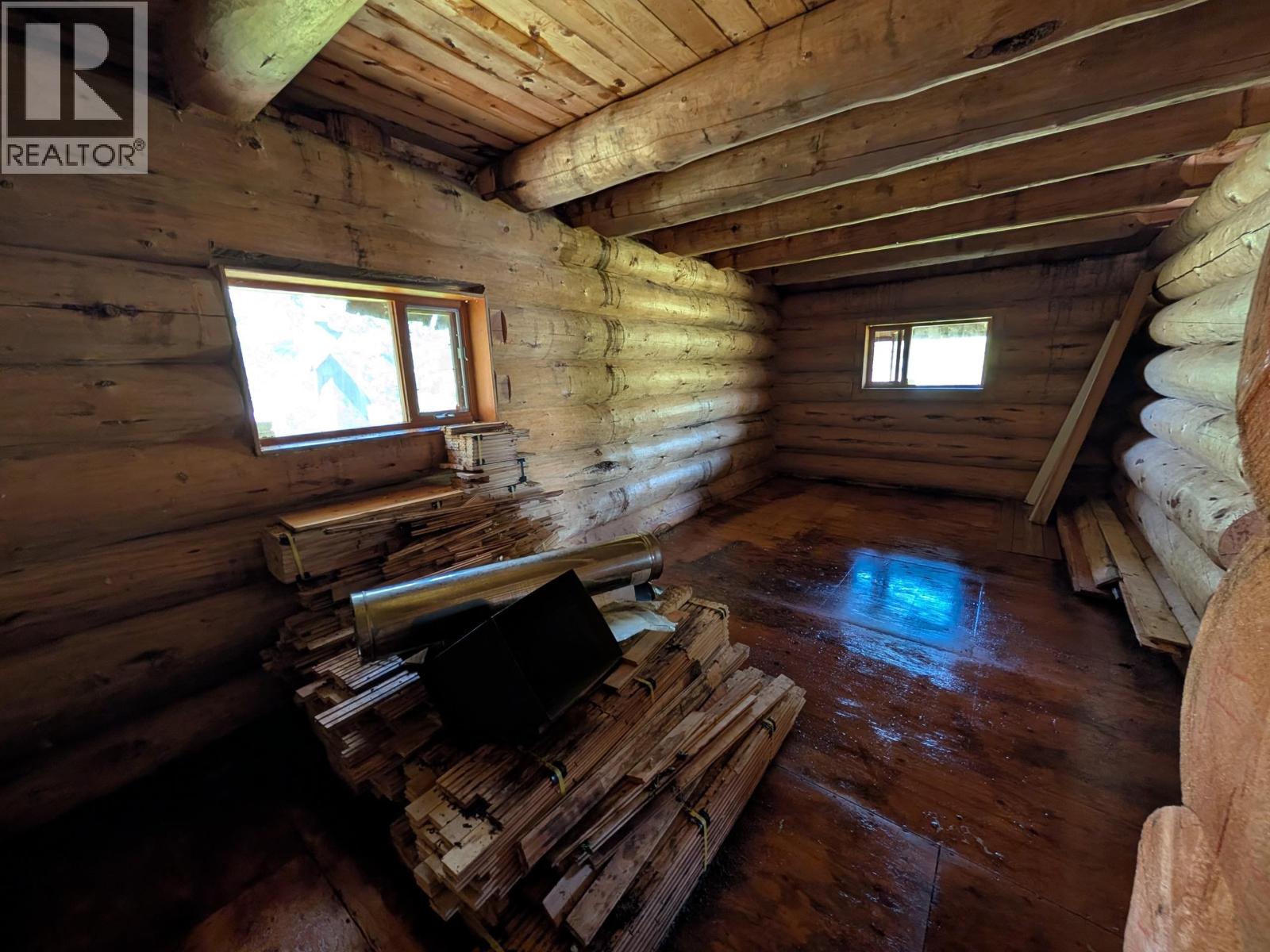 Truly spectacular location at "4 Mile" on Babine Lake. This site is up for sale for the first time and the seller had a professionally built log cabin placed here approximately 18 years ago and hasn't been back to finish it. The pack rats have come so some cleaning and repair is needed but overall, the structure seems in good shape. The logs to build this cabin are huge! The vaulted ceiling and open loft add volume and character to this cabin. The kitchen cabinets are sitting on the floor ready to be installed and there is hardwood flooring in the bedroom that most likely can still be used for the main flooring. The cabin has a green metal roof and it's ready for the woodstove chimney to go in. The concrete Sono tubes have kept the cabin and free from rot. Make your move today! (id:44393)