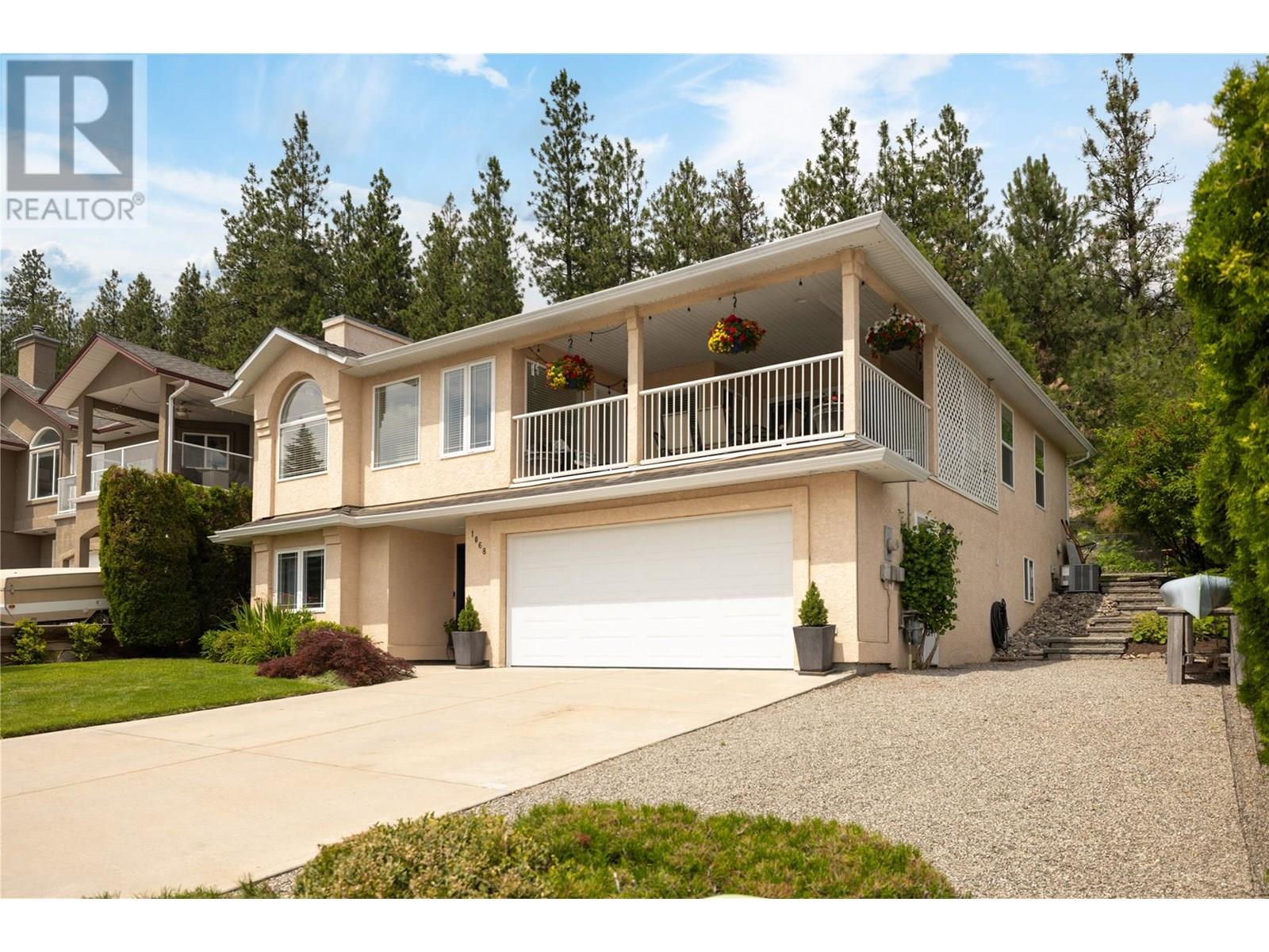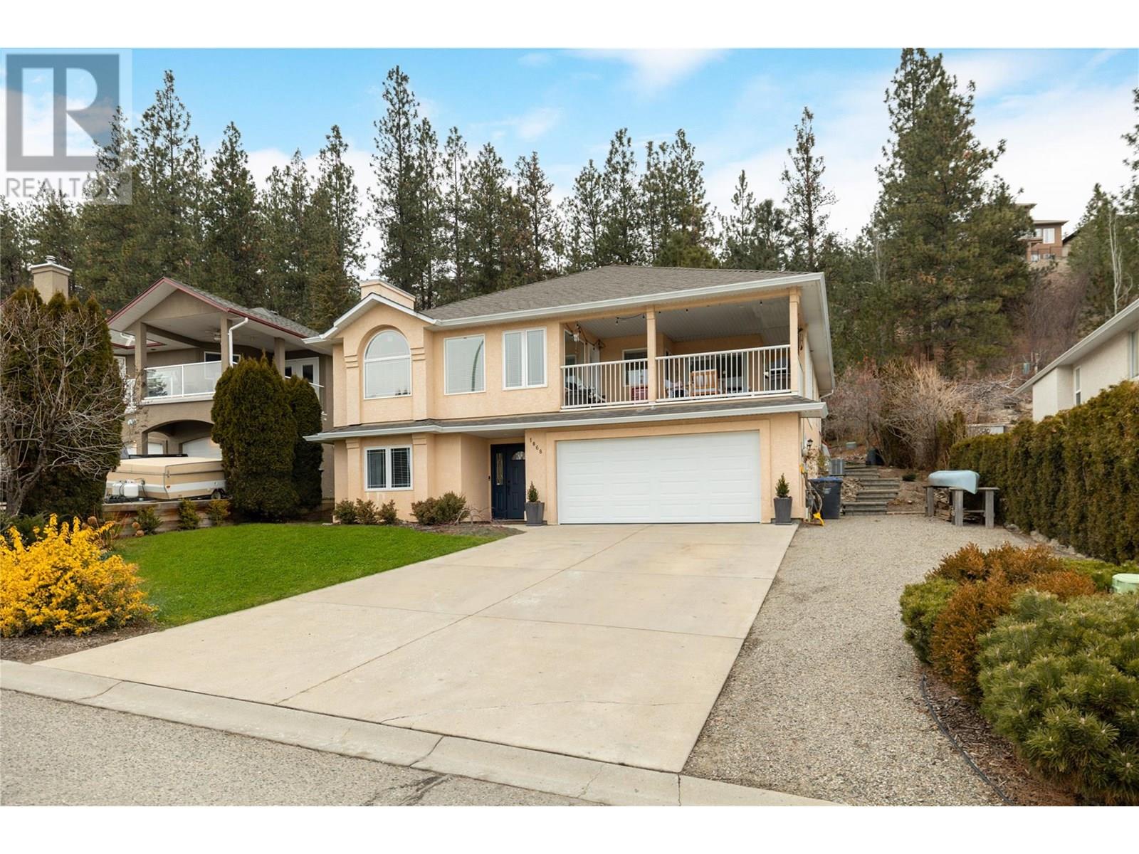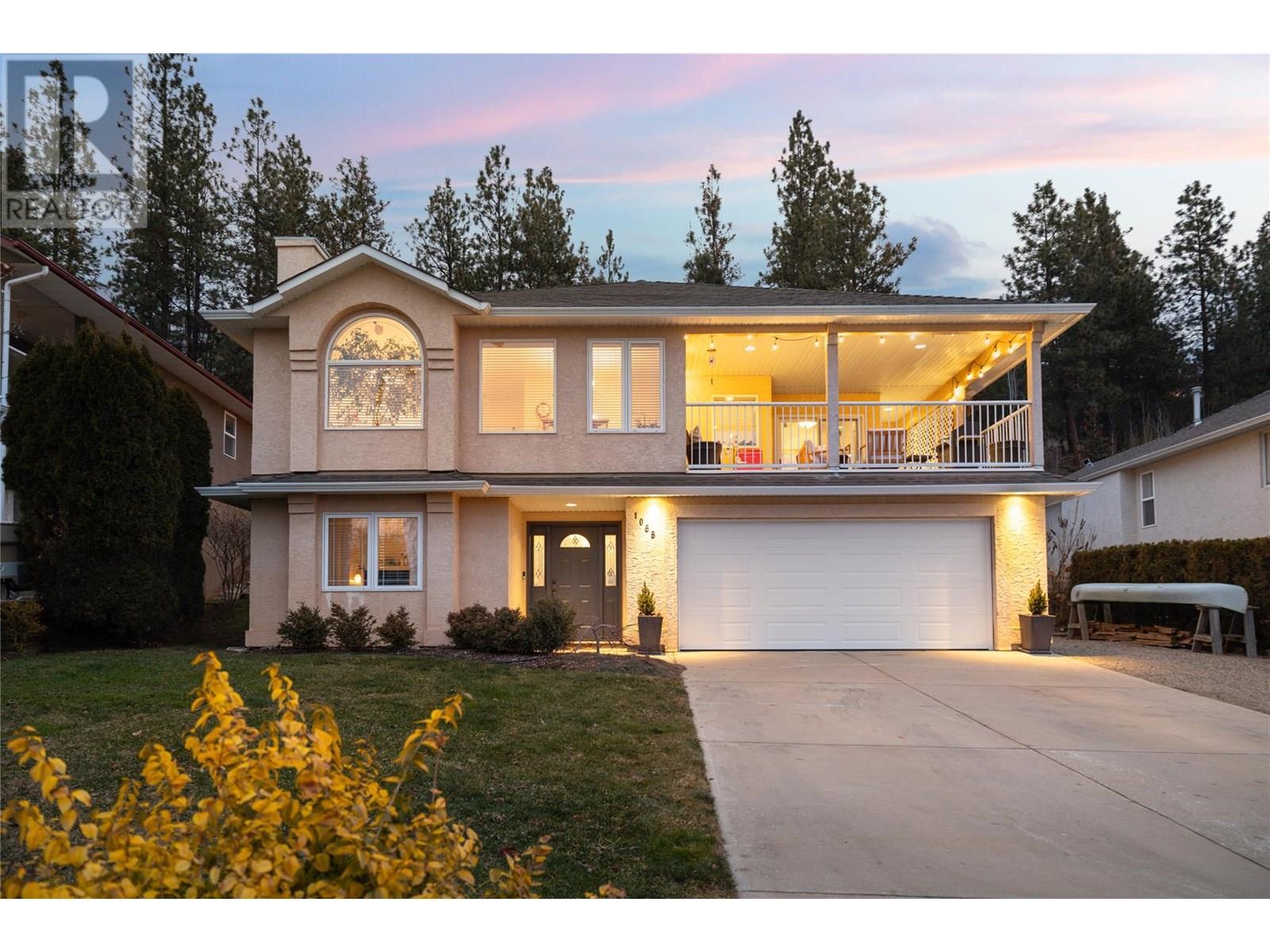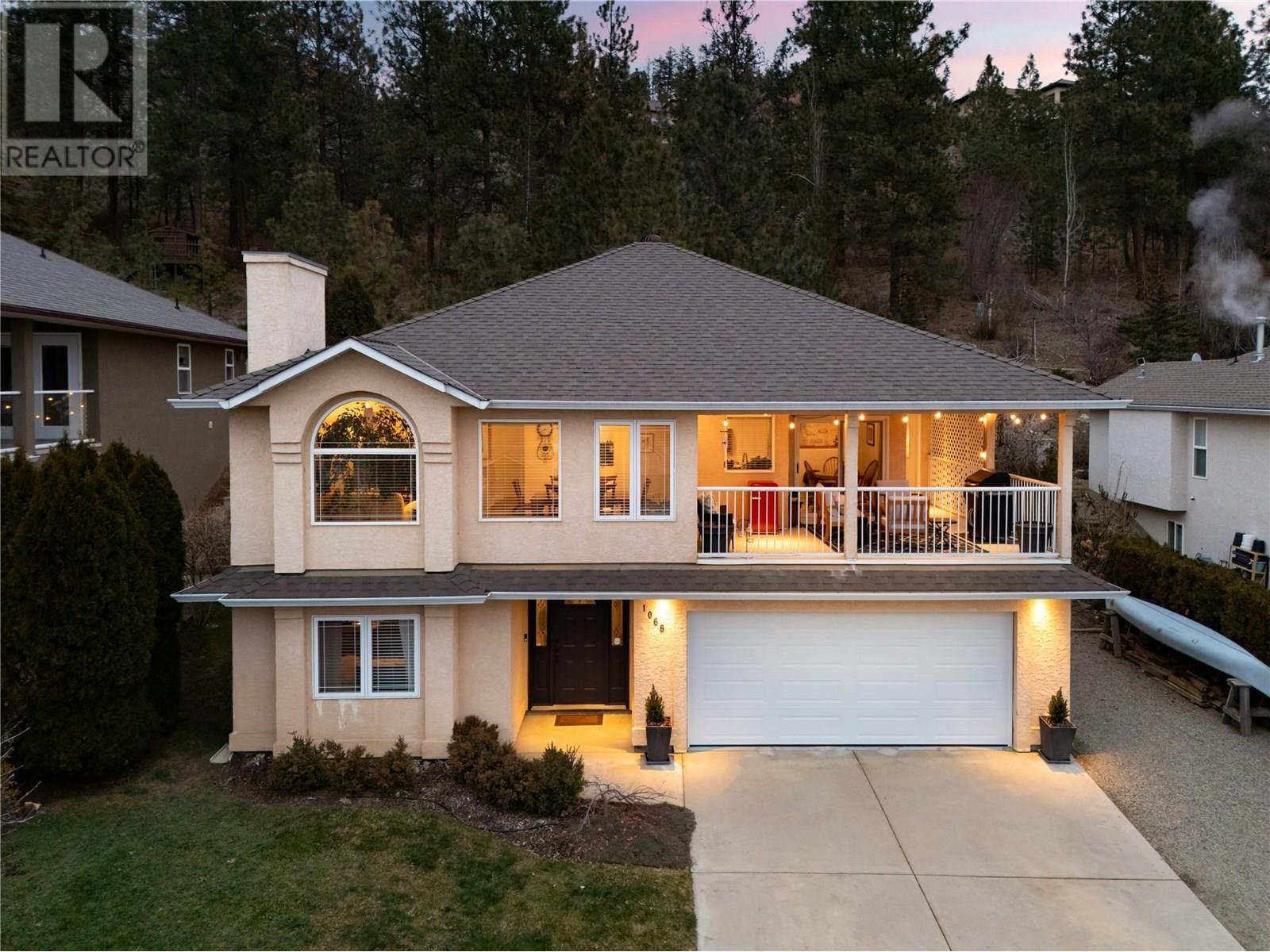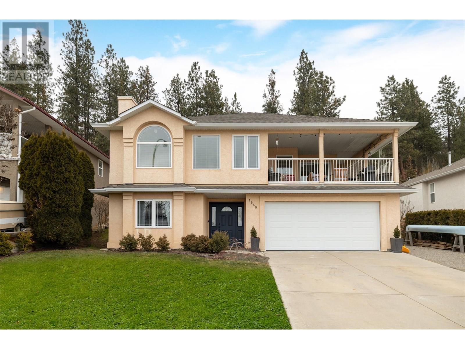 Welcome to 1068 Caledonia Way! This inviting, well maintained 4-bedroom, 3-bathroom home blends style, comfort, and thoughtful updates throughout. The family-friendly layout features 3 bedrooms on the main floor, perfect for growing families. The spacious kitchen is designed to maximize stunning vista views and opens into a cozy breakfast nook. Sliding doors lead to a desirable covered view deck—ideal for outdoor dining and relaxation. The newer furnace and A/C unit keeping the home comfortable year-round, while the gas fireplace adds warmth and ambiance. Downstairs, a private family room offers the perfect retreat for movie nights or playtime. The home is complemented by a large garage with plenty of storage space. As well, updated PEX plumbing and a new hot water tank, etc., ensure reliable, modern systems for years to come. The well kept, landscaped yard provides a wonderful space for entertaining or pets, and ample parking—including a 2-car garage and RV space—means there’s room for all your vehicles. Plus, a roof replaced in 2018 adds further value and peace of mind. Located in the desirable West Kelowna Estates, this move-in ready home is just minutes from hiking trails, parks, schools, and only 12 minutes from downtown Kelowna. Book your showing today and experience everything this exceptional home has to offer! (id:44393)