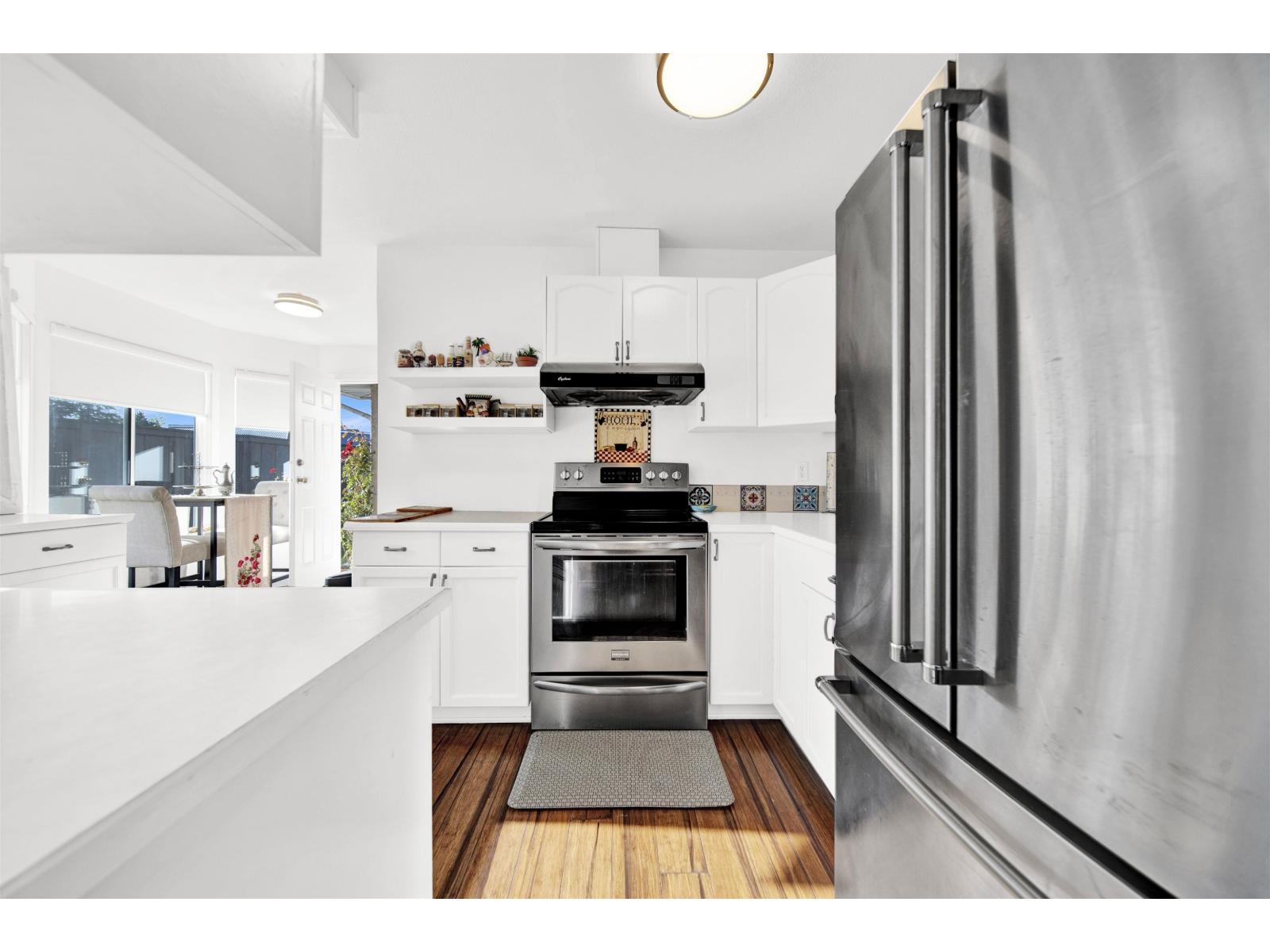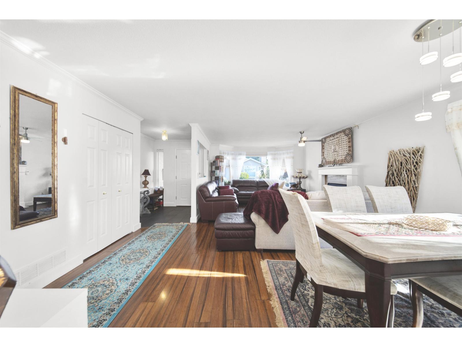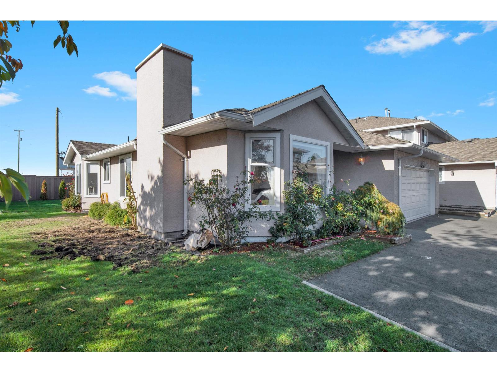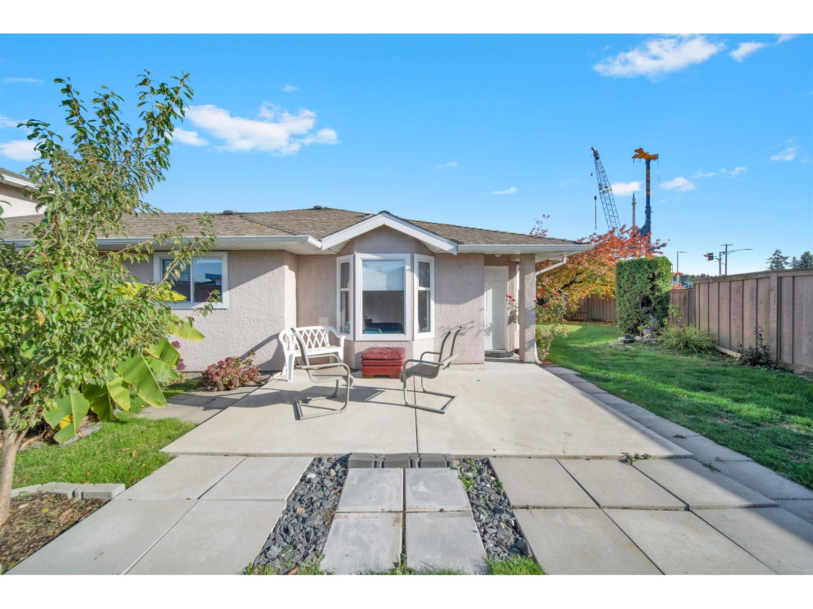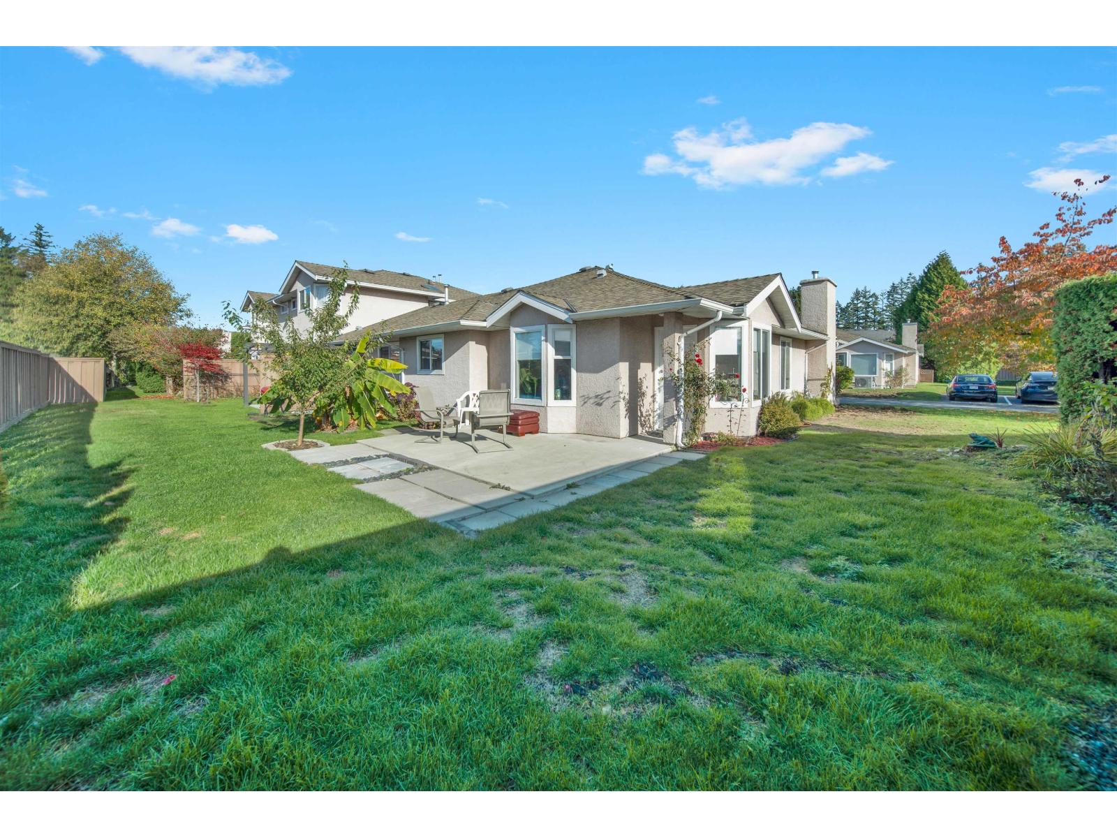 $355.40 MonthlyIf you prefer a home without stairs, your search ends here. Located in the centrally situated, gated community of Avondale, this one-level ranch-style home offers the feel of a detached house. It boasts a spacious living room with a cozy natural gas fireplace, a family-size dining area, and a chef's kitchen. The Master bedroom includes a walk-in closet and a deluxe ensuite bath, while a generous two-bedroom leads to a private west-facing backyard. Additional features include a laundry room, side-by-side double garage, RV parking, and access to a clubhouse. The home is conveniently located within walking distance to Save On Foods, Safeway, numerous restaurants, and a future Skytrain station. Book your showing now. (id:44393)