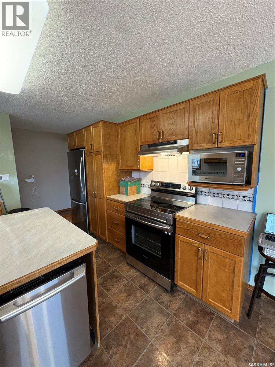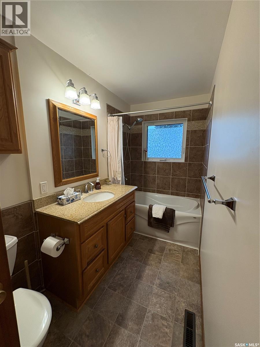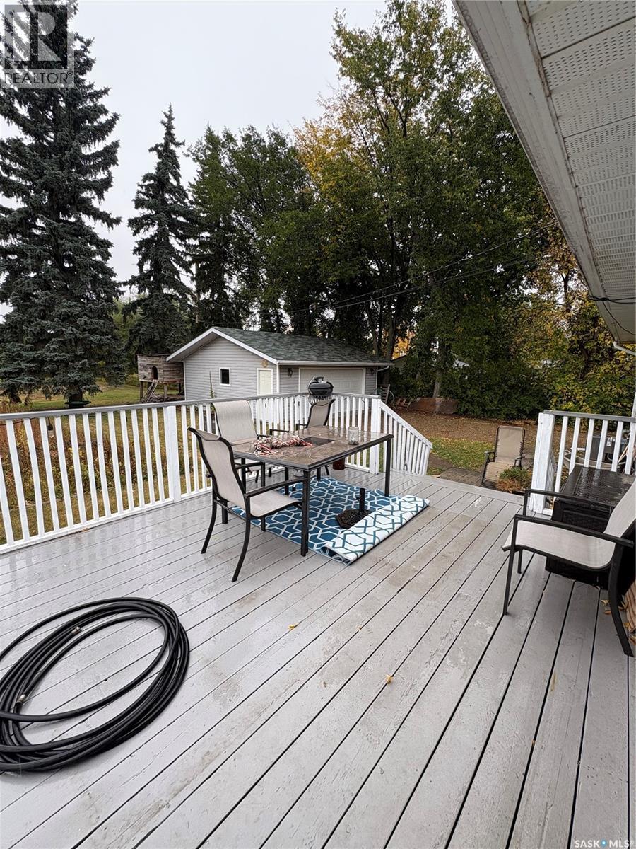 Nestled in the quiet and welcoming community of Nokomis, this charming family home sits on a generous 9,000 sq ft lot and offers 1,136 sq ft of functional living space - perfect for families seeking comfort and small-town serenity. Step inside to a spacious living room featuring a large south-facing window that fills the space with natural light, and laminate flooring throughout for a clean, modern feel. The dining area comfortably fits your family table and features patio doors that lead to a large deck - ideal for morning coffee or summer barbecues. The kitchen is a true highlight, offering plenty of maple cabinetry, stainless steel appliances, and a handy island for extra prep space. Down the hall, you’ll find 3 good-sized bedrooms and a 4pc bathroom with a deep soaker tub - your personal retreat after a long day. The basement offers even more space with a cozy rec room, two additional bedrooms, a three-piece bath, and a spacious laundry/utility room with extra storage, plus a cold room for your preserves. The basement is nearly complete, just add your choice of flooring to make it your own! Outside, enjoy a 22x24 detached garage, a long driveway with space for your vehicles or RV, and a well-treed yard that backs onto the golf course. There’s also a garden area, firepit, and a playhouse for the kids - everything you need for family fun and relaxation. Nokomis offers the best of small-town living with a school, campground, golf course, museum, and parks all within reach. Located just 35 minutes from Watrous and the Manitou Springs Mineral Spa, and conveniently halfway between Regina and Saskatoon, this community makes for an easy commute in either direction. This wonderful home is ready for its new owners! (id:44393)