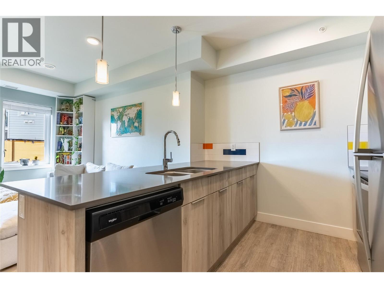 $283.57 MonthlyWelcome to The Colours at Spirit Square, where Unit 311 stands out as a meticulously maintained one-owner residence that is now available for its next occupant. This bright and spacious one-bedroom plus den home offers a layout designed with both comfort and efficiency in mind. The main living area flows naturally into the kitchen and dining space, creating a welcoming atmosphere that is perfect for both everyday living and entertaining. The kitchen features stainless steel Whirlpool appliances, modern cabinetry, and custom backsplash accents, while the living room is enhanced with laminate flooring and tasteful feature wall touches that bring added warmth and style. The bedroom provides a quiet retreat, while the well-proportioned den offers excellent flexibility as a home office, hobby area, or guest space. Additional highlights include in-suite laundry and a well-planned floor design that makes the home feel larger than its square footage suggests. Residents of The Colours enjoy access to a private fitness center, secure bike storage, and dedicated parking. The location is ideal, set just off the lively Tranquille corridor with its variety of restaurants, coffee shops, services, and shopping, as well as McDonald Park only a block away. With pets and rentals permitted, this home is appealing to both homeowners and investors seeking a reliable opportunity. Move-in ready and carefully cared for, Unit 311 delivers exceptional value in a vibrant, convenient neighborhood. (id:44393)