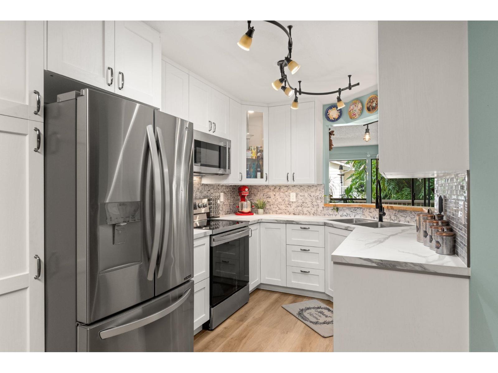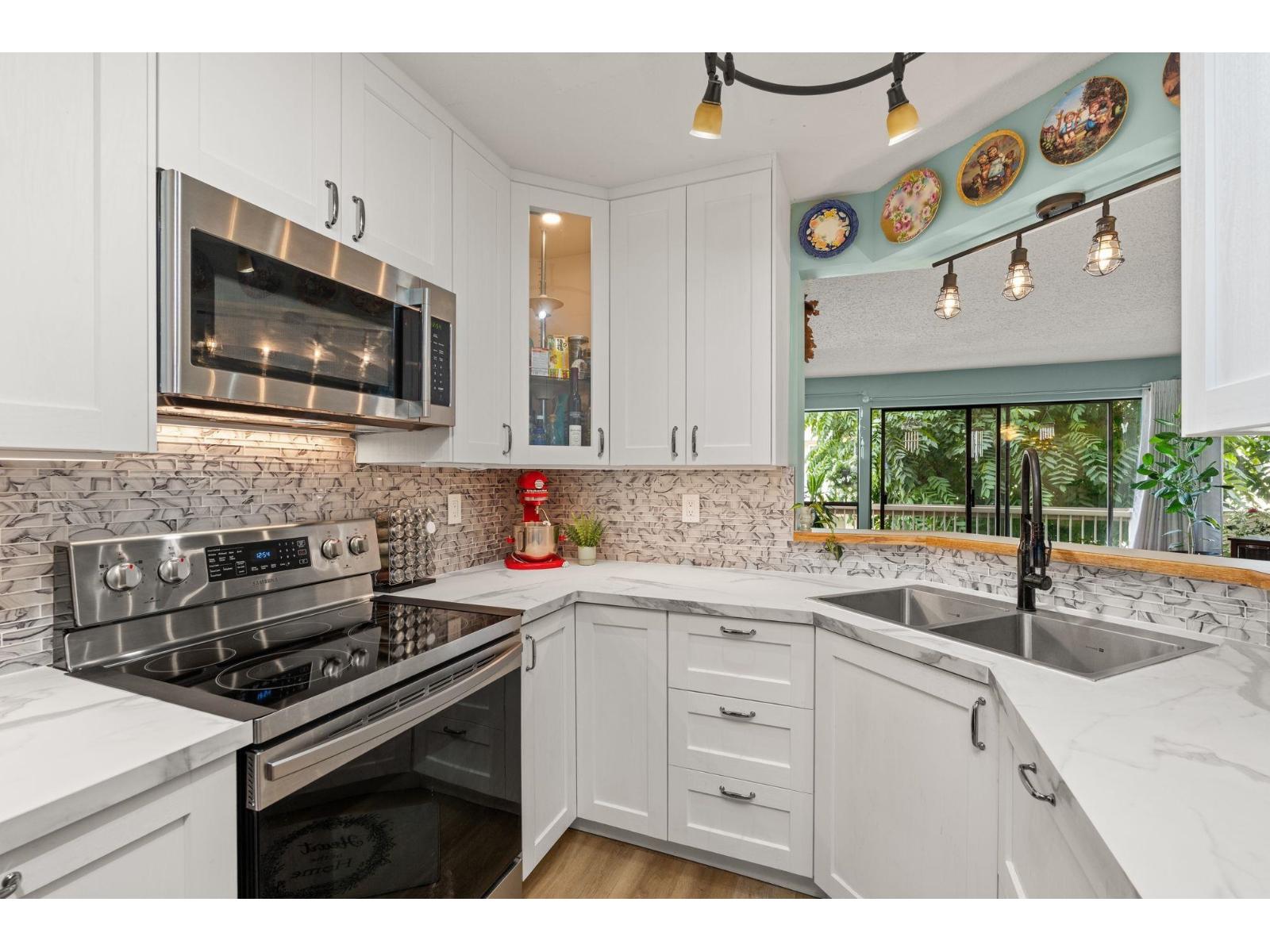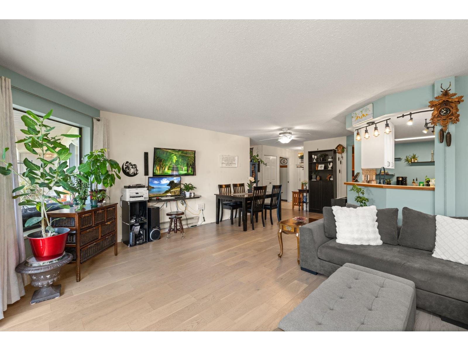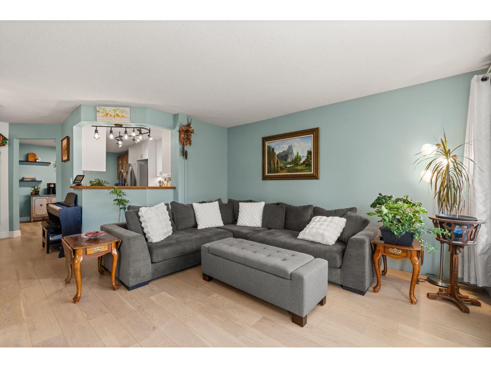 $530 MonthlyWelcome to this spacious 2 bed, 2 bath CORNER unit condo with 1,283' of living space in a beautifully cared-for 55+ building in central Abbotsford. This home has been thoughtfully updated with many RENO's including: NEW KITCHEN CABINETS, glass backsplash, UPDATED engineered flooring in the living areas and bedrooms, vinyl in the kitchen and bathrooms, new toilets, one new vanity, and updated baseboards. Enjoy in-suite laundry, his & her closets, a large patio, private storage locker, and secure underground parking. The building, built in 1988, has been well maintained and offers great amenities including a guest suite, workshop, and amenities room. Bright, inviting layout, close to Seven Oaks Mall, Transit Hub, Mill Lake park, and on the quieter NORTH side of the building!!! (id:44393)
