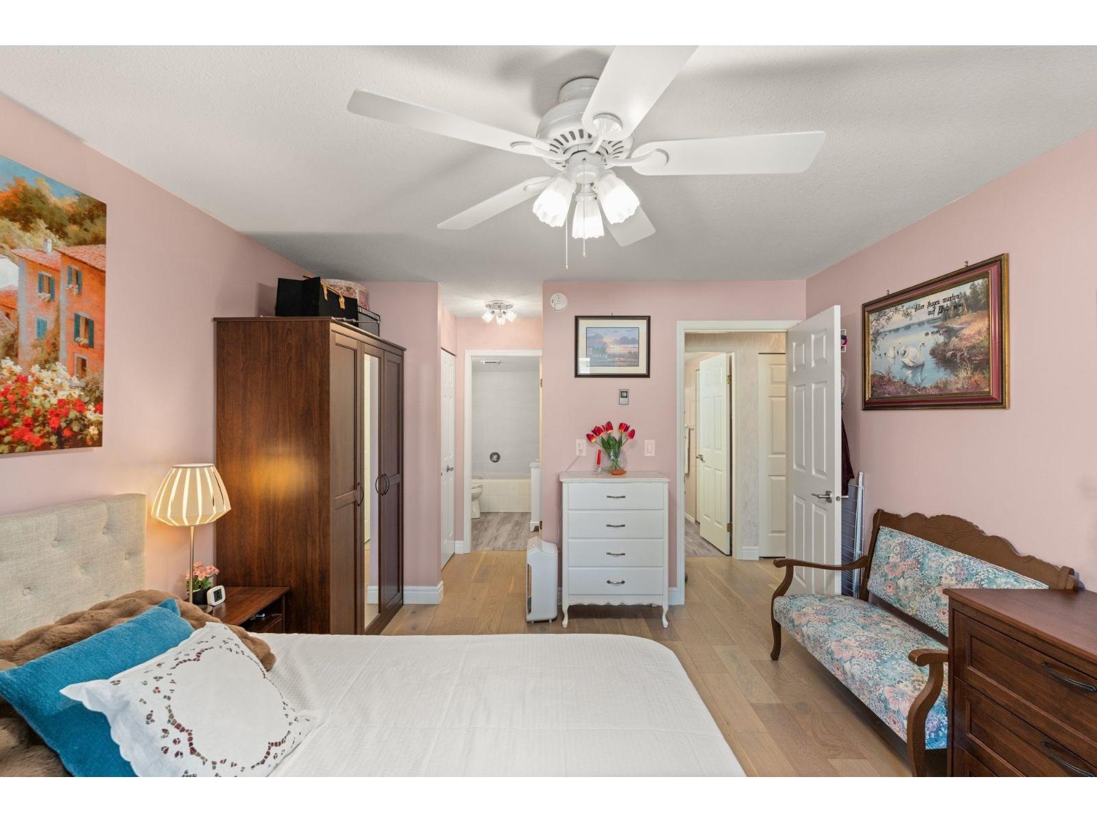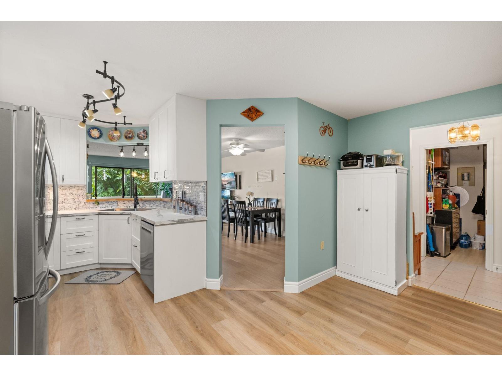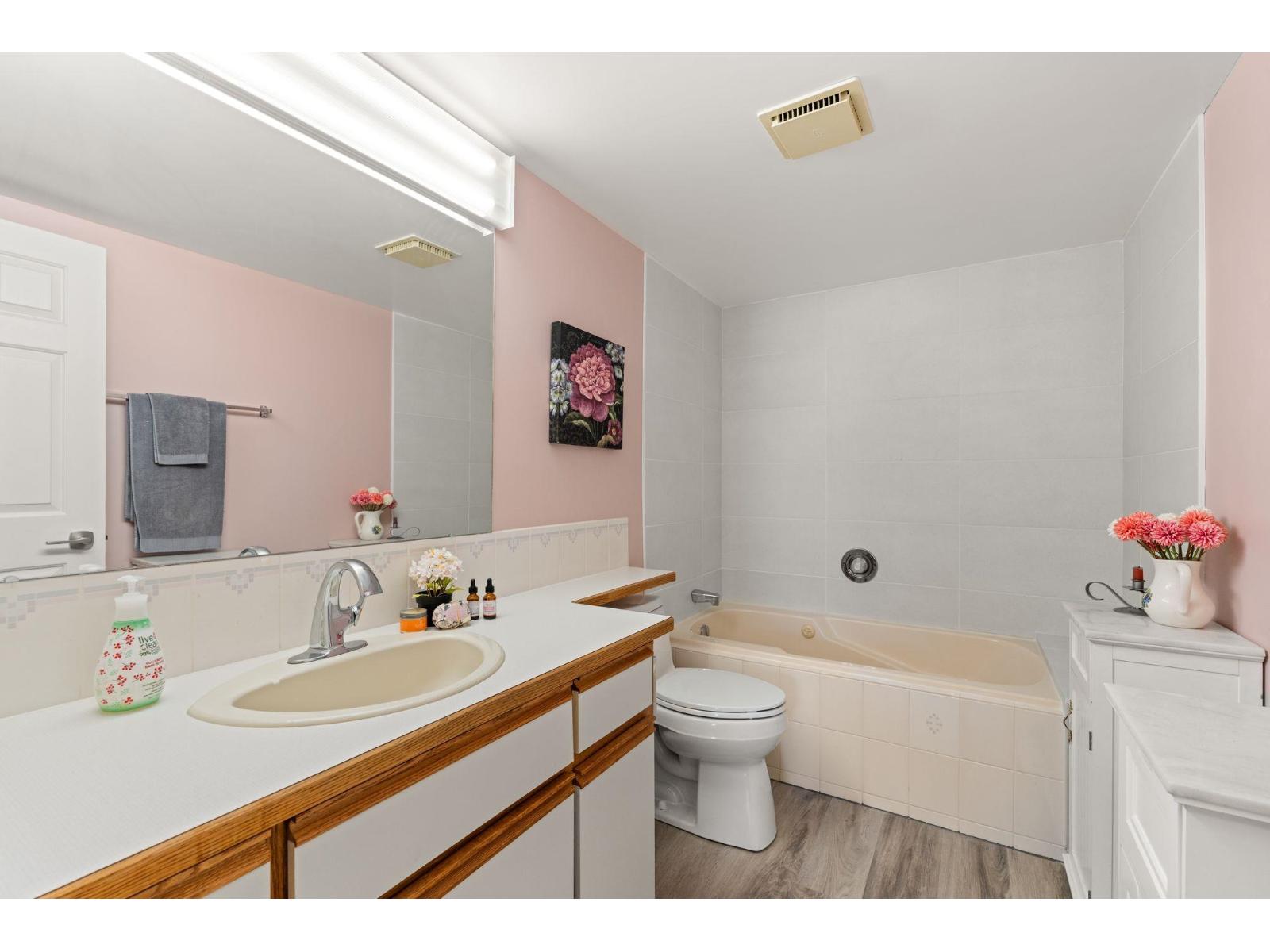 $530 MonthlyWelcome to this spacious 2 bed, 2 bath CORNER unit condo with 1,283' of living space in a beautifully cared-for 55+ building in central Abbotsford. This home has been thoughtfully updated with many RENO's including: NEW KITCHEN CABINETS, glass backsplash, UPDATED engineered flooring in the living areas and bedrooms, vinyl in the kitchen and bathrooms, new toilets, one new vanity, and updated baseboards. Enjoy in-suite laundry, his & her closets, a large patio, private storage locker, and secure underground parking. The building, built in 1988, has been well maintained and offers great amenities including a guest suite, workshop, and amenities room. Bright, inviting layout, close to Seven Oaks Mall, Transit Hub, Mill Lake park, and on the quieter NORTH side of the building!!! (id:44393)