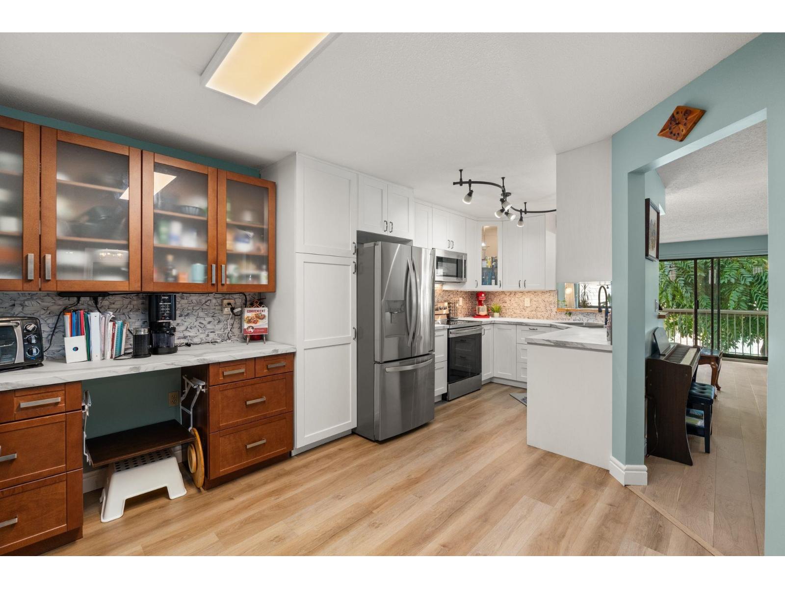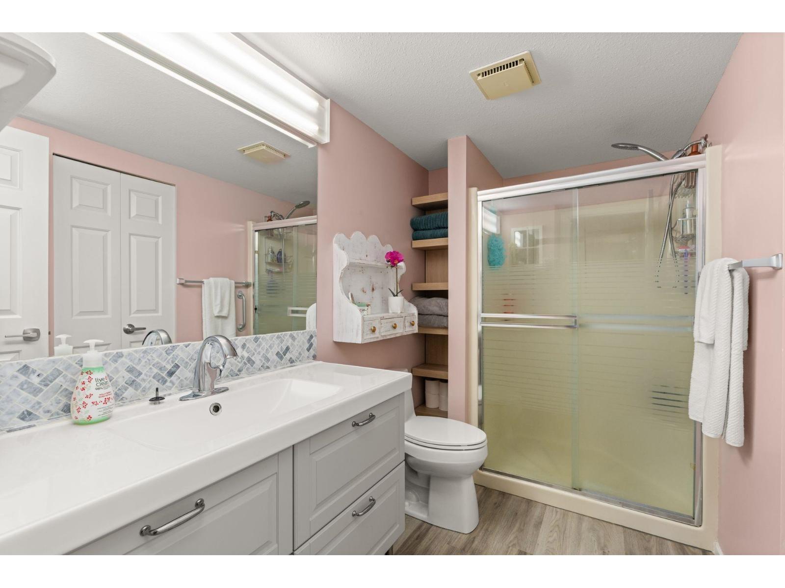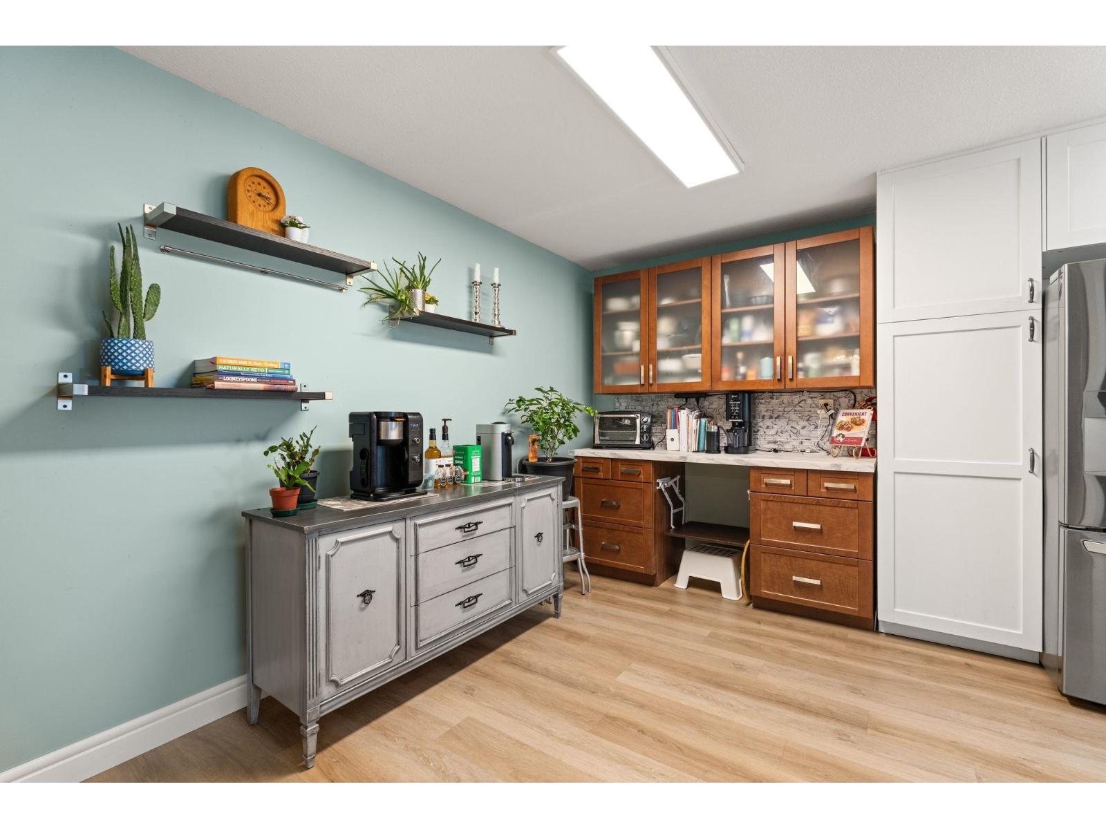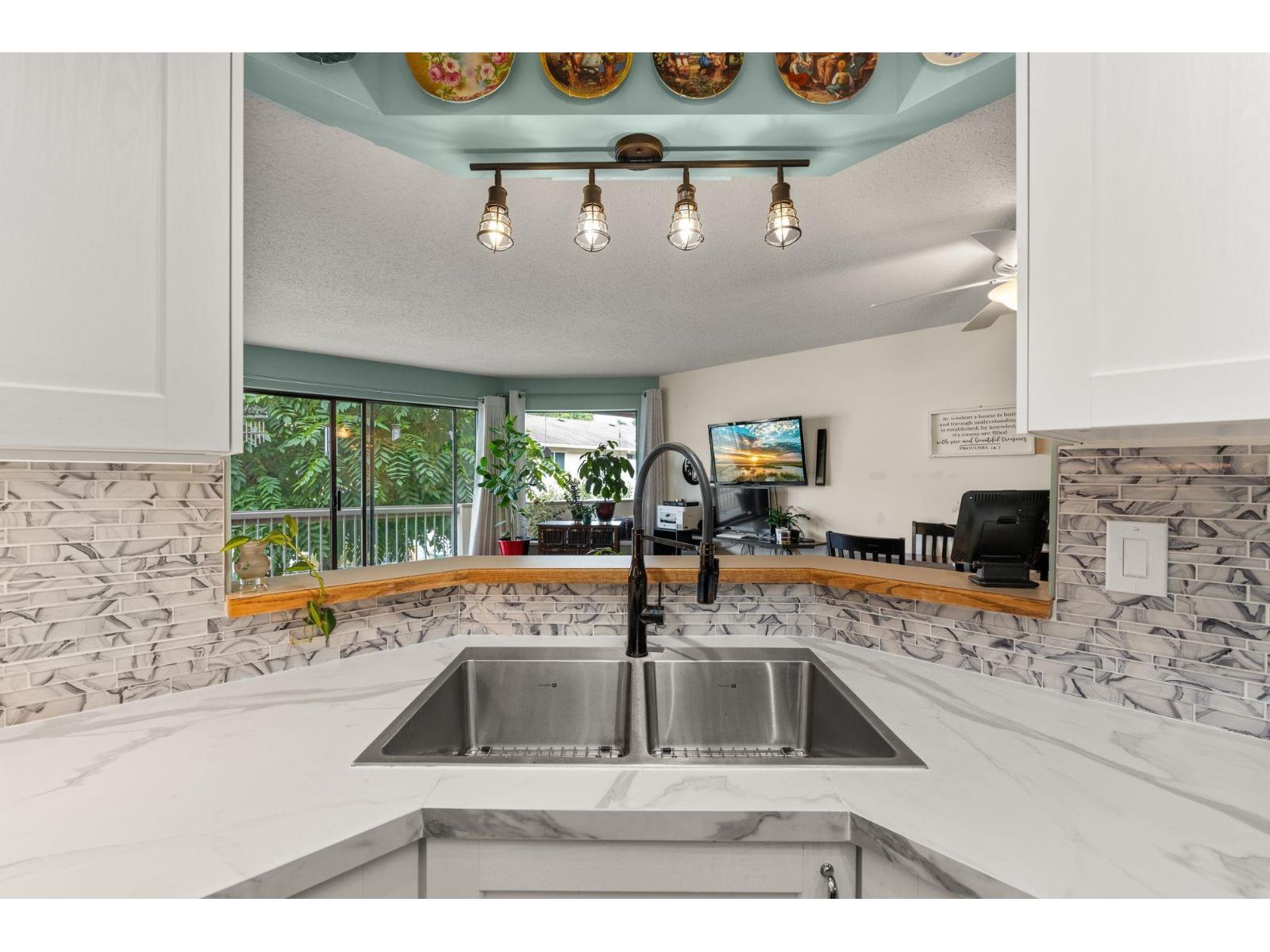 $530 MonthlyWelcome to this spacious 2 bed, 2 bath CORNER unit condo with 1,283' of living space in a beautifully cared-for 55+ building in central Abbotsford. This home has been thoughtfully updated with many RENO's including: NEW KITCHEN CABINETS, glass backsplash, UPDATED engineered flooring in the living areas and bedrooms, vinyl in the kitchen and bathrooms, new toilets, one new vanity, and updated baseboards. Enjoy in-suite laundry, his & her closets, a large patio, private storage locker, and secure underground parking. The building, built in 1988, has been well maintained and offers great amenities including a guest suite, workshop, and amenities room. Bright, inviting layout, close to Seven Oaks Mall, Transit Hub, Mill Lake park, and on the quieter NORTH side of the building!!! (id:44393)