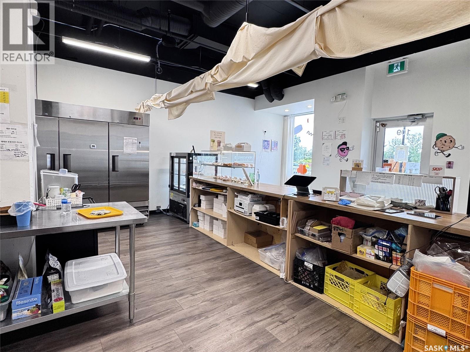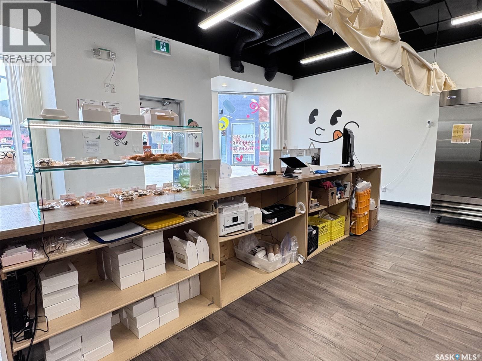 Rare opportunity for first-time business owners! Located in the heart of Willowgrove, this B1B-zoned retail unit in Gateway Plaza offers an affordable way to start your business with lower risk and strong growth potential. The plaza is directly across from Willowgrove and Holy Family Schools, with excellent exposure on Stensrud Rd and Willowgrove Blvd, surrounded by a safe, family-friendly neighbourhood. This fully finished 860 sqft unit includes a bathroom and comes with equipment—ideal for a dessert or takeout café. Currently operating as 82 Bakeshop, the owner is relocating, so vacant possession is available. The space is beautifully maintained with clean, modern interior finishes, requiring minimal work to get started. Whether you're opening a café, bakery, clothing boutique, or another retail concept, this unit is move-in ready. While currently set up for takeout, it can accommodate indoor tables as well. Foot traffic is strong to the current dessert shop and also to anchor tenants and new developments next door, bringing more visibility and future customers. Ample parking and a welcoming community make this a great business location. Don’t miss this turnkey space in one of Saskatoon’s top neighbourhoods. (id:44393)