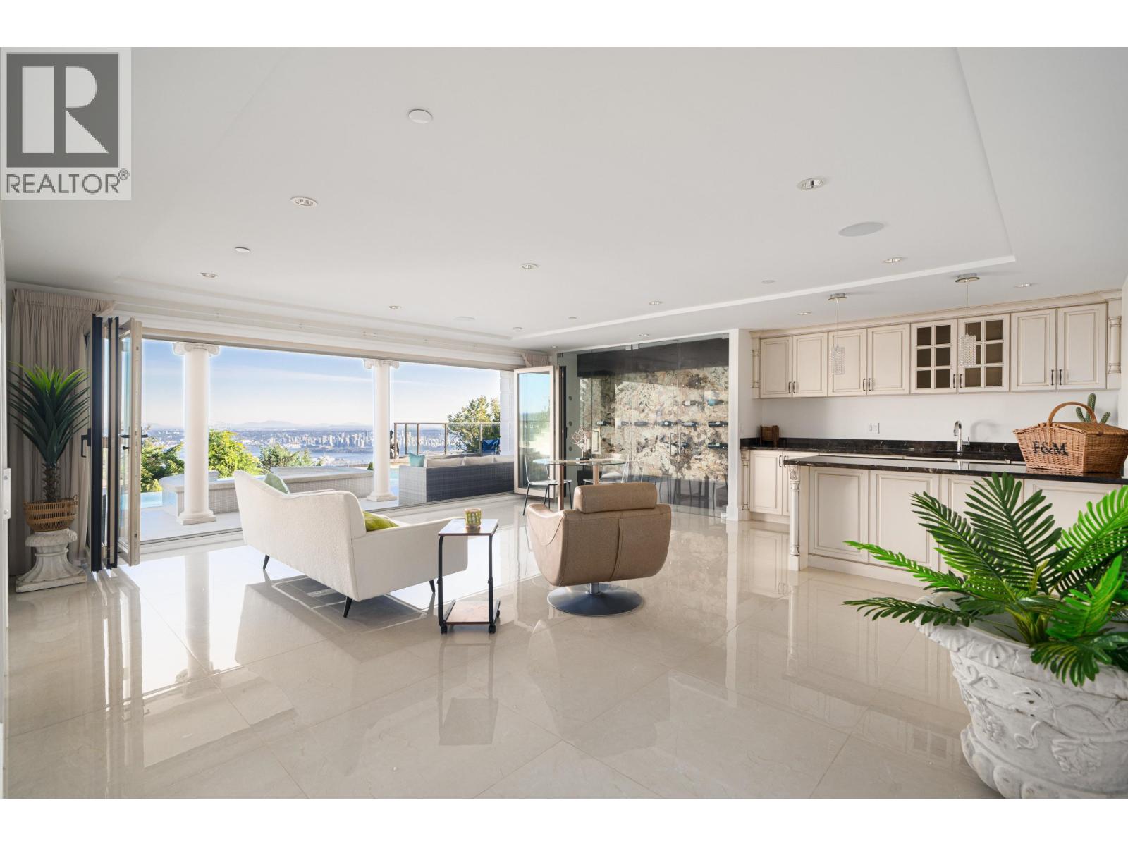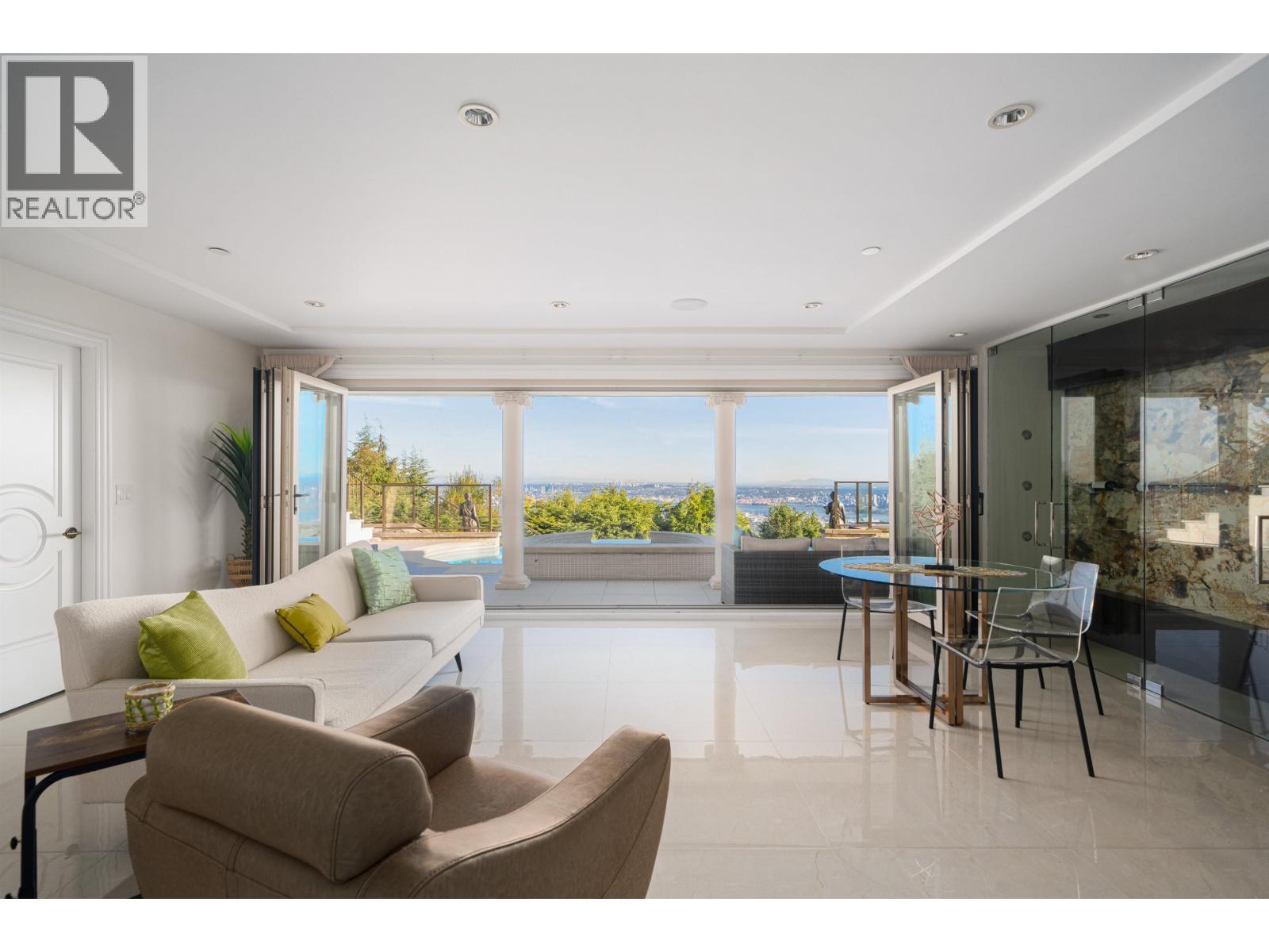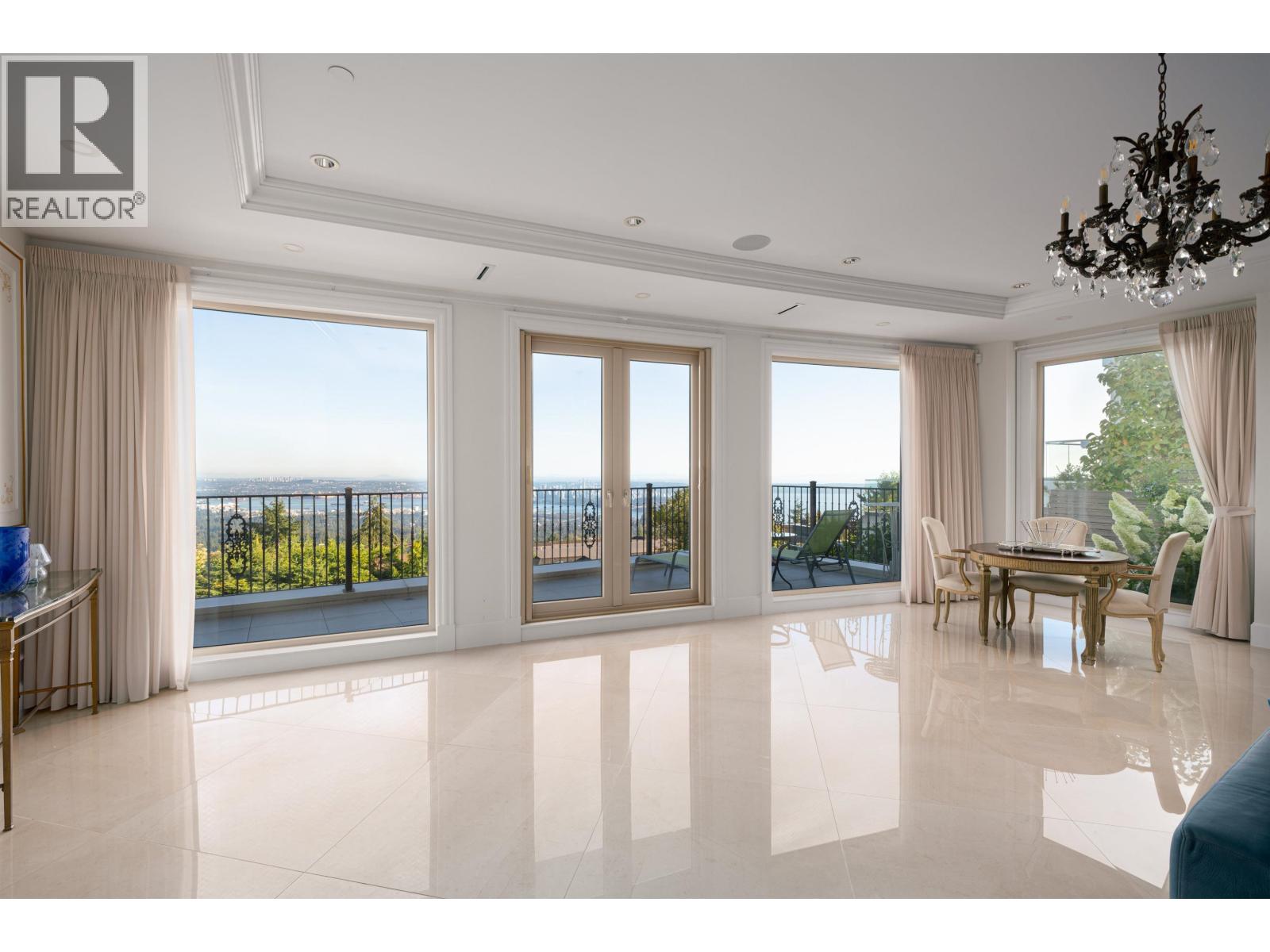 Stunning Views This exceptional home offers 280-degree panoramic views of Lions Gate Bridge, Downtown, and Stanley Park. Situated on a 15,697 sq. ft. lot, it features a steel structure and a private backyard ideal for golf and BBQs.Inside, find elegant living spaces, a gourmet kitchen, designer chandeliers, and 4 en-suite bedrooms. The lower level features a recreation room, media room, guest bedroom, and an extra laundry room. Amenities include a smart home system, heated driveway, large outdoor pool, and a state-of-the-art wine cellar. Located near excellent elementary and secondary schools, with Collingwood and Mulgrave private schools close by. Just a 10-minute drive to Park Royal Shopping Mall. (id:44393)