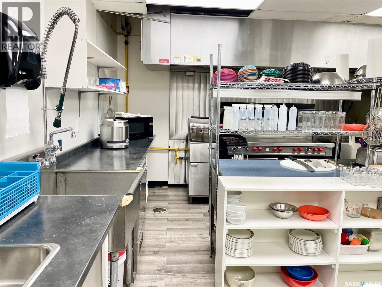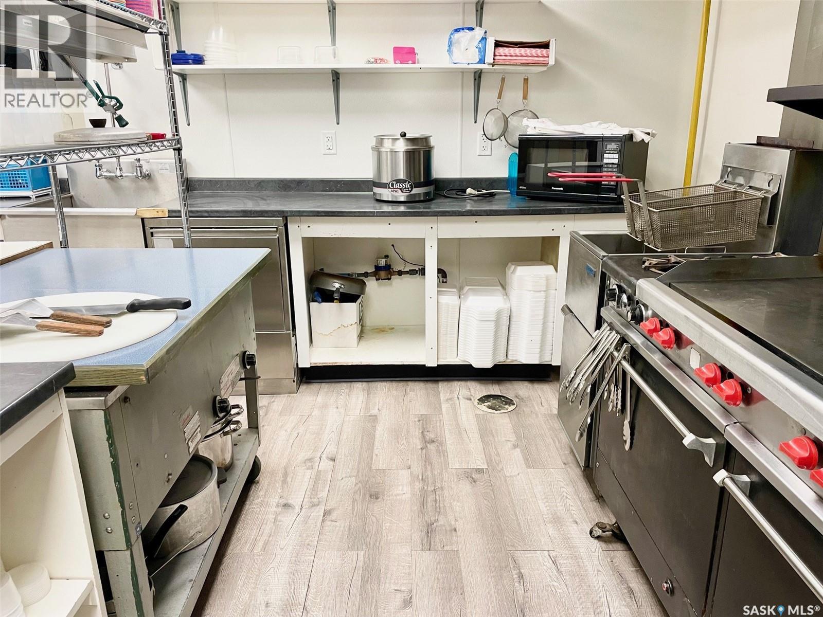 Here is a great affordable turn-key restaurant opportunity along the busy Highway 16. Many upgrades were done in the restaurant space including flooring, new professional commercial kitchen equipment and many plumbing upgrades. The restaurant is very clean and organized, leaving everything required to get a business started. The dining room an be left as is, or upgraded to a more private or intimate setting. The previous business had many truck divers stop for a home cooked meal! The large parking lot allows for trucks and semis to park. The back half of the building is undeveloped shop space that is currently storage and measures 30x40. This allows for a shop style or storage business. The restaurant side could be converted back to extend the shop space as well. There is a detached 400 square feet building that was used as a ice cream shop. Call your REALTOR® for a personal tour of the property to see the income potential! (id:44393)