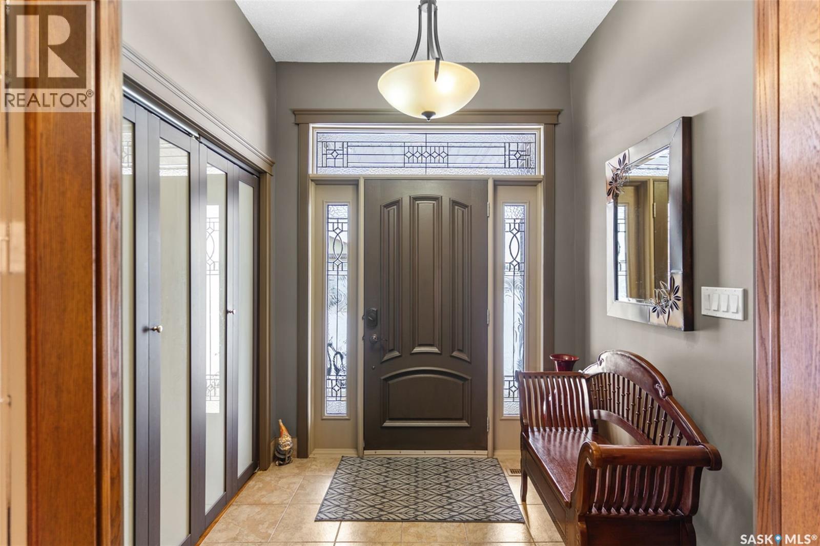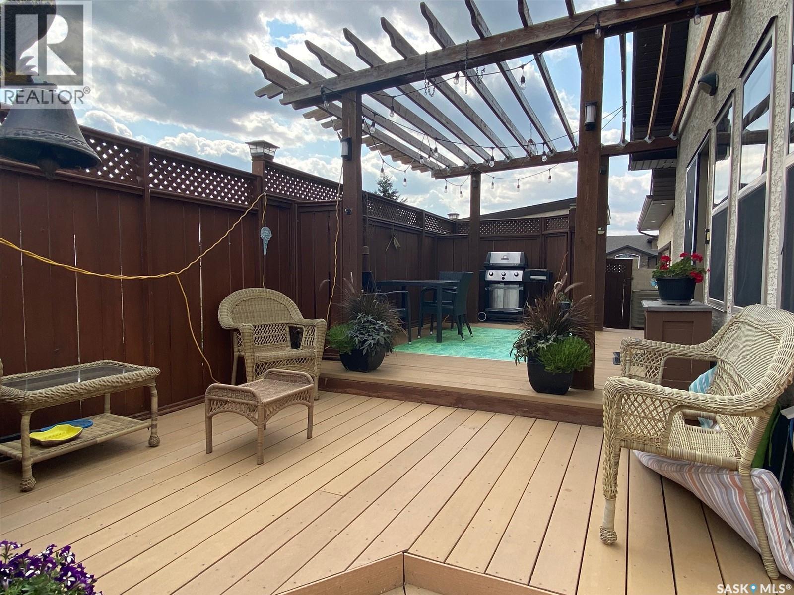 Step into this sophisticated luxury home where exceptional craftsmanship and high-end finishes create an atmosphere of refined elegance. This impressive 4-bedroom, 4-bathroom residence welcomes you with a grand foyer and stylish French doors that open into the main living area. At the heart of the home is a stunning living space featuring soaring vaulted ceilings and a striking double-sided fireplace, offering both warmth and architectural impact. The open-concept design flows seamlessly into a chef-inspired kitchen outfitted with top-of-the-line Jenn-Air appliances, rich maple cabinetry, a large central island, and luxurious granite countertops with a matching granite sink. The bright and inviting dining area easily accommodates a full-sized table and is enhanced by thoughtfully placed skylights that flood the home with natural light. A gorgeous sunroom, complete with its own fireplace and direct access to the backyard, provides a cozy year-round retreat. The main floor hosts three generously sized bedrooms, including a luxurious primary suite featuring a spacious walk-in closet and a spa-like 5-piece ensuite with a jetted tub, separate shower, and elegant vanity. A second 3-piece bathroom offers added convenience, along with a well-appointed laundry room that includes a 2-piece bath and tiled flooring. Upstairs, a versatile bonus room with hardwood floors and an electric fireplace offers endless possibilities—ideal for a relaxing lounge, home office, or games room with picturesque views. The partially finished basement includes a fourth bedroom, a 3-piece bathroom, a utility room, and a large heated crawl space with concrete flooring, providing excellent storage options. Outside, enjoy the beautifully landscaped yard featuring a garden shed, fenced areas for added privacy, and a spacious deck with pergola. Additional highlights include a heated double attached garage with direct entry, ample parking, and only 20 mins. from BHP Mine and 30 mins. to Humboldt. (id:44393)