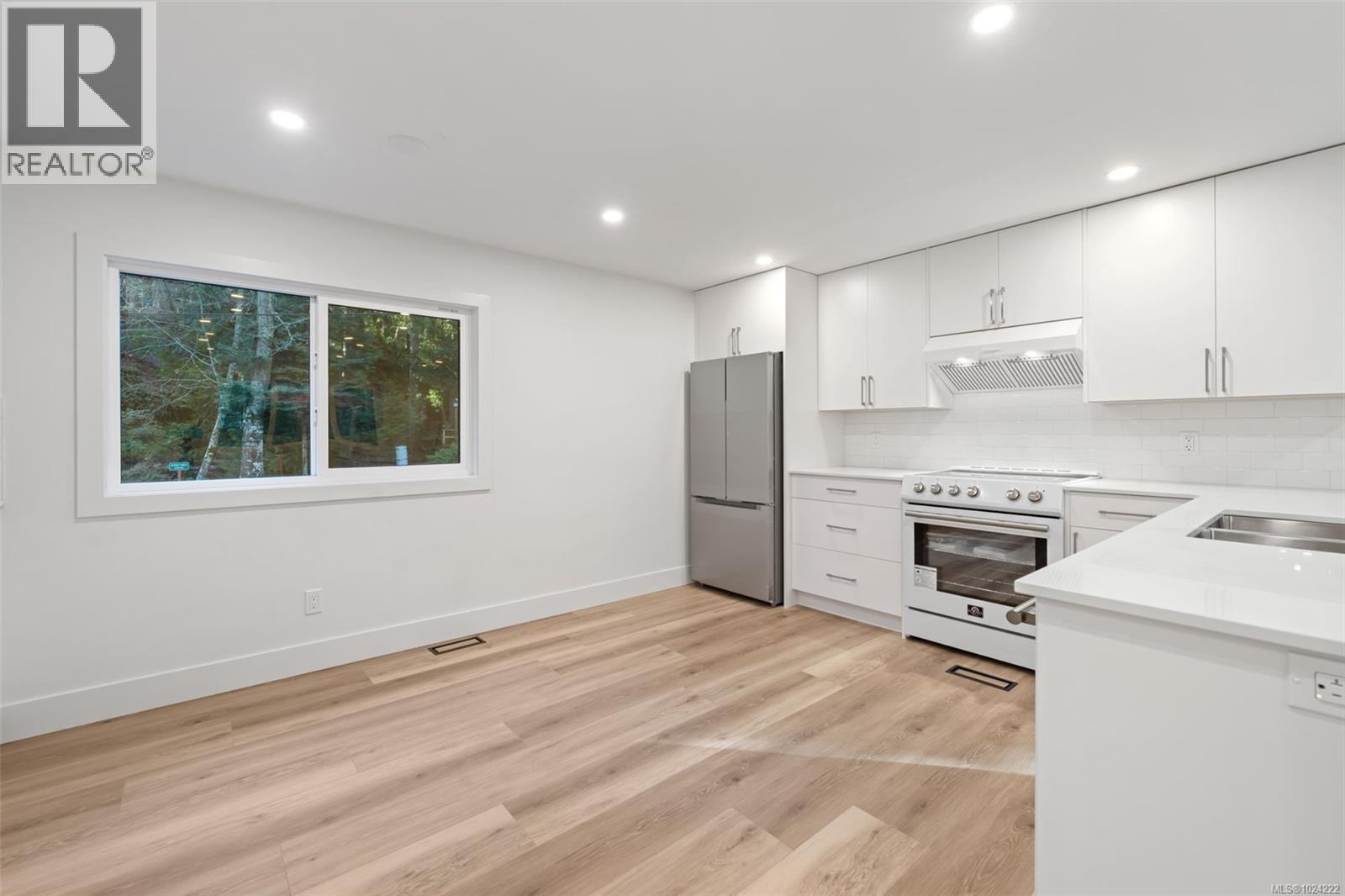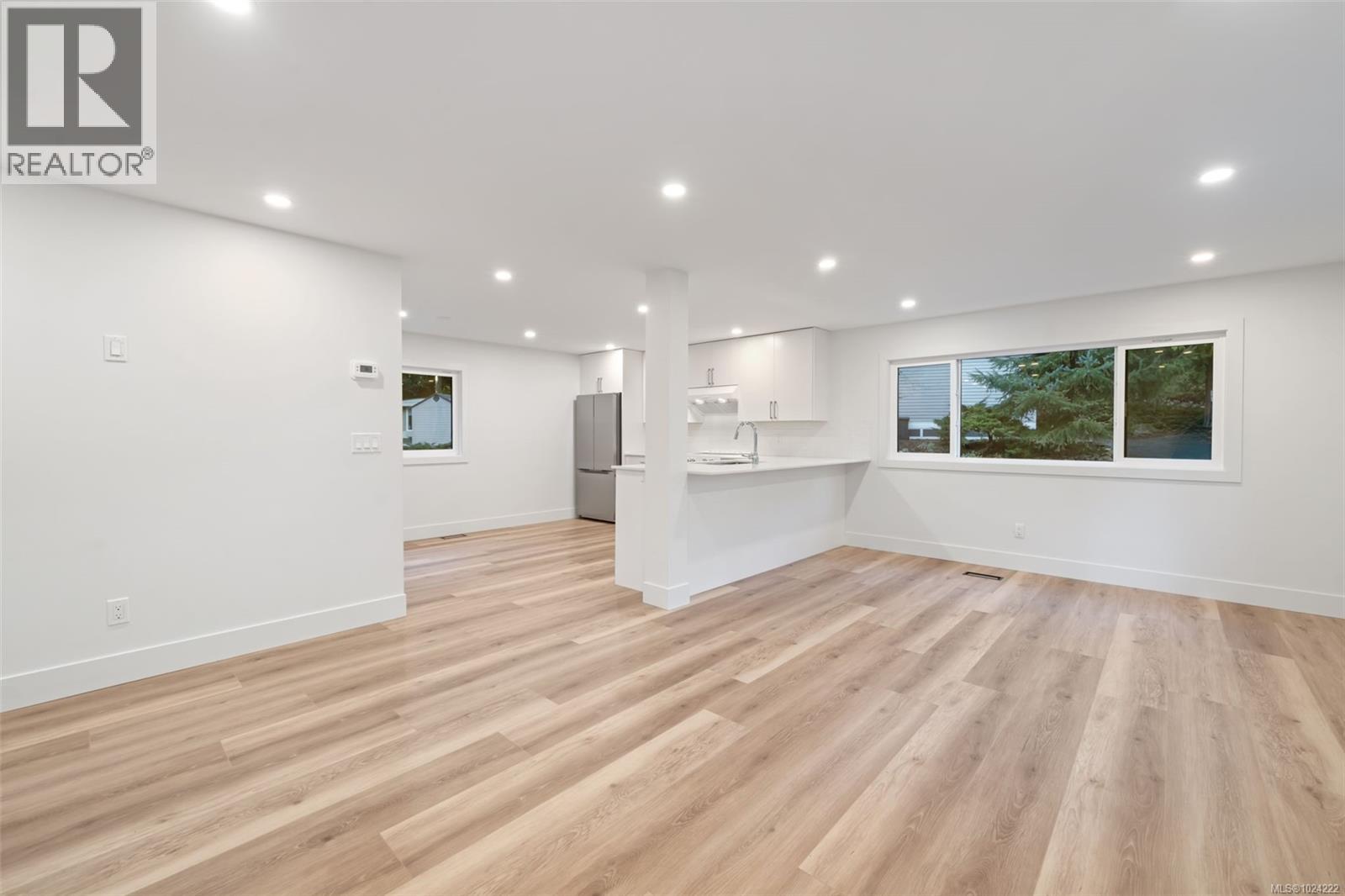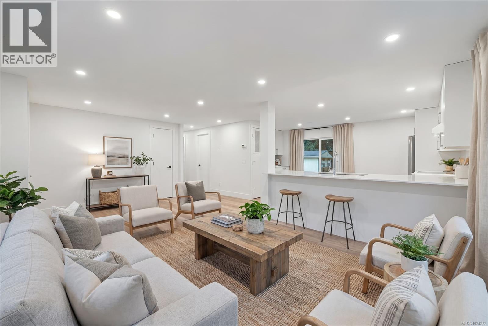 $800 MonthlyThis professionally restored double-wide presents an excellent lifestyle opportunity— Hidden Valley is a quiet, 55+ lakeside manufactured home park offering a nature-filled setting just minutes from Langford amenities. The home offers your own walls, outdoor space, and easy walk-in access from your driveway. Step up into a bright, open-concept 2-bedroom, 1-bathroom layout with modernized flooring, paint, drywall, trim, doors, hardware, fixtures, appliances, plumbing and electrical. A brand-new soft-close birch kitchen offers quartz counter seating that opens to the living area. At the back, is the primary bedroom with deck access to the yard and peekaboo lake views. The home has been professionally installed to the park in 2025 onto a concrete slab foundation with engineered pier sets and seismic strapping. Extensive exterior upgrades include Hardie plank siding, sealed metal backed skirting, new roof and all new windows and exterior doors (ask for details). The low-maintenance pad offers hardscaped rock walls, and a brick patio, backing onto an open green space ideal for dogs. Surrounded by forest, walking paths, and a nearby lake, the park also has a clubhouse with regular coffee or crafting meetups and a space to host your own social gatherings. If you’re ready to downsize, this is a home you’ll want to see in person. Call today to learn more about this professional restoration by Knightway. (id:44393)