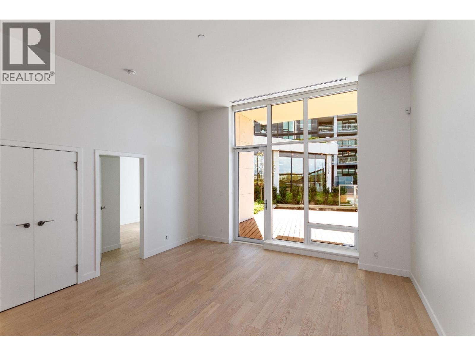 $937.34 MonthlyLuxurious and rarely available ground floor unit with 2 bedrooms + den and 2 full bathrooms, soaring 11 ft. ceilings. Enjoy the spaciousness and abundance of natural light, accentuated by floor-to-ceiling windows. The open kitchen features a gas cooktop, modern cabinets and high-end Miele appliances. Step outside to your huge 500 sq.ft. private patio facing the manicured courtyard, perfect for outdoor entertaining. Indulge in resort-style amenities including a swimming pool, sauna, luxury hotel-level gym and so on! Conveniently located steps away from Richmond Oval, T&T supermarket, and an array of shops and restaurants, this modern oasis offers a lifestyle of luxury and convenience. (id:44393)