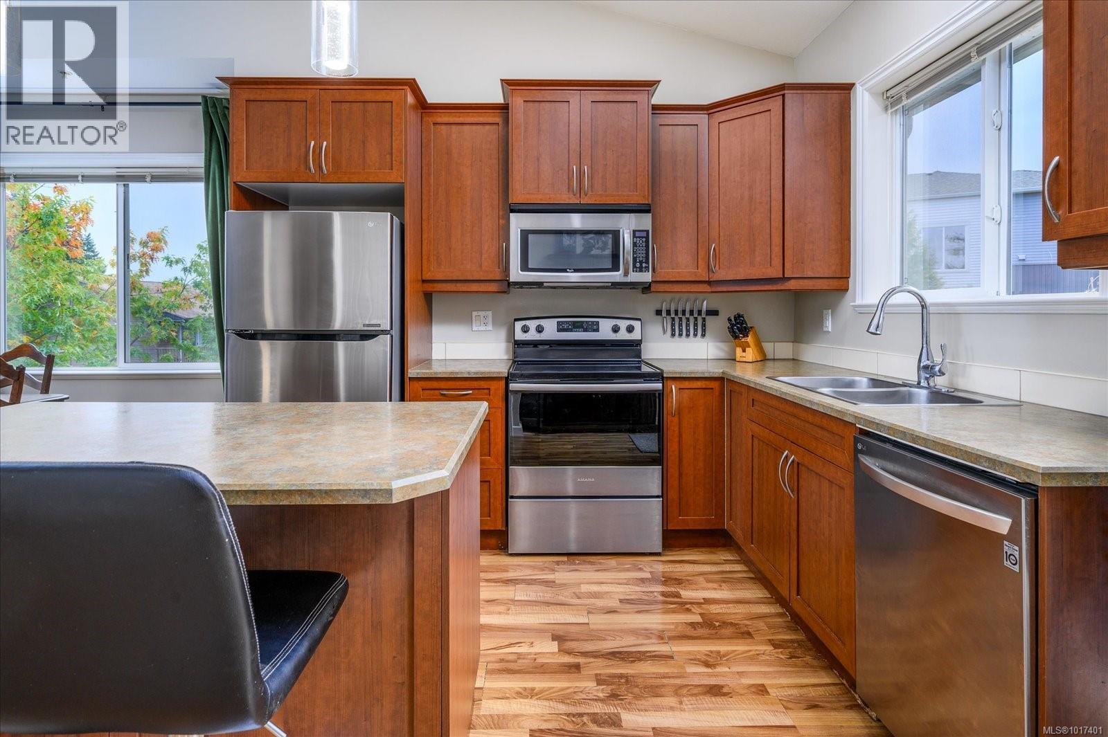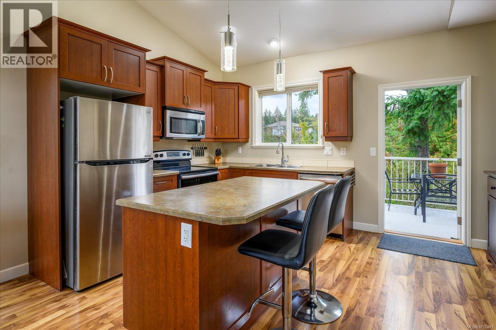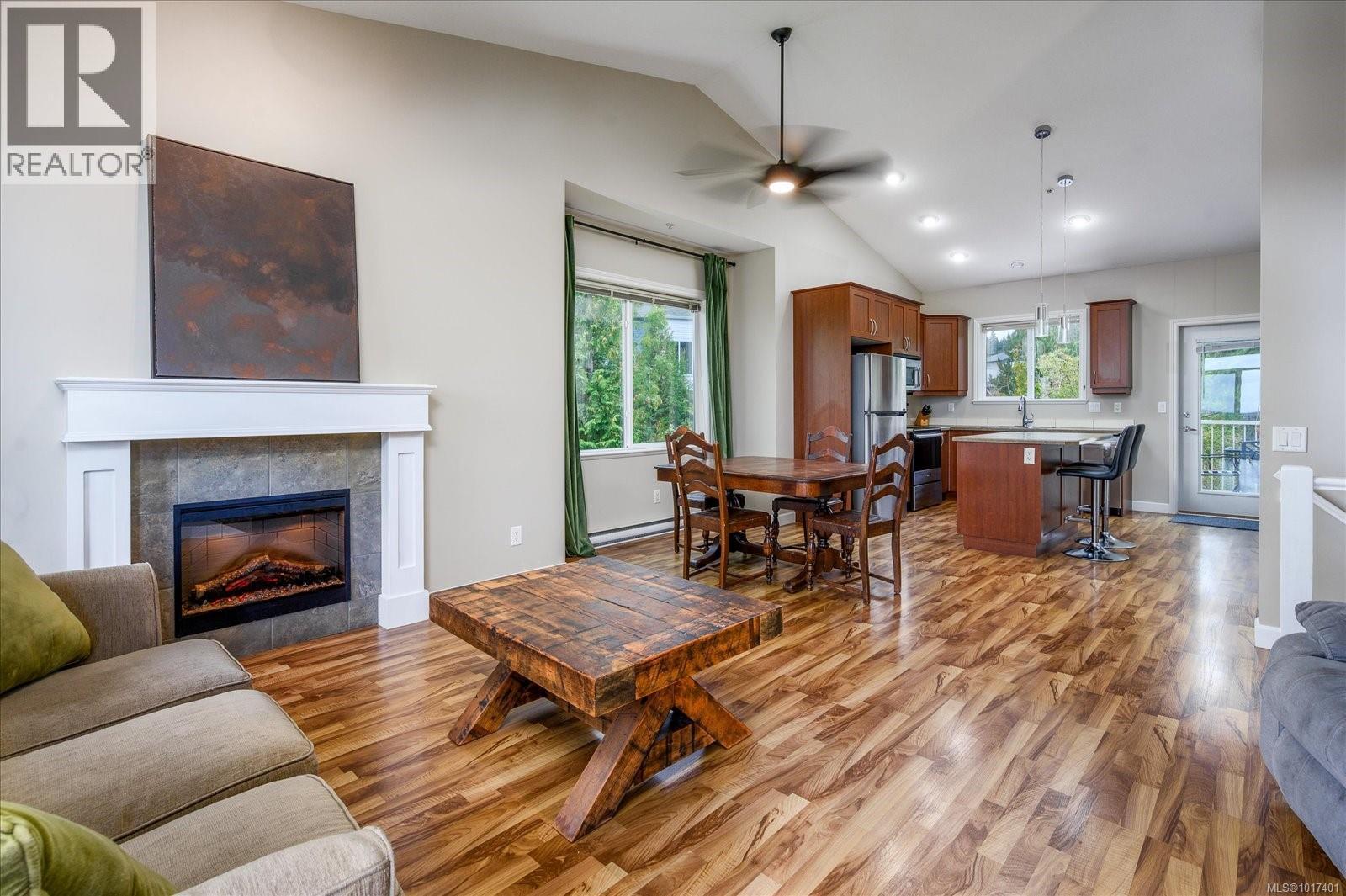 $530 Monthly***Open House Saturday October 18th 11-1*** Welcome to University Heights! This spacious 4 bed, 3 bath end-unit townhouse offers the perfect blend of comfort, function, and convenience. The upper level features an open-concept living area with vaulted ceilings, an electric fireplace, and access to both front and rear decks, ideal for soaking in the views or summer BBQs. The kitchen offers plenty of cabinetry, a large pantry, island, and stainless-steel appliances. The primary bedroom includes a walk-in closet and full ensuite, with a second bedroom and main bath completing the level. Downstairs you’ll find two additional bedrooms, a full bathroom, laundry, and a versatile family or office space. The extra-deep garage provides ample storage for vehicles and gear. Close to VIU, schools, and all south-end amenities, this move-in-ready home is perfect for families or anyone seeking low-maintenance living in a great location. (id:44393)