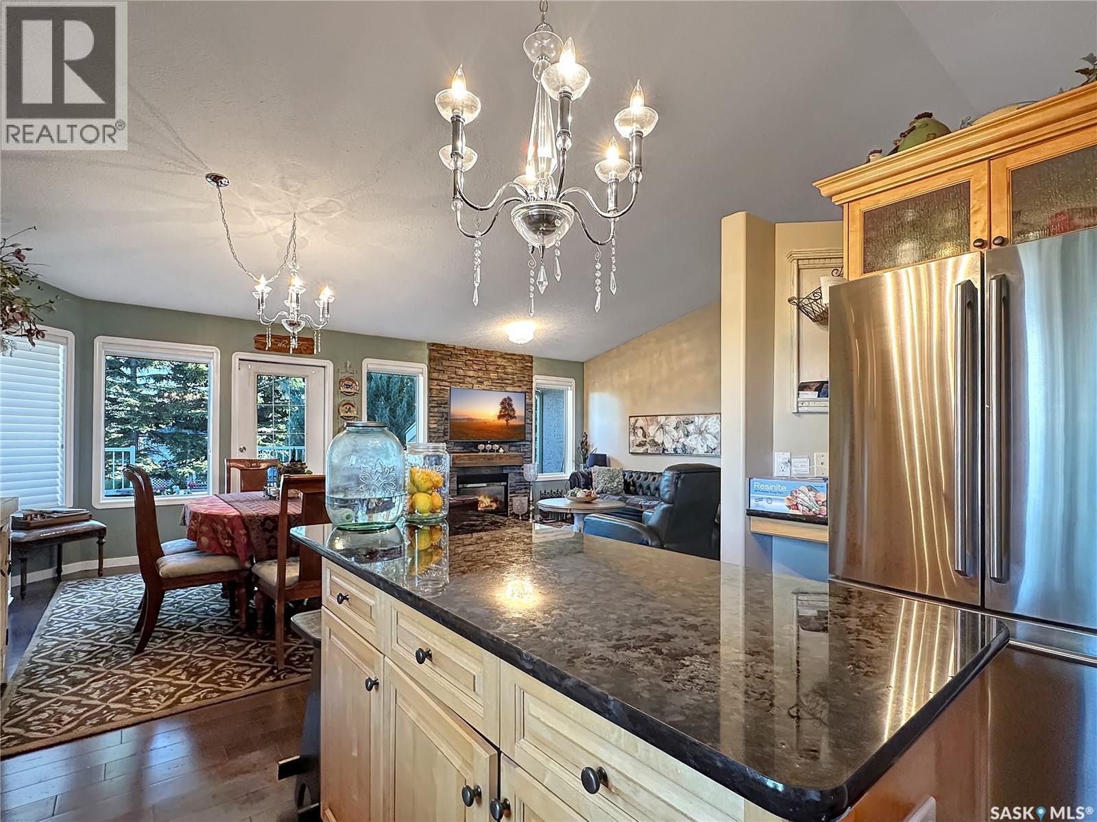 Welcome to this beautifully maintained family home in the friendly community of Balcarres! Offering over 1,800 sq. ft. of main floor living space plus a fully finished basement, this spacious home features 5 bedrooms and 3 full bathrooms—perfect for a growing family or those who love to entertain. The main floor boasts vaulted ceilings and an open-concept layout, creating a bright and inviting atmosphere. The kitchen is a standout with granite countertops and stainless steel appliances, including a fridge, stove, and dishwasher. You’ll also find a comfortable living room, dining area, laundry room, den, and more—all designed with functionality and flow in mind. Downstairs, enjoy a large family room and ample storage space, making it ideal for movie nights or a home gym. The home also includes two gas fireplaces, central air conditioning, and central vac for added comfort and convenience. Step outside to a fully insulated double attached garage with an automatic opener. The backyard is a private retreat, featuring a two-tiered deck, sheltered patio, mature trees, garden area, storage shed, and PVC fencing for low-maintenance living. Located just minutes from the scenic Qu’Appelle Valley and nearby lakes, and only an hour’s drive to Regina, this home combines small-town charm with easy access to city amenities. Balcarres offers a K–12 school, medical clinic, grocery store, pharmacy, restaurant, lumber yard, and more—everything you need, right in town. Call your favorite local agents to view. (id:44393)