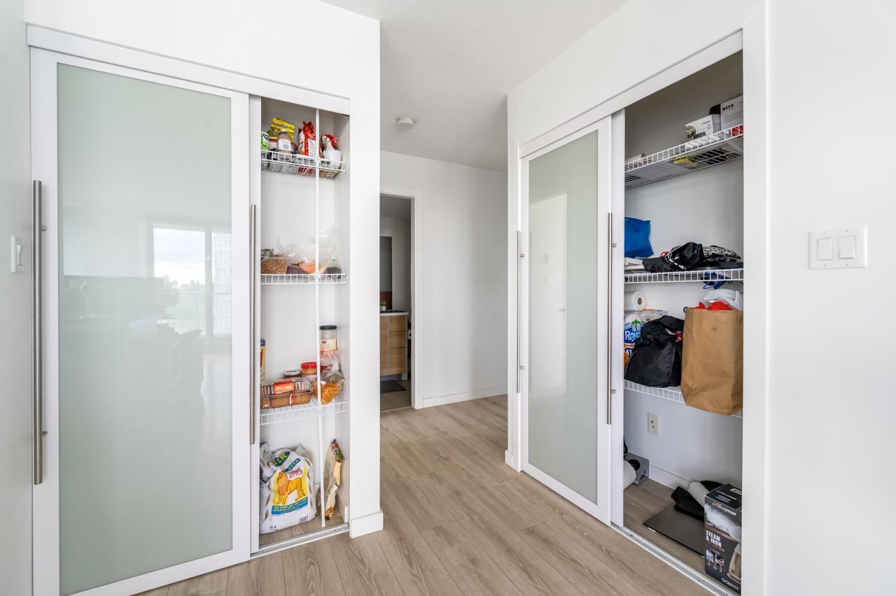 One Park Place by Concord , Corner unit with panoramic Northwest Mountain & beautiful city view, huge windows that allow an abundance of light. 2 bed & 2 bath with New pantry & New Closet Door, A huge balcony for BBQ. Open concept kitchen, SS appliances, laminate flooring throughout. New washer and dryer . Quality Amenities: 24-hr concierge, gym, theater, lounge, BBQ, yoga, Bowling alley. Steps to SFU, T&T, Holland Park, King George SkyTrain, and the future UBC Surrey campus. Rapid transit to Downtown in 40 minutes. (id:44393)