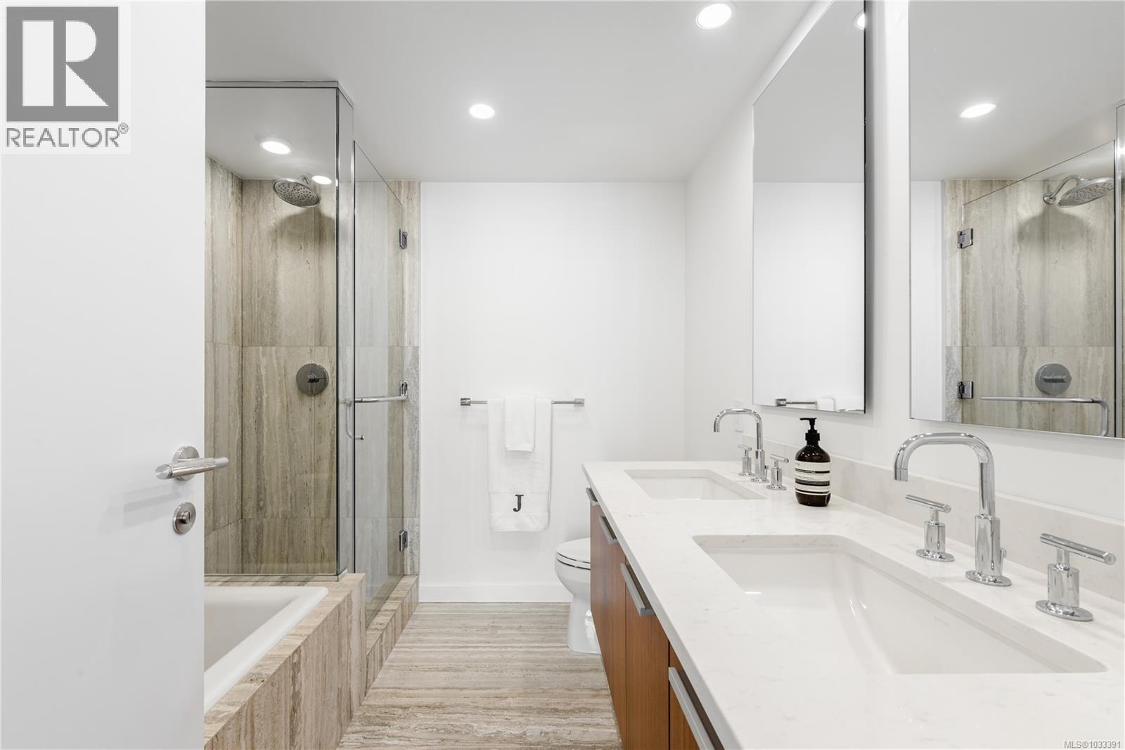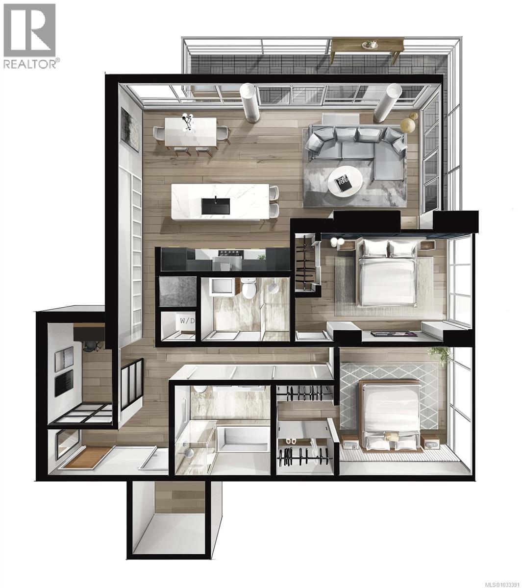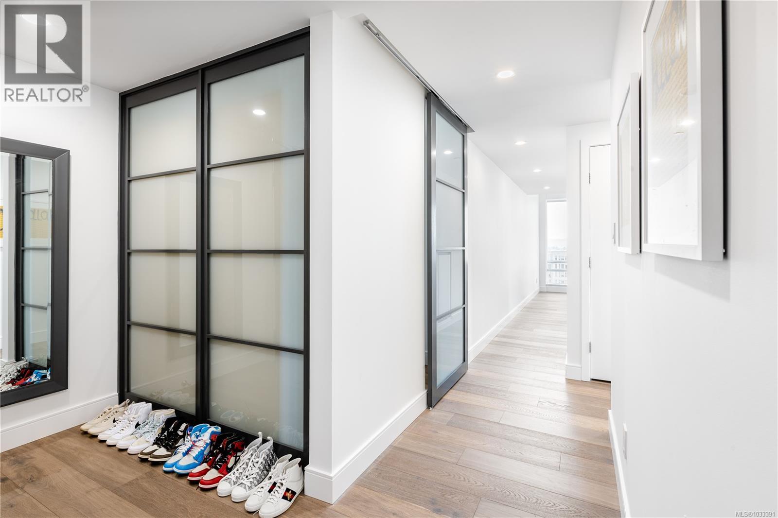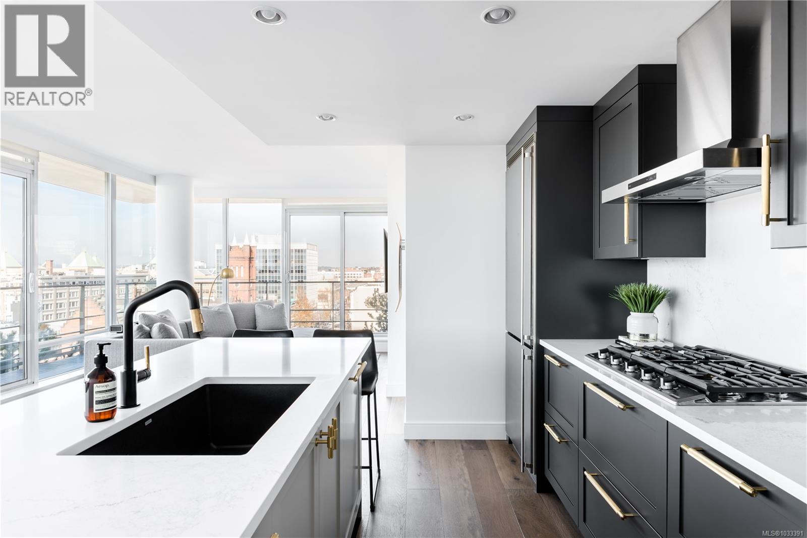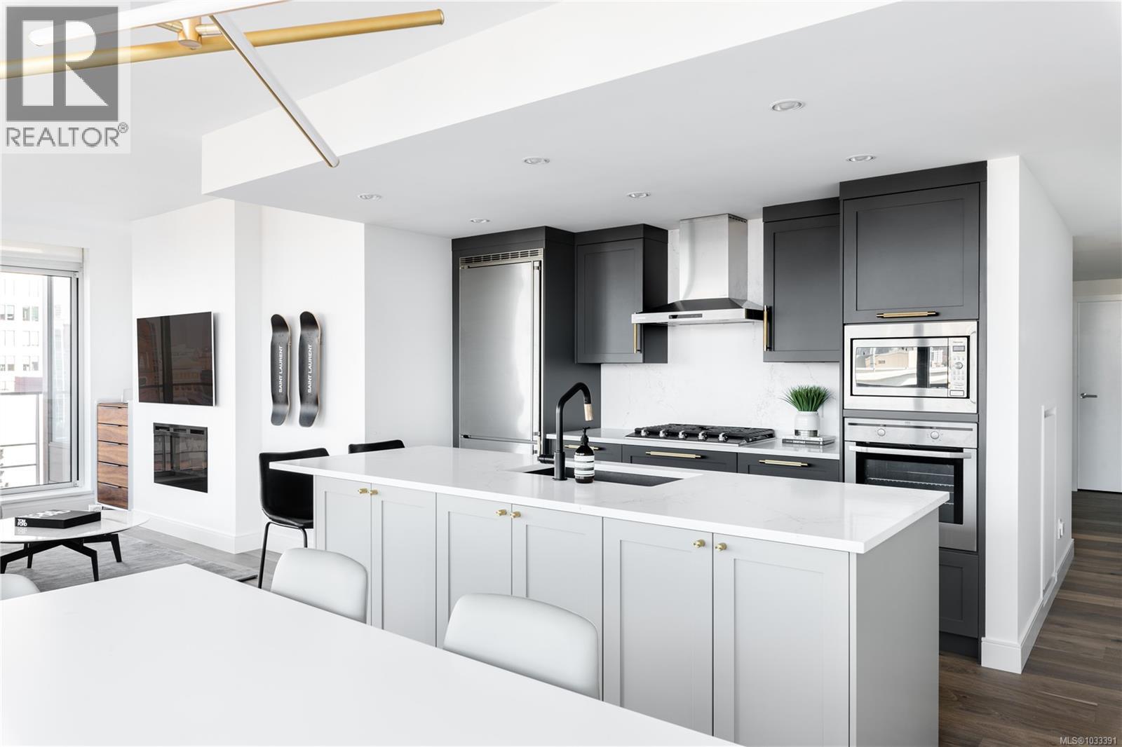 $827 MonthlyThe most refined and design-forward offering currently available at The Falls. This is 1105, a corner, harbour-sunset-facing 2-bedroom + den, 2-bath, in-suite storage room, and nearly 1,200 sqft of magazine-featured interior space. This custom residence stands apart with tailored upgrades and bespoke detailing throughout. Fully reimagined in 2021 with curated materials: real wide-plank walnut hardwood floors, custom Thomas & Birch kitchen millwork, quartz countertops, Buster+Punch hardware, and updated appliances. A modern fireplace anchors the living space, framed by in-set LED wall lighting. Functional updates include new heat pump w/ AC, new full-sized laundry, and two-layer blackout blinds in each bedroom. A true turn-key home w/ high-end furniture included and exclusivity to upscale amenities - pool, hot tub, and gym. Located steps from Victoria’s best dining and cultural landmarks, Unit 1105 is a rare blend of unique & timeless design, function, and lifestyle. AIRBNB INVESTMENT AVAILABLE. (id:44393)