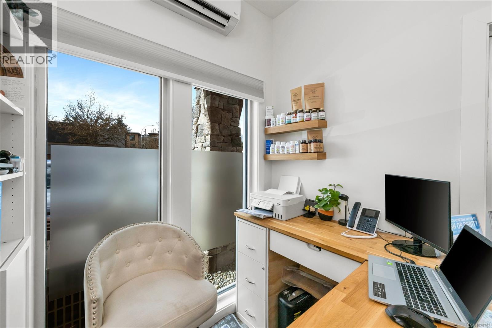 $265 MonthlyOwn the space that works for you in more ways than one. A standout opportunity for entrepreneurs, investors, and professionals seeking the rare advantage of true live/work flexibility in a prime location. Thoughtfully designed with a clear separation between the commercial and residential spaces, this unit gives your business a polished storefront feel without sacrificing the comfort and convenience of home. Ideally located just off Veterans Memorial Parkway, the commercial entrance offers excellent accessibility and exposure in one of Langford’s most connected areas. The residential suite features a full kitchen, built-in Murphy bed, and 4-piece bath, while MU1A zoning allows for a wide range of permitted uses including retail, office, personal services, daycare, schools, and financial services. Separate heat pumps serve both spaces for efficient year-round comfort. Rare, versatile, and exceptionally well located, this property offers both immediate functionality and long-term value. (id:44393)